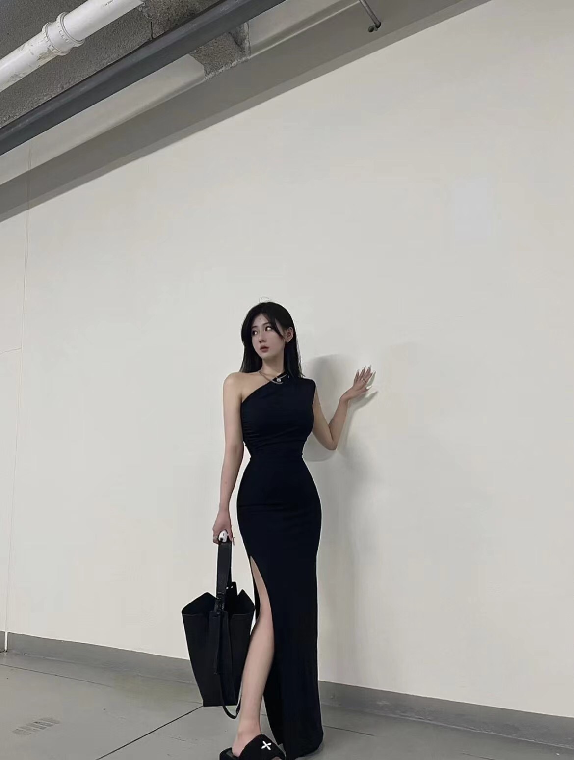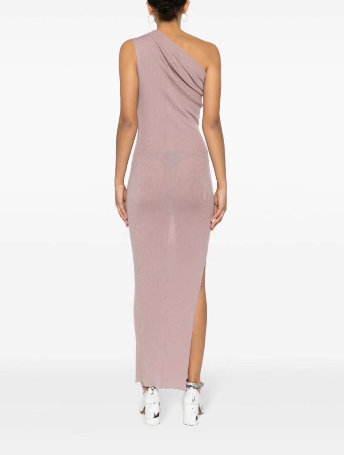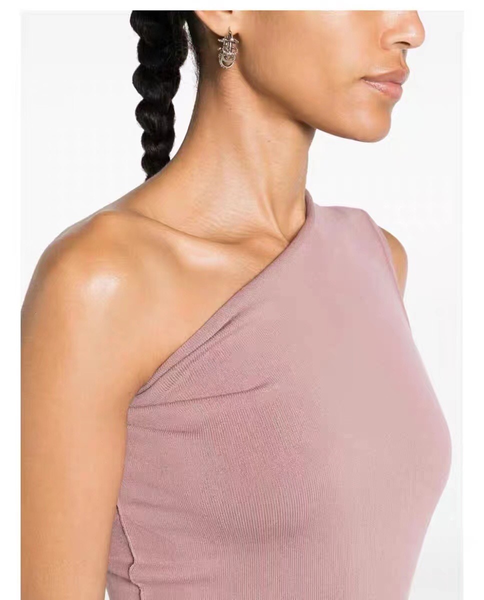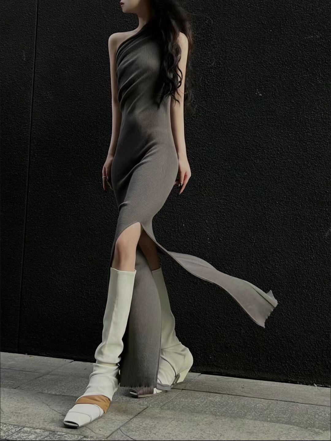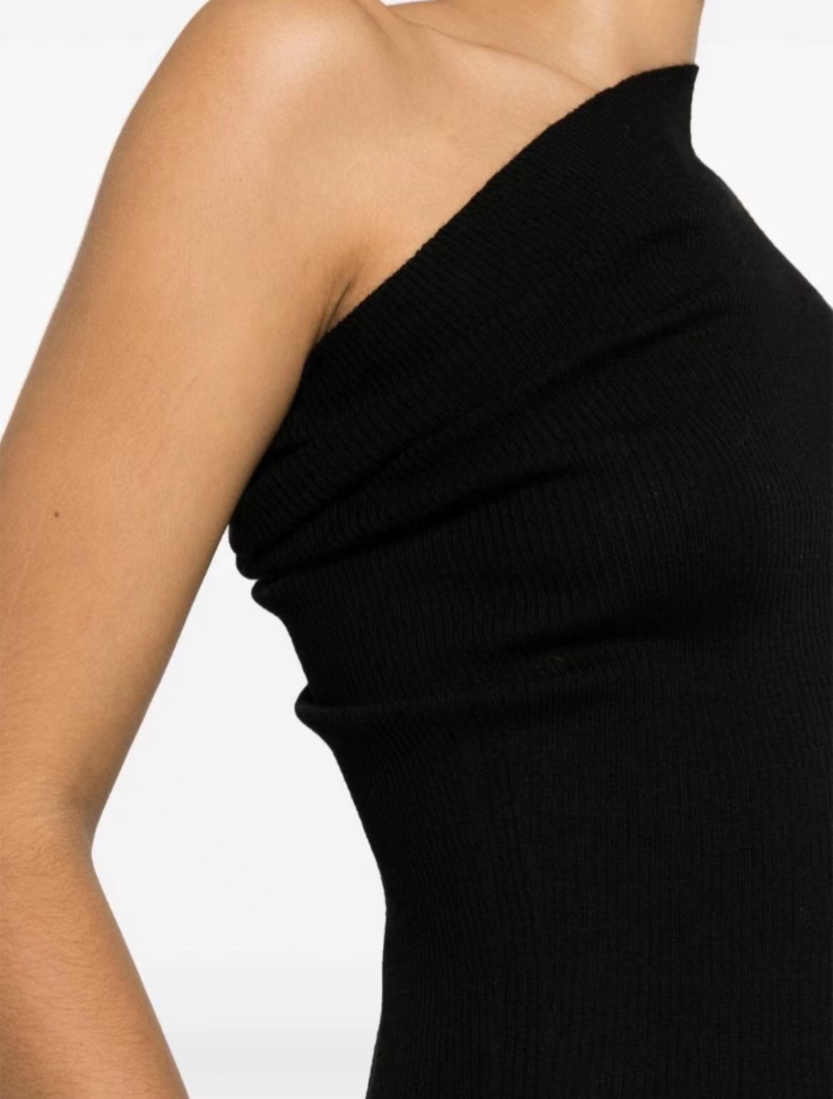 NIGO Rick Owens Women's Summer Slant Shoulder Slim Wool Side Slit Sleeveless Solid Color Dresses #nigo81161