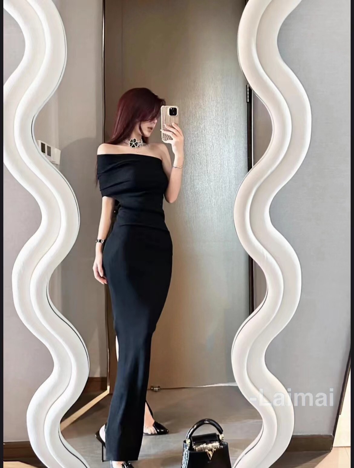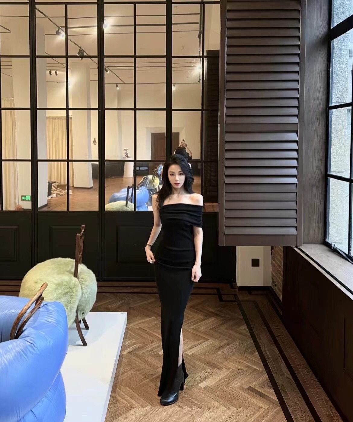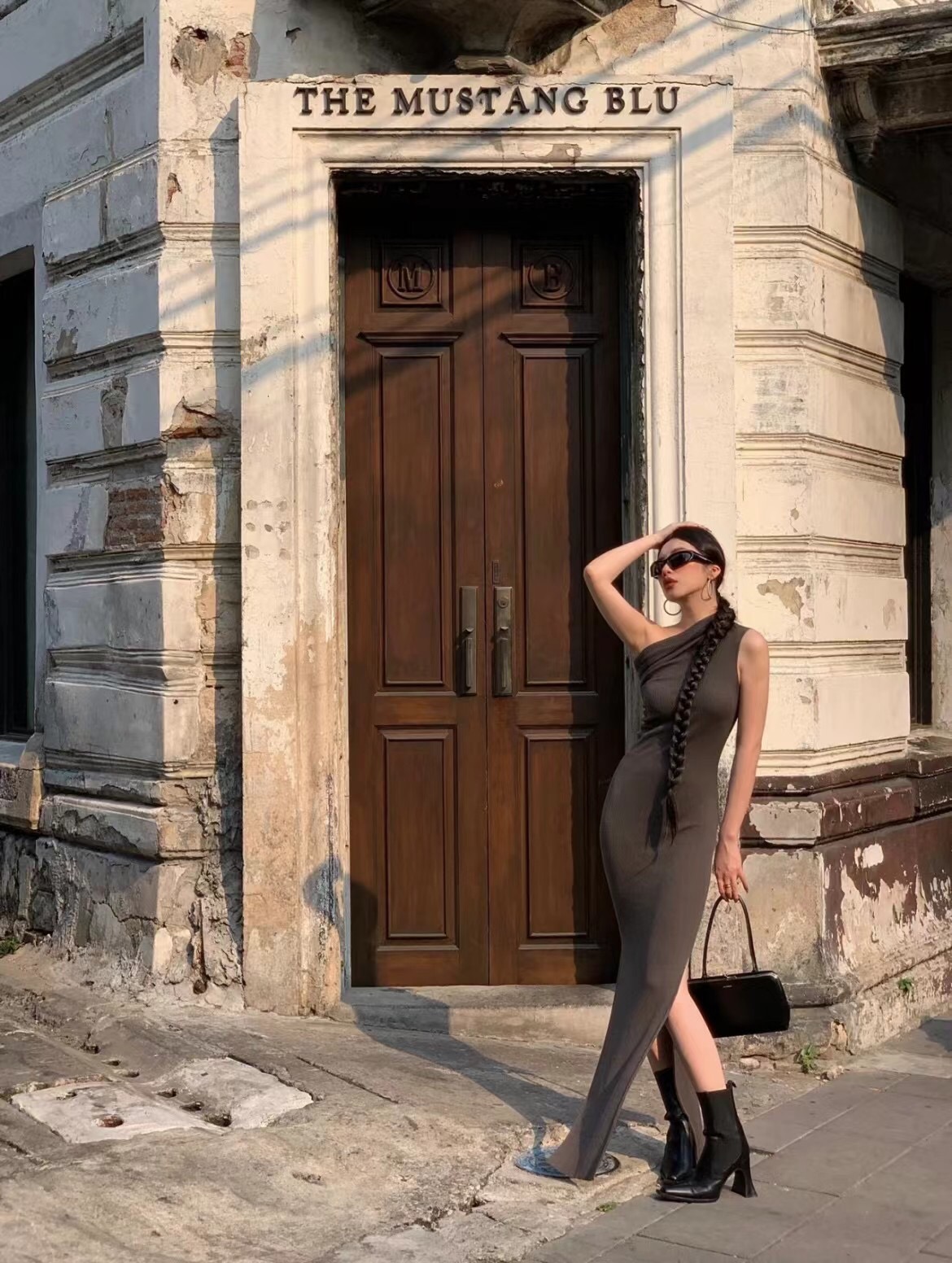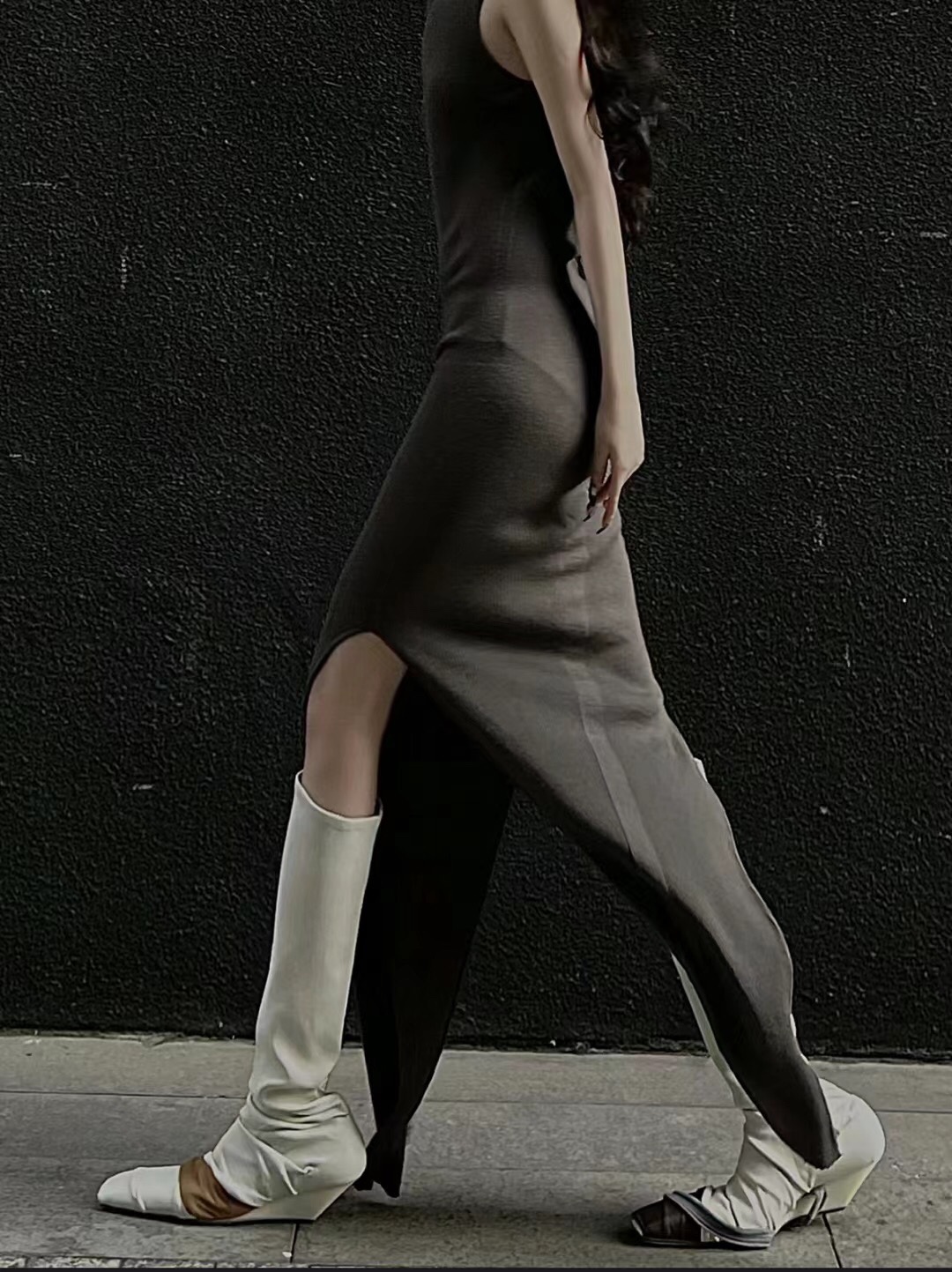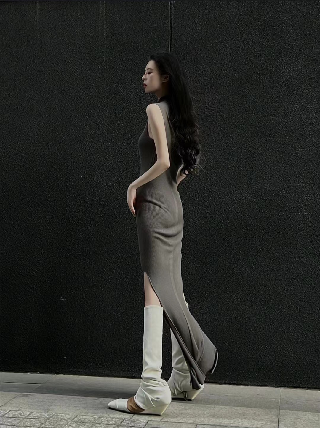 NIGO Rick Owens Women's Summer Slant Shoulder Slim Wool Side Slit Sleeveless Solid Color Dresses #nigo81161