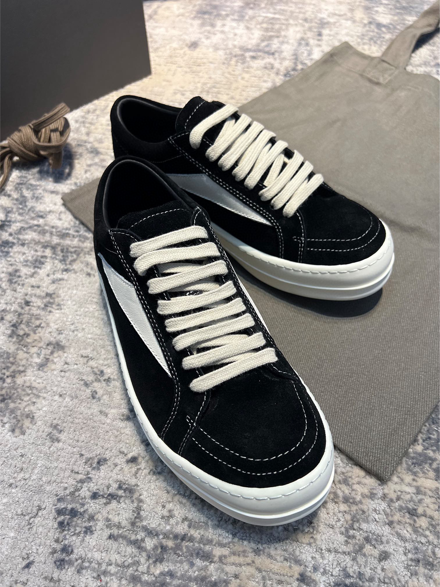 NIGO Rick Owens X Vans Men's and Women's Black and White Patchwork Leather Comfort Low Top Lace-Up Board Shoes #nigo76246