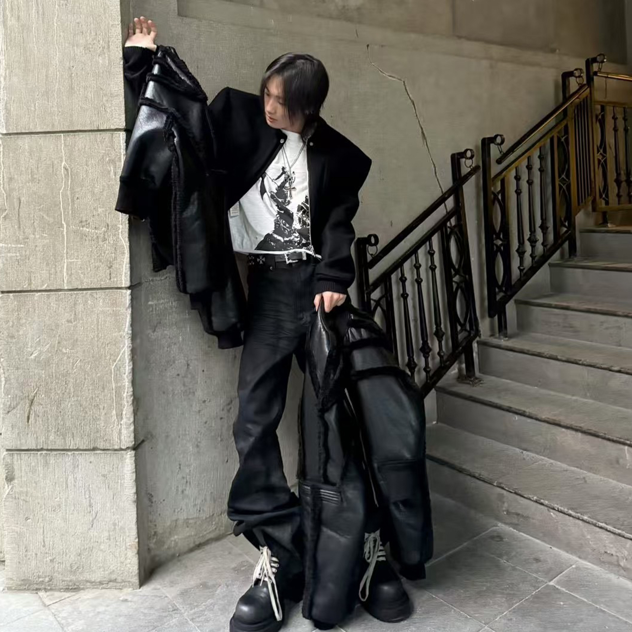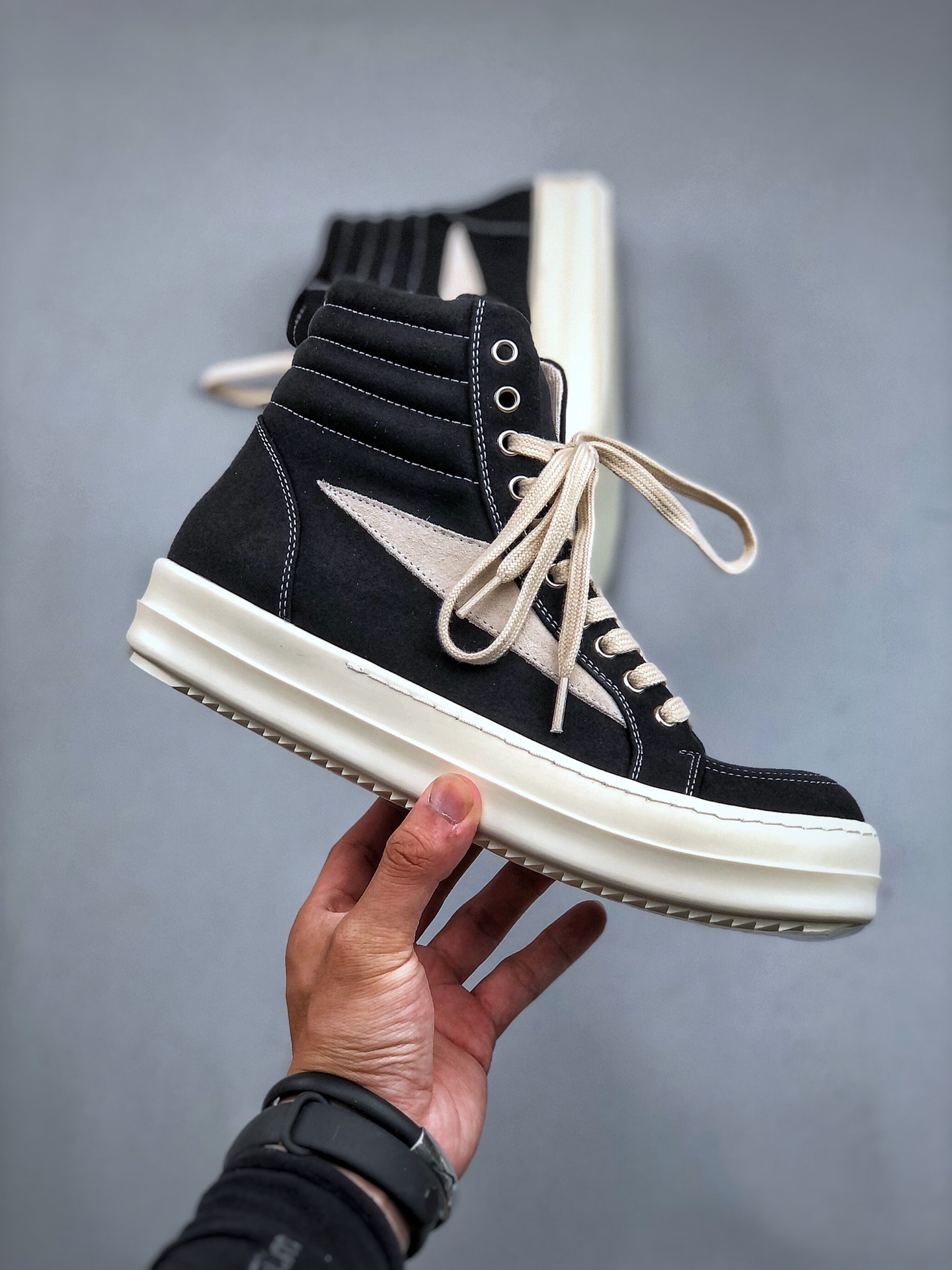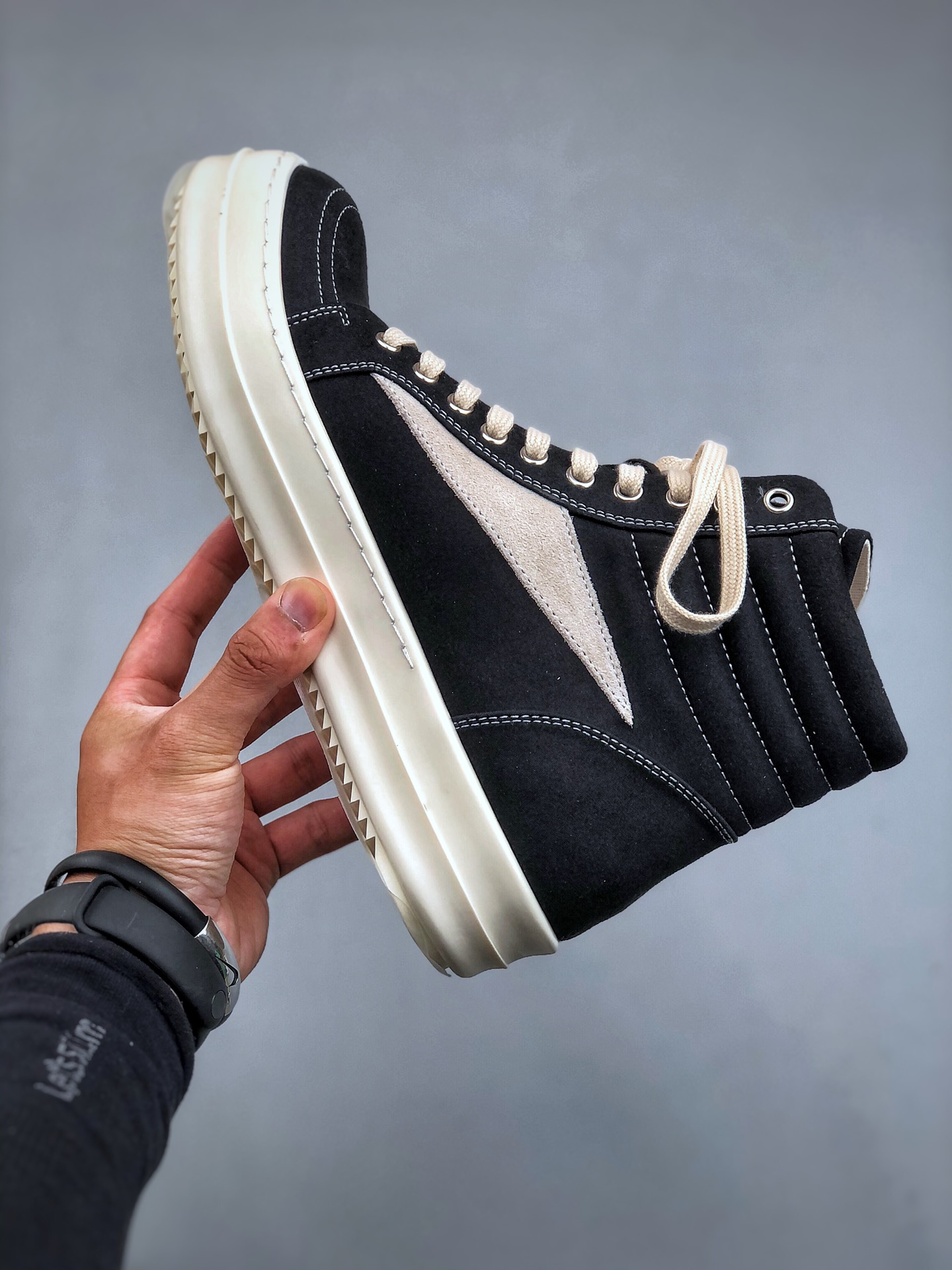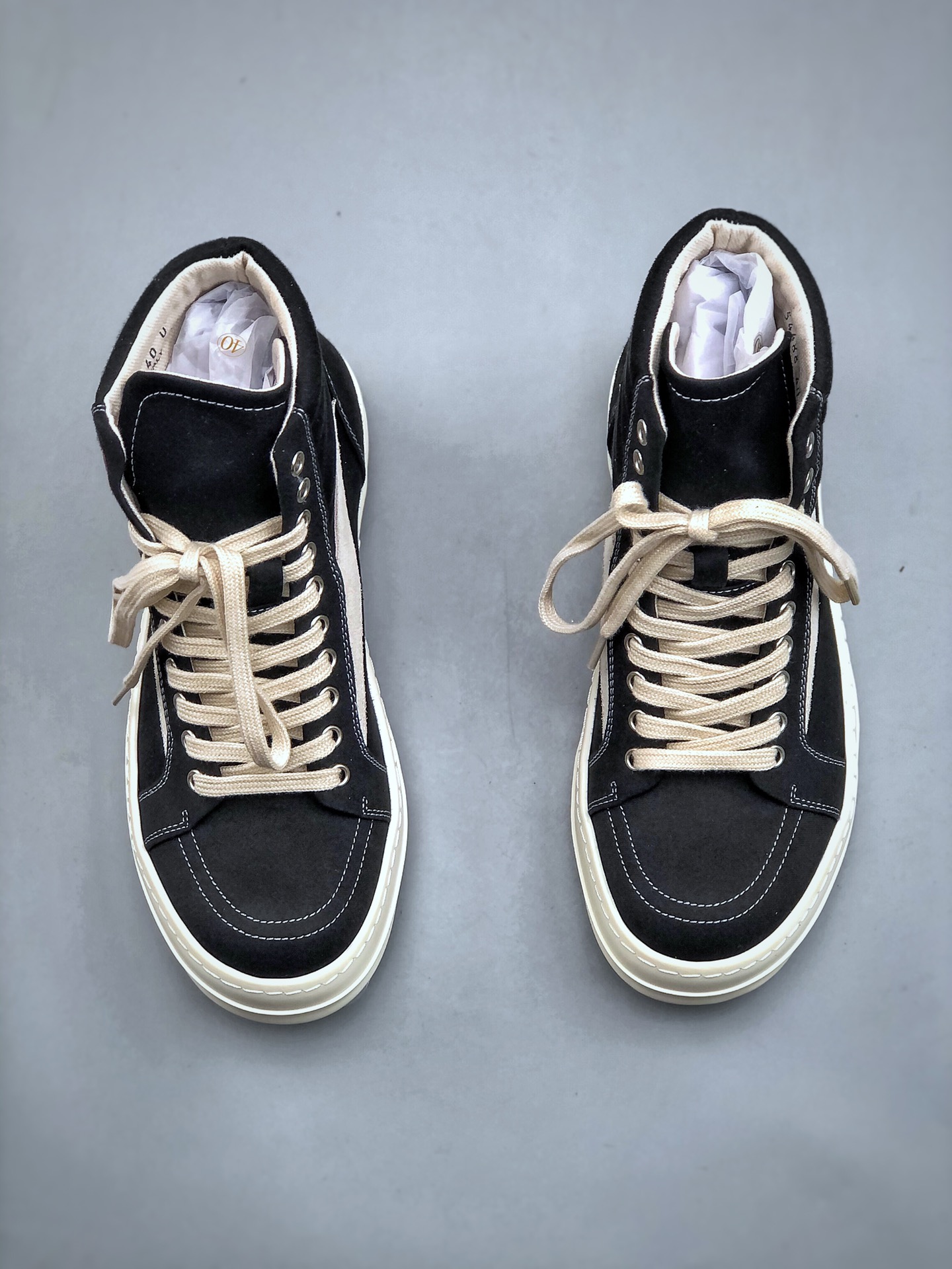 NIGO Rick Owens Men's And Women's Black And White Canvas Fabric Round Toe Lace Up High Top Board Shoes #nigo74762