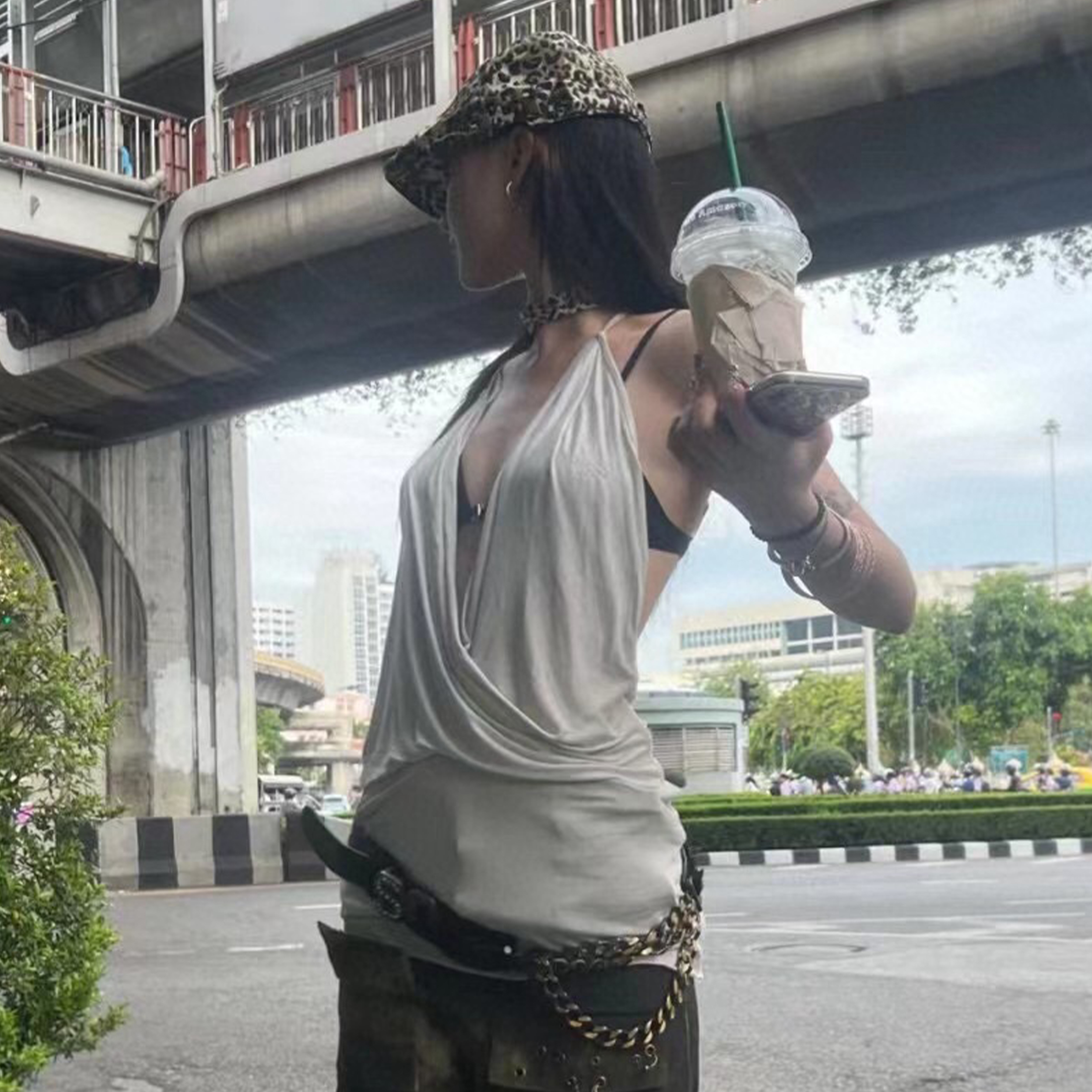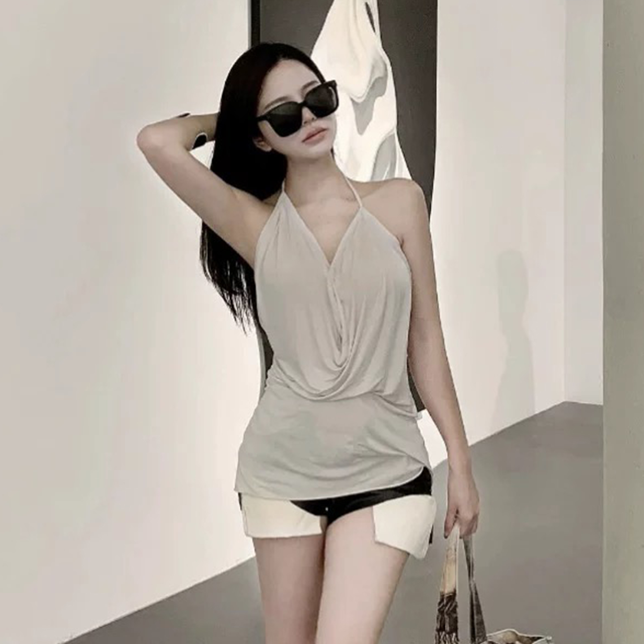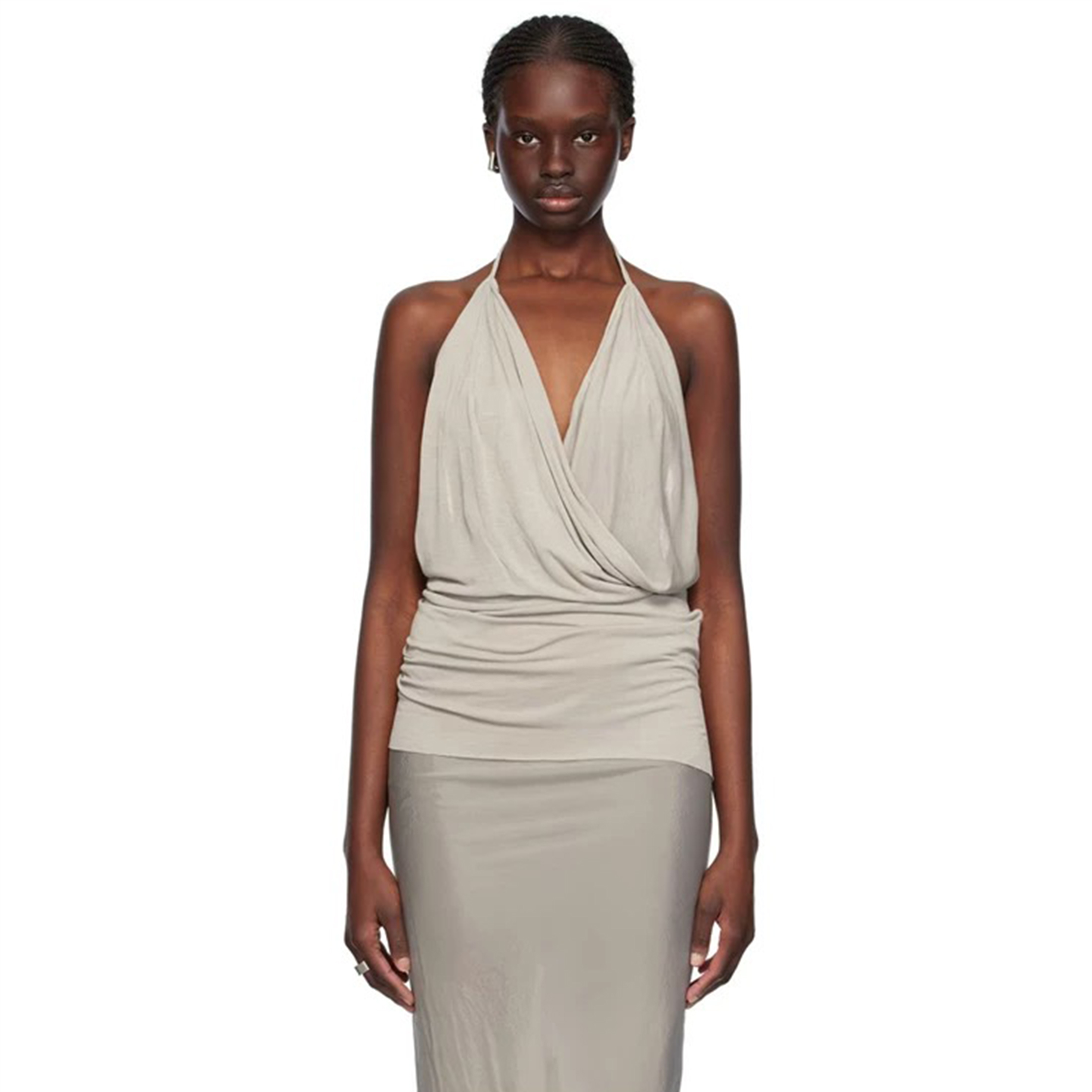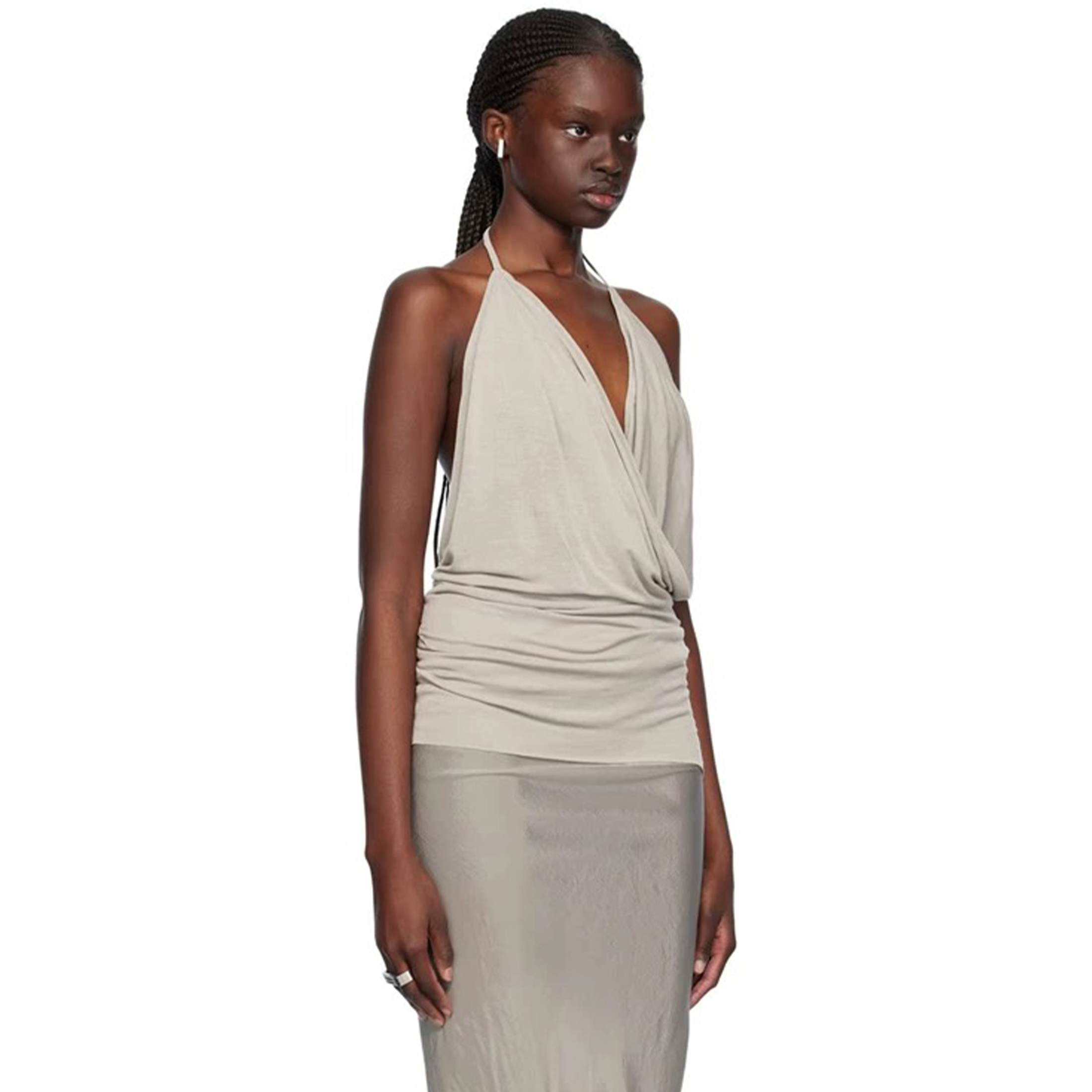 NIGO Rick Owens Women's Summer Lambskin One Shoulder Sleeveless Slim Black Top Shirt Ngvp #nigo9175