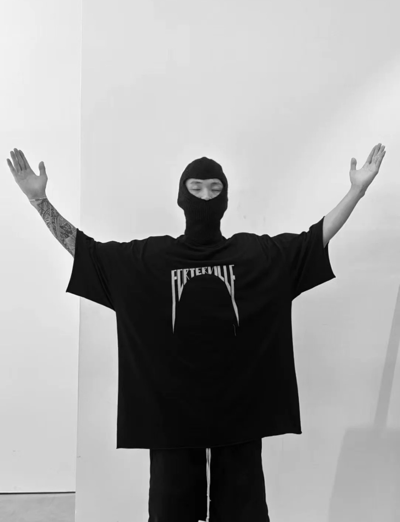 NIGO Rick Owens Men's Summer Embroidered Logo Round Neck Cotton Loose Black Short Sleeve T-Shirt Ngvp #nigo9377