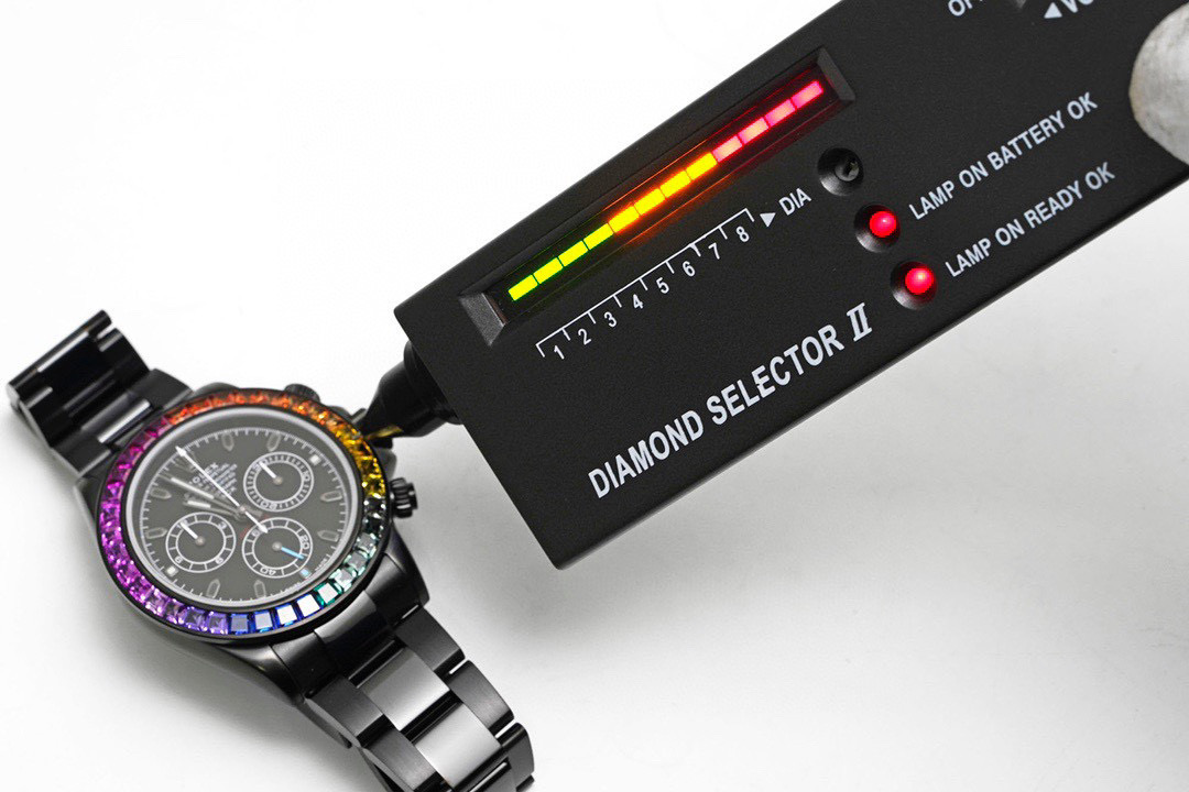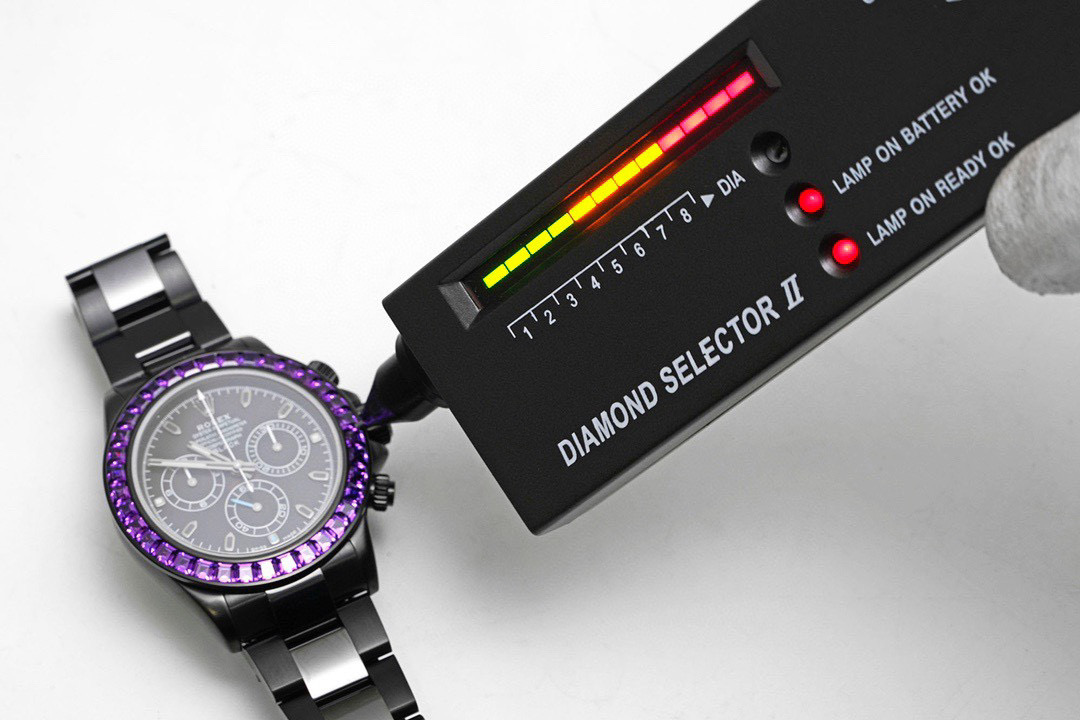 Then we also try for the first time, not only Rolex Ditonne, other styles of Rolex can be modified, the whole body DLC black plating, circle mouth also dare to say that the current market under the most heavy cost of haute couture synthetic stones with the measurement of the real diamond pen test directly over the standard!