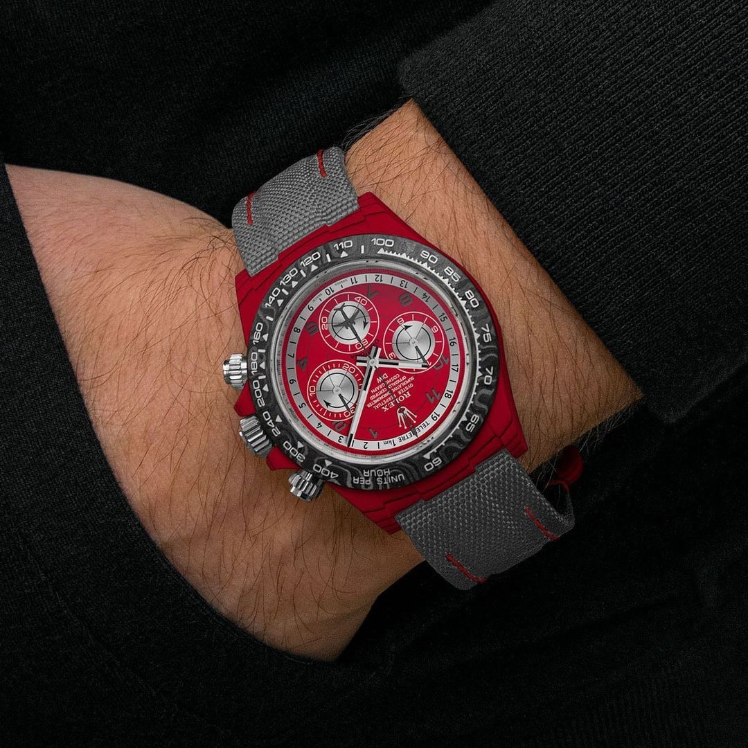 NIGO Rolex Men's Red and Black Modified Carbon Fiber Daytona Mechanical Watch #nigo98777