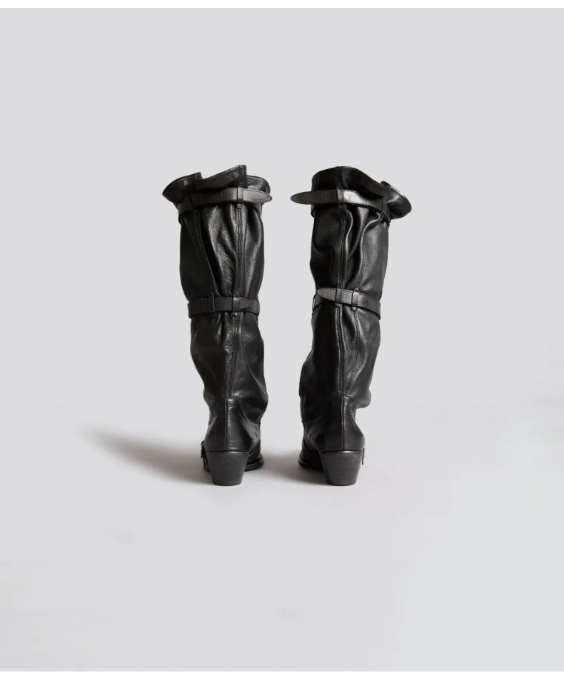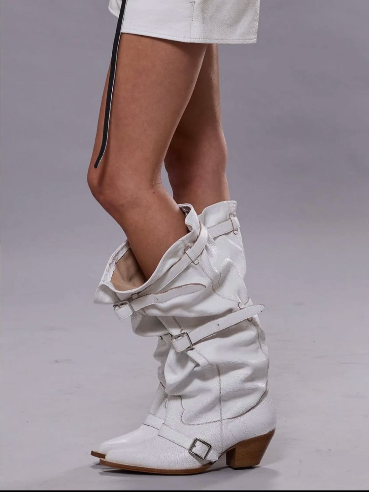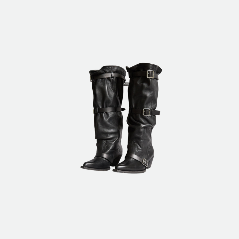 NIGO RRR-123 Women's Segment Buckle Strap Vintage Cowboy Stacked Boots Autumn And Winter Solid Color Leather Tall Boots Casual Shoes Heel High 5cm Ngvp #nigo1837