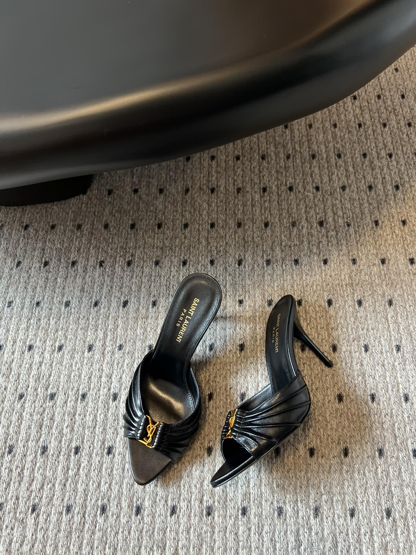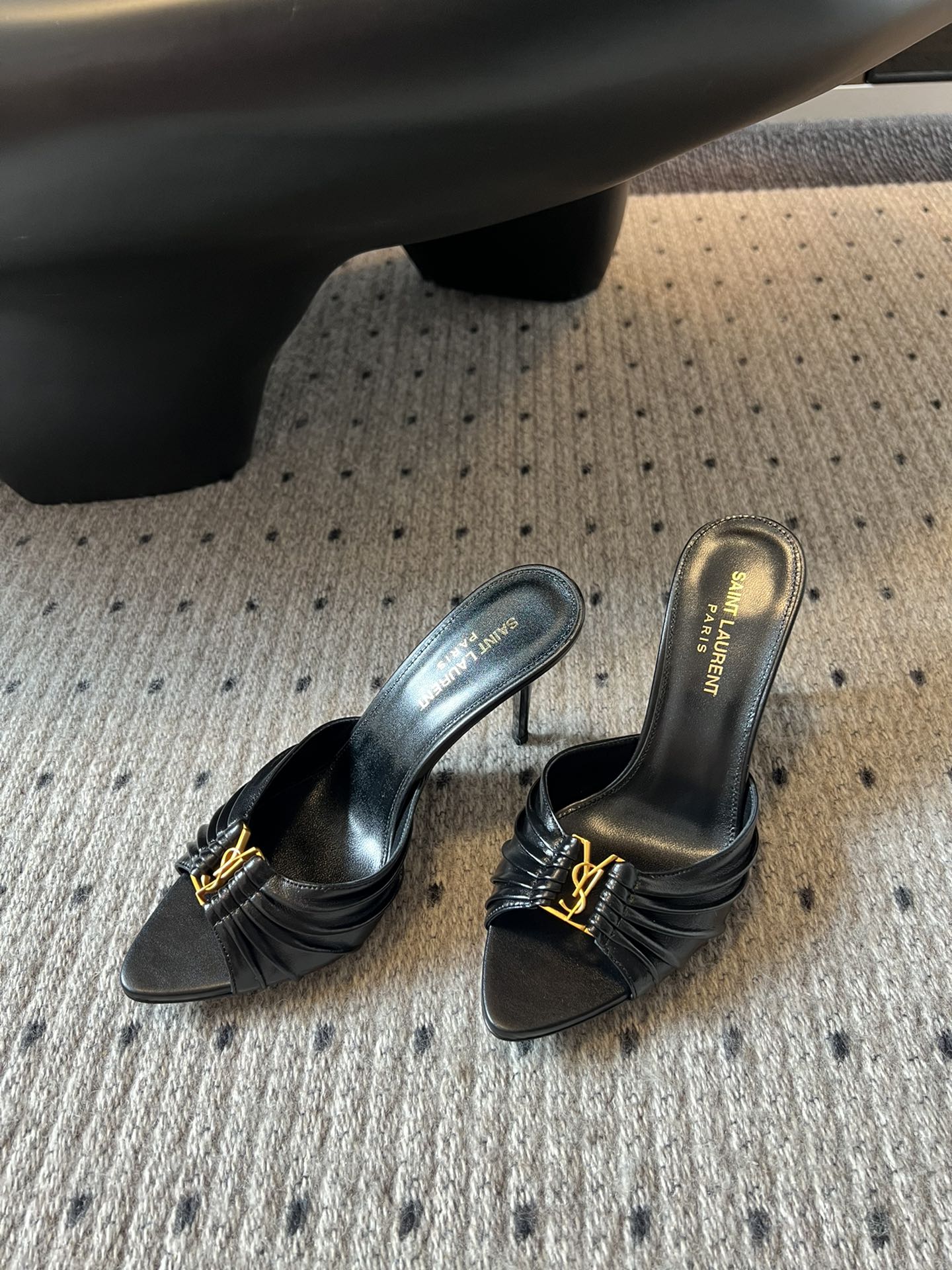 NIGO Saint Laurent BABYLONE Women's Fashion Classic Minimalist Leather Pointed Toe Open Toe 10cm High Heels Shoes #nigo78434