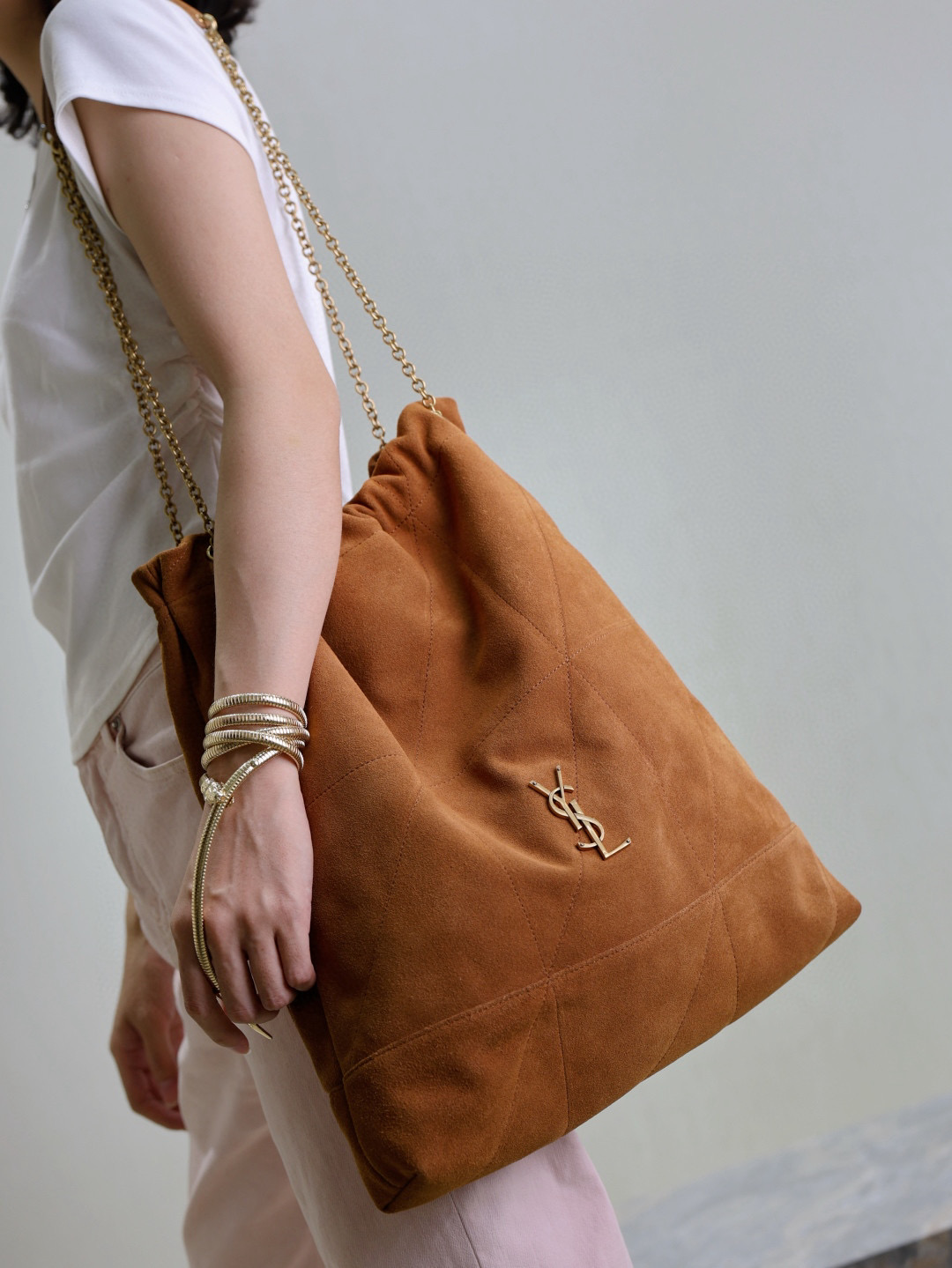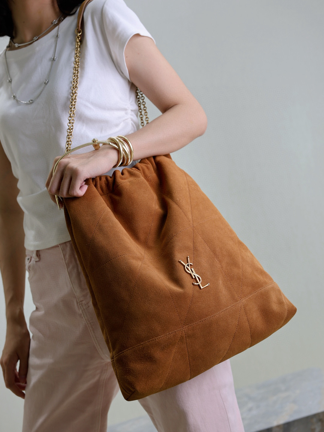 NIGO SAINT LAURENT JAMIE POCHON Women's Solid Colour Suede Leather Metal Chain Tote Shoulder Bag Bags #nigo76824