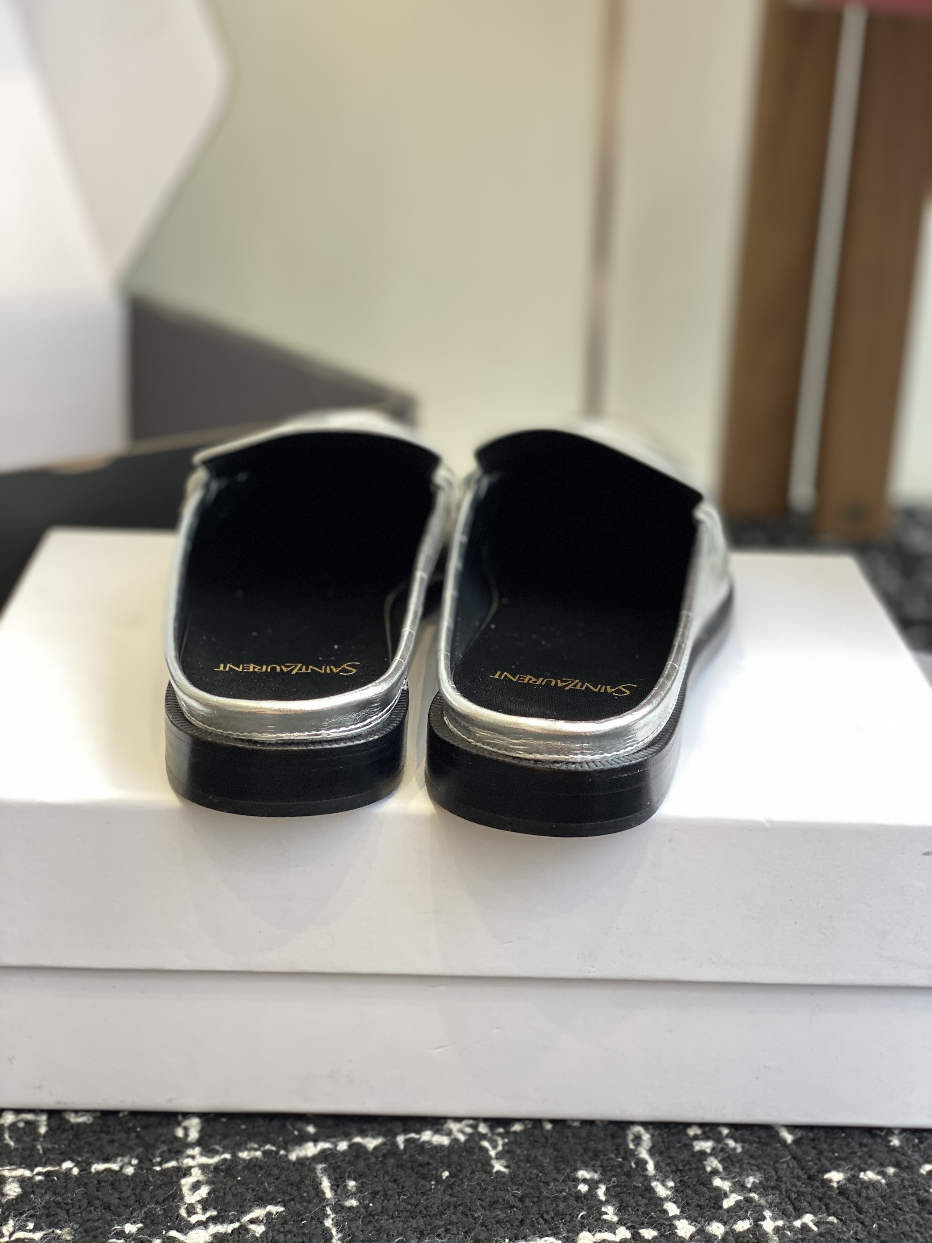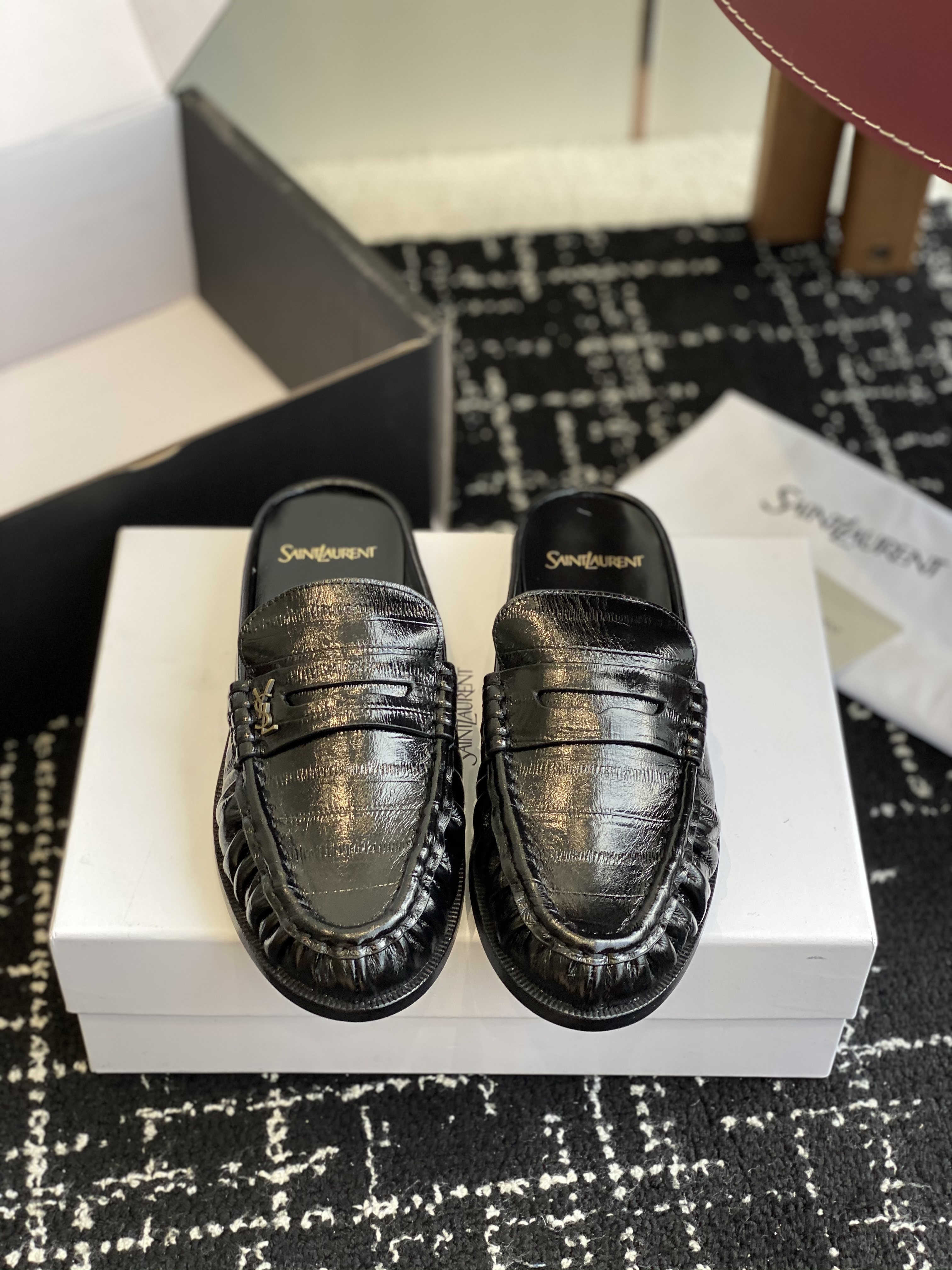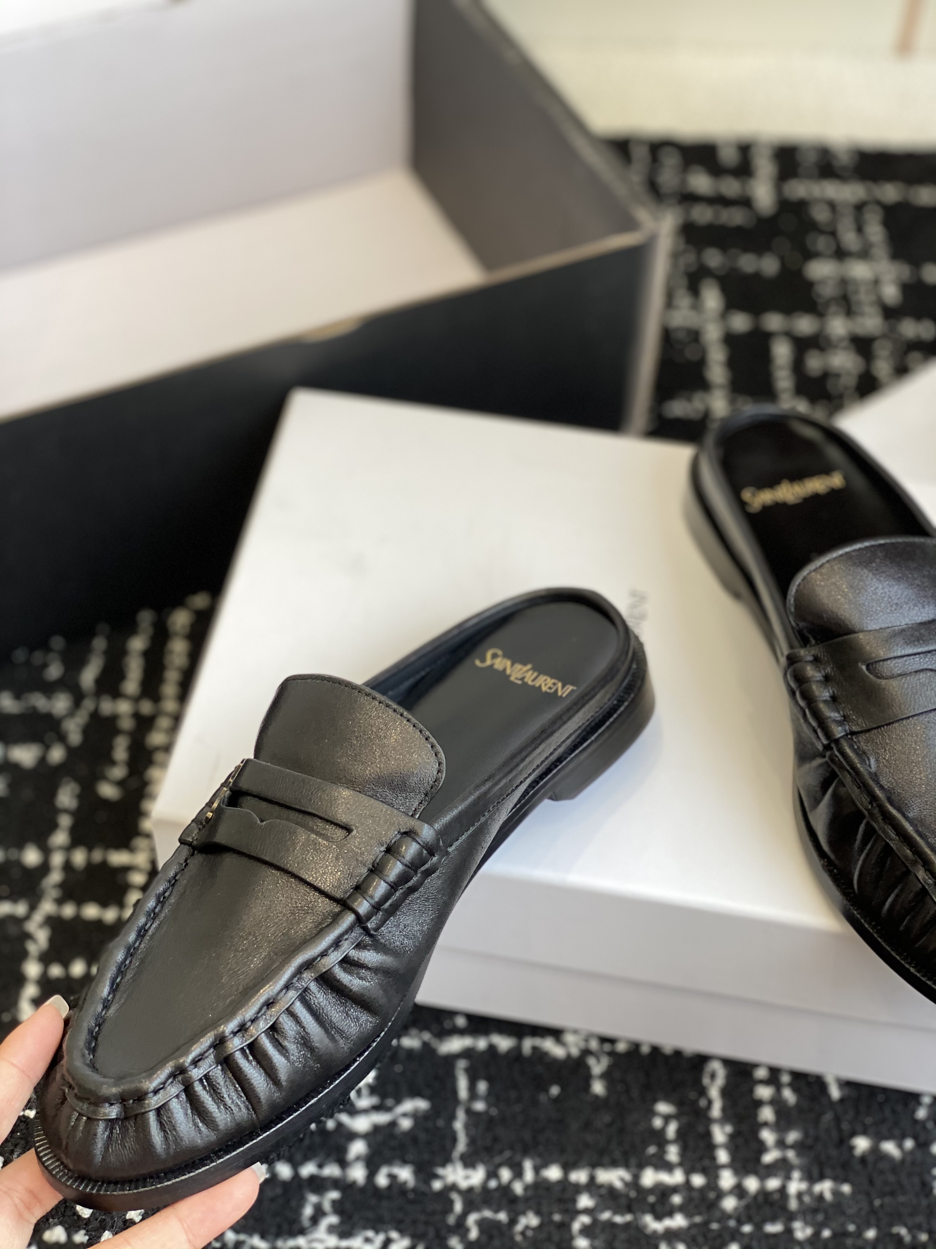 NIGO Saint Laurent LE LOAFER Women's Fashion Casual Round Toe Slip On Half Slip On Logo Leather Loafer Mule Shoes #nigo78444