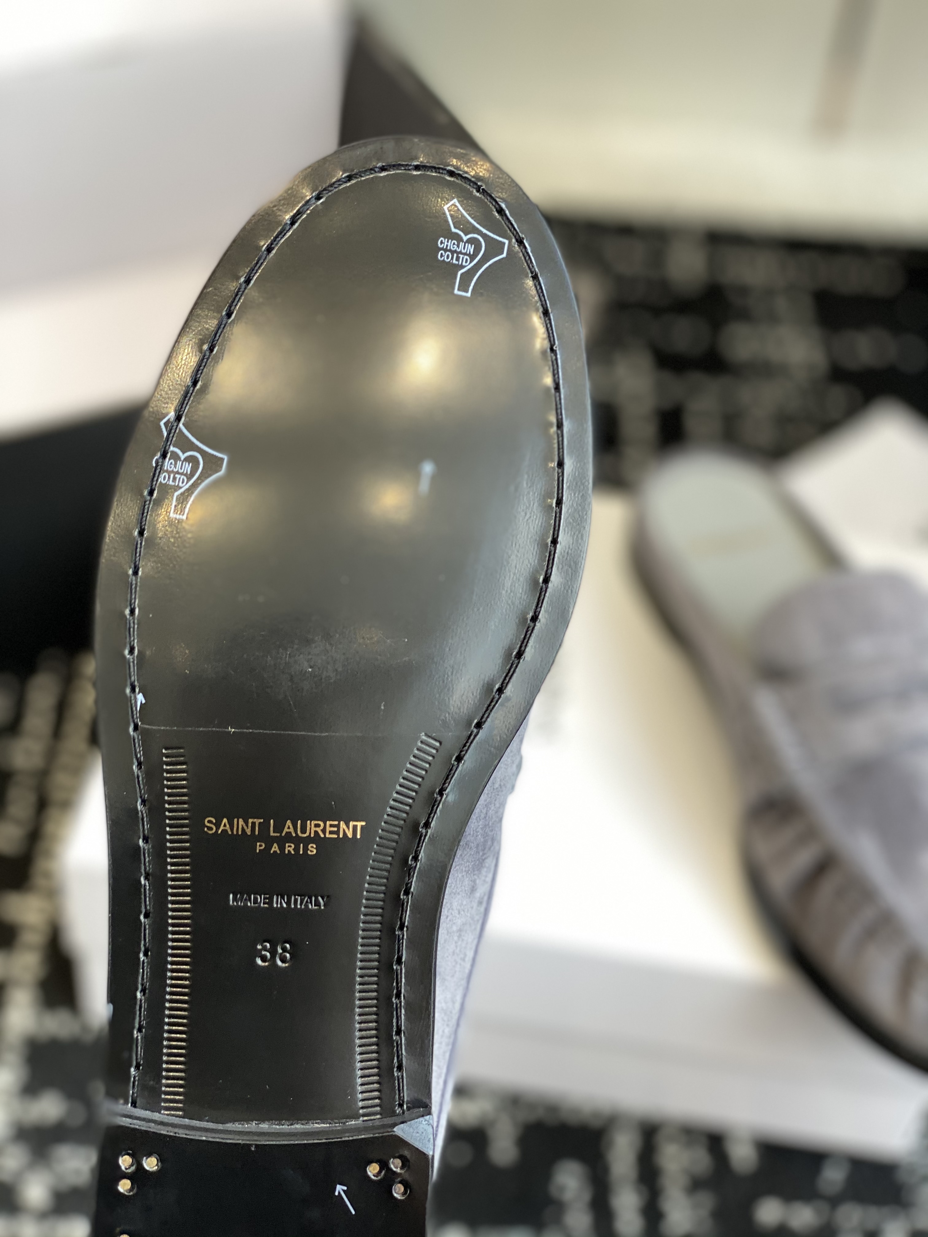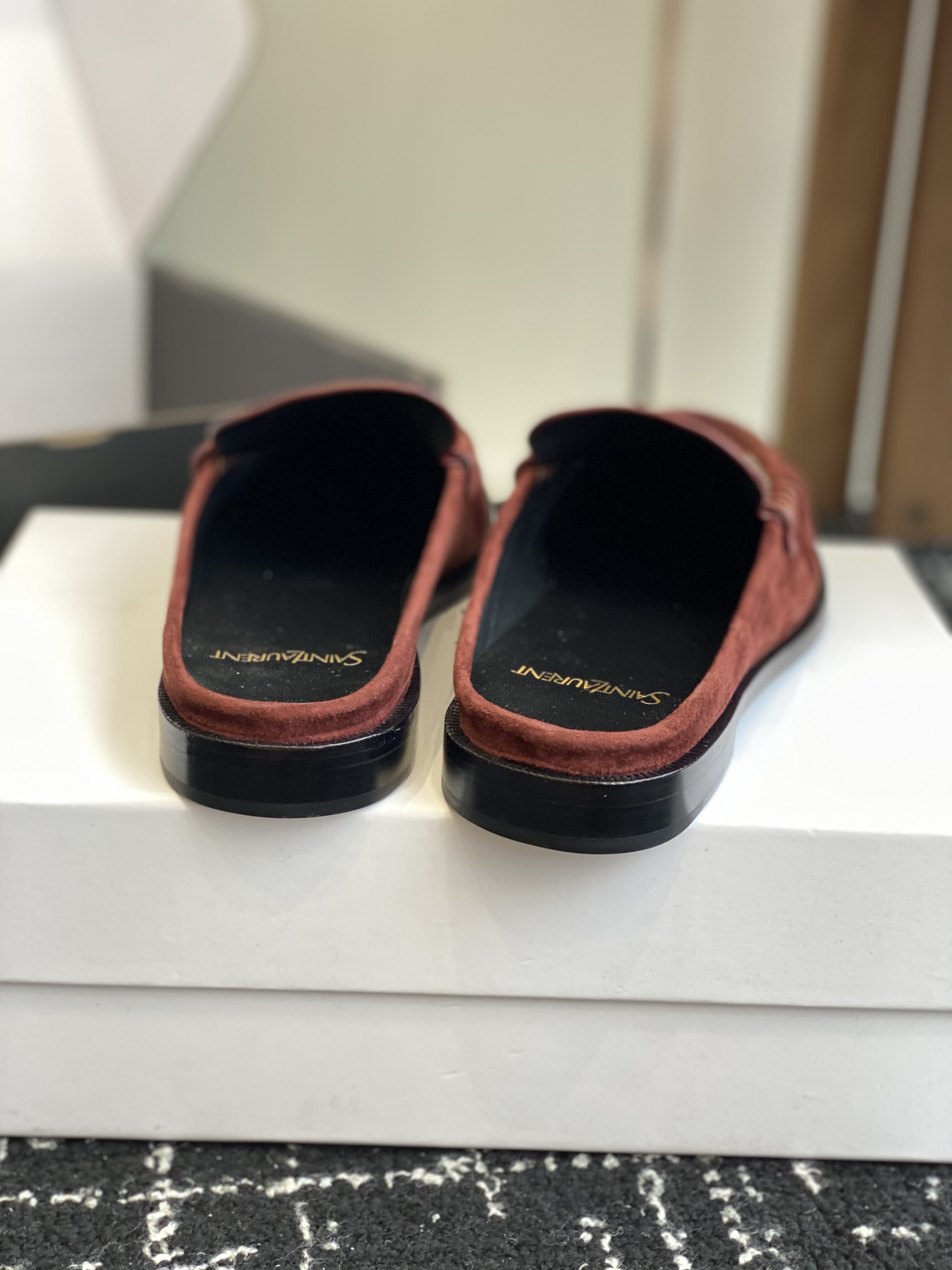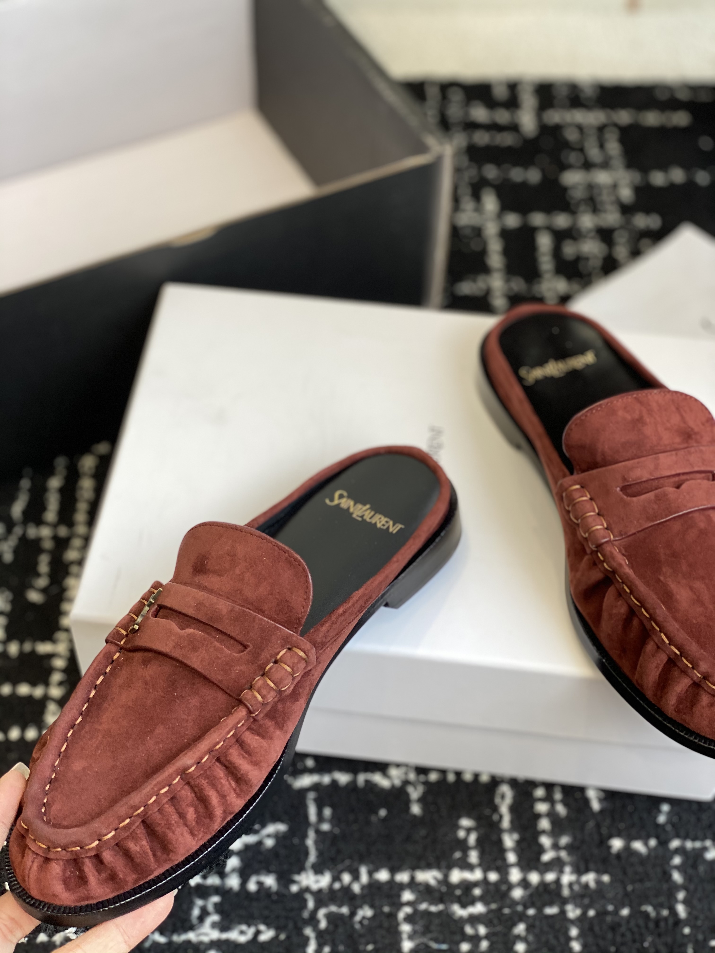 NIGO Saint Laurent LE LOAFER Women's Fashion Casual Round Toe Slip On Half Slip On Logo Leather Loafer Mule Shoes #nigo78444