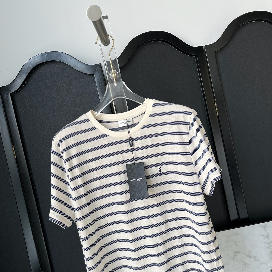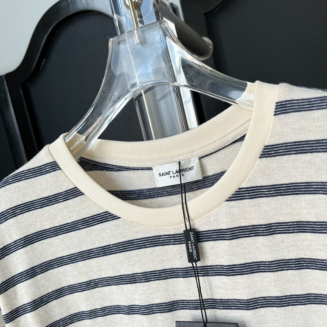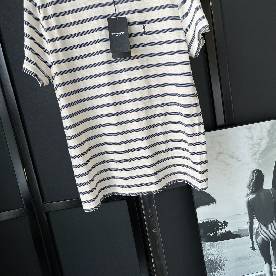 NIGO SAINT LAURENT Men's Summer Striped Logo Letter Embroidery Round Neck Cotton Short Sleeve T-Shirt #nigo99877