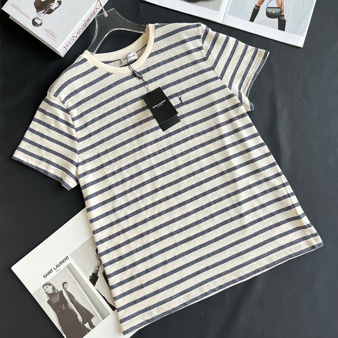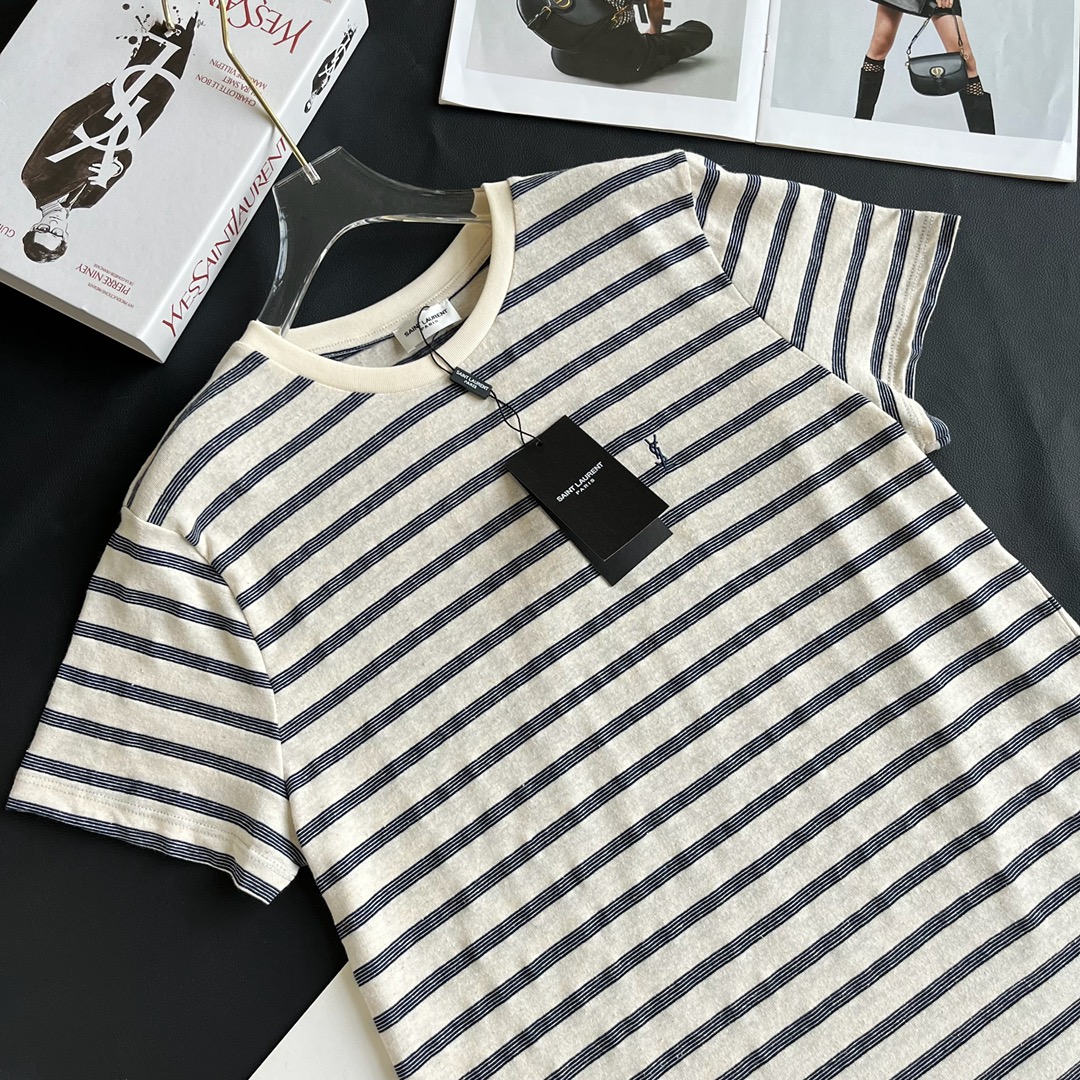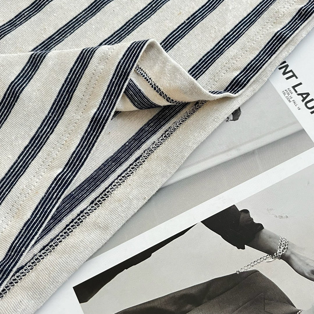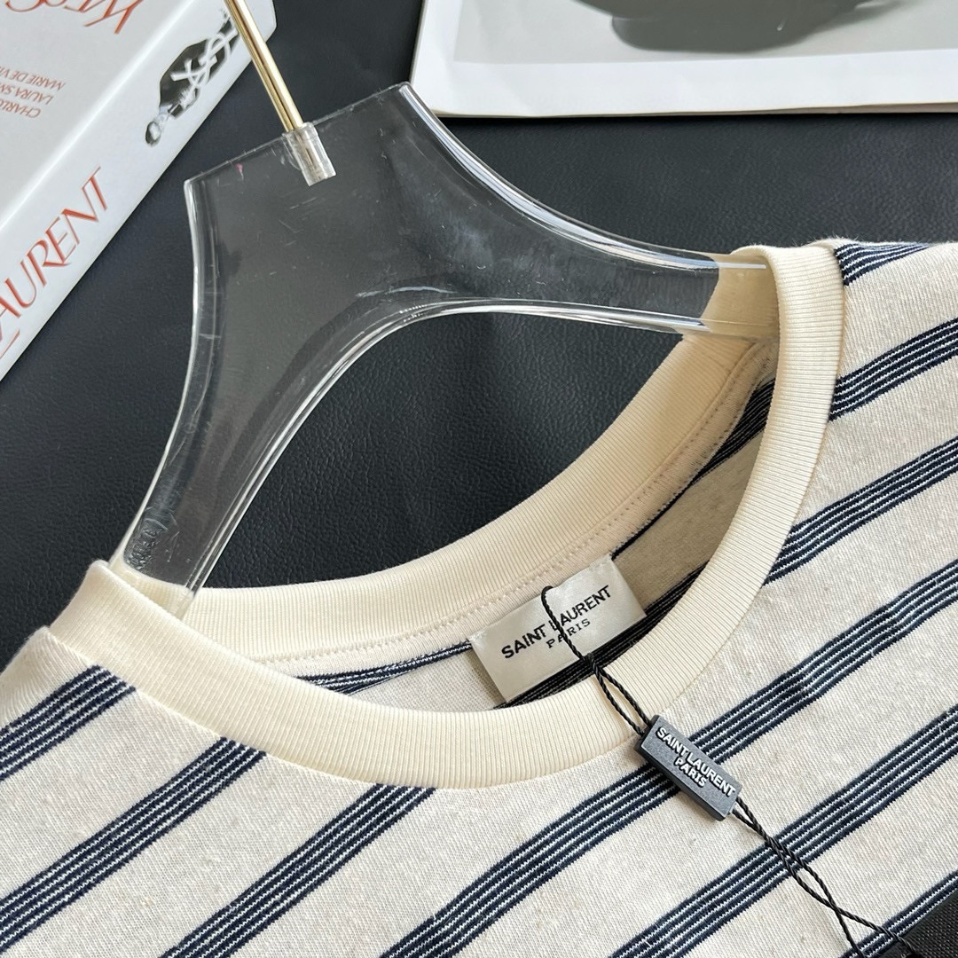 NIGO SAINT LAURENT Men's Summer Striped Logo Letter Embroidery Round Neck Cotton Short Sleeve T-Shirt #nigo99877