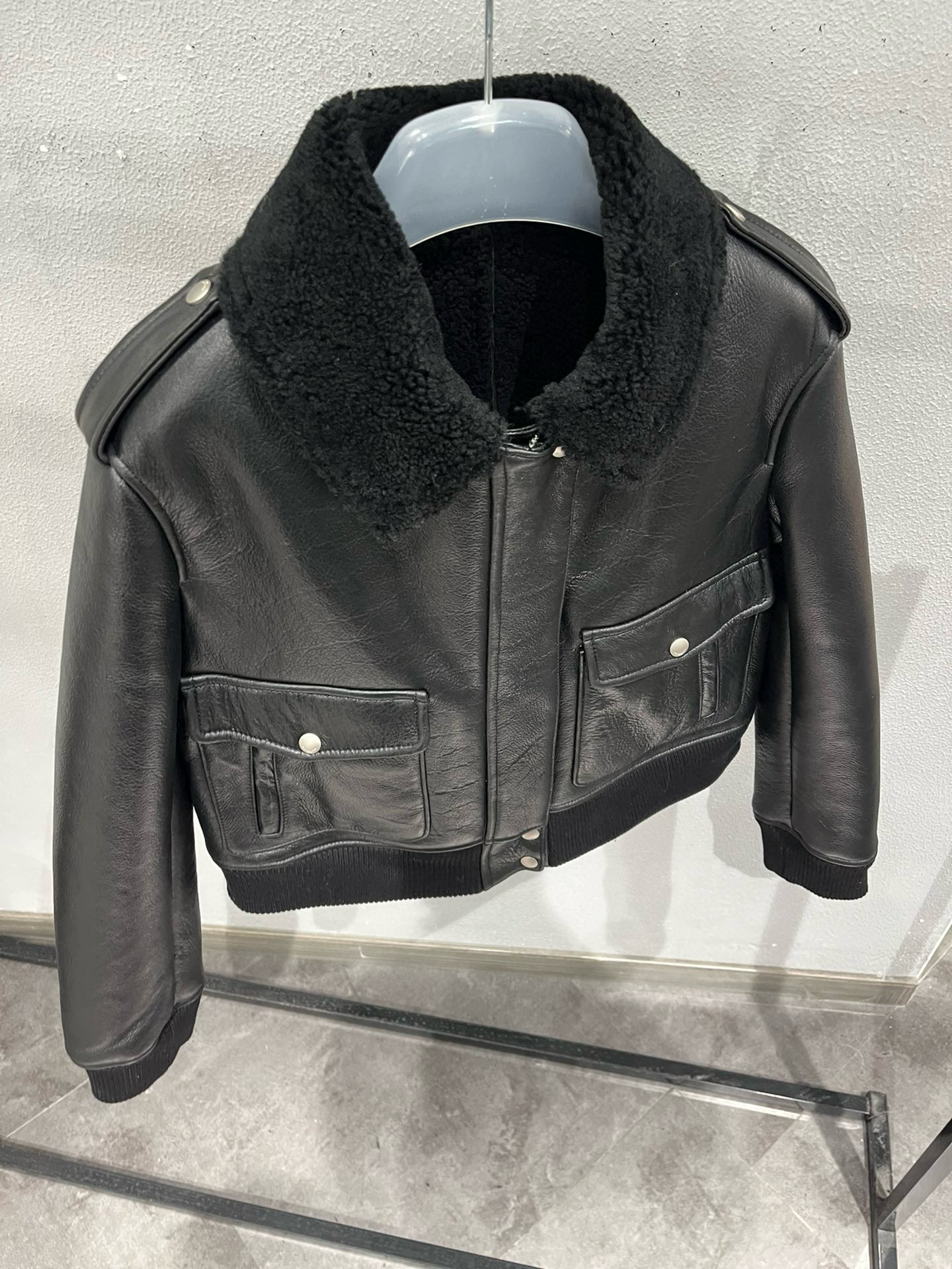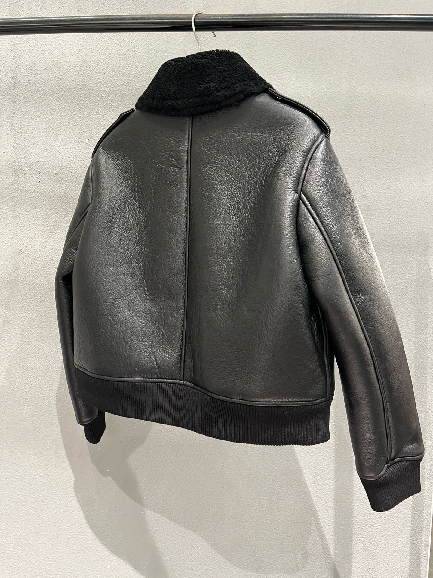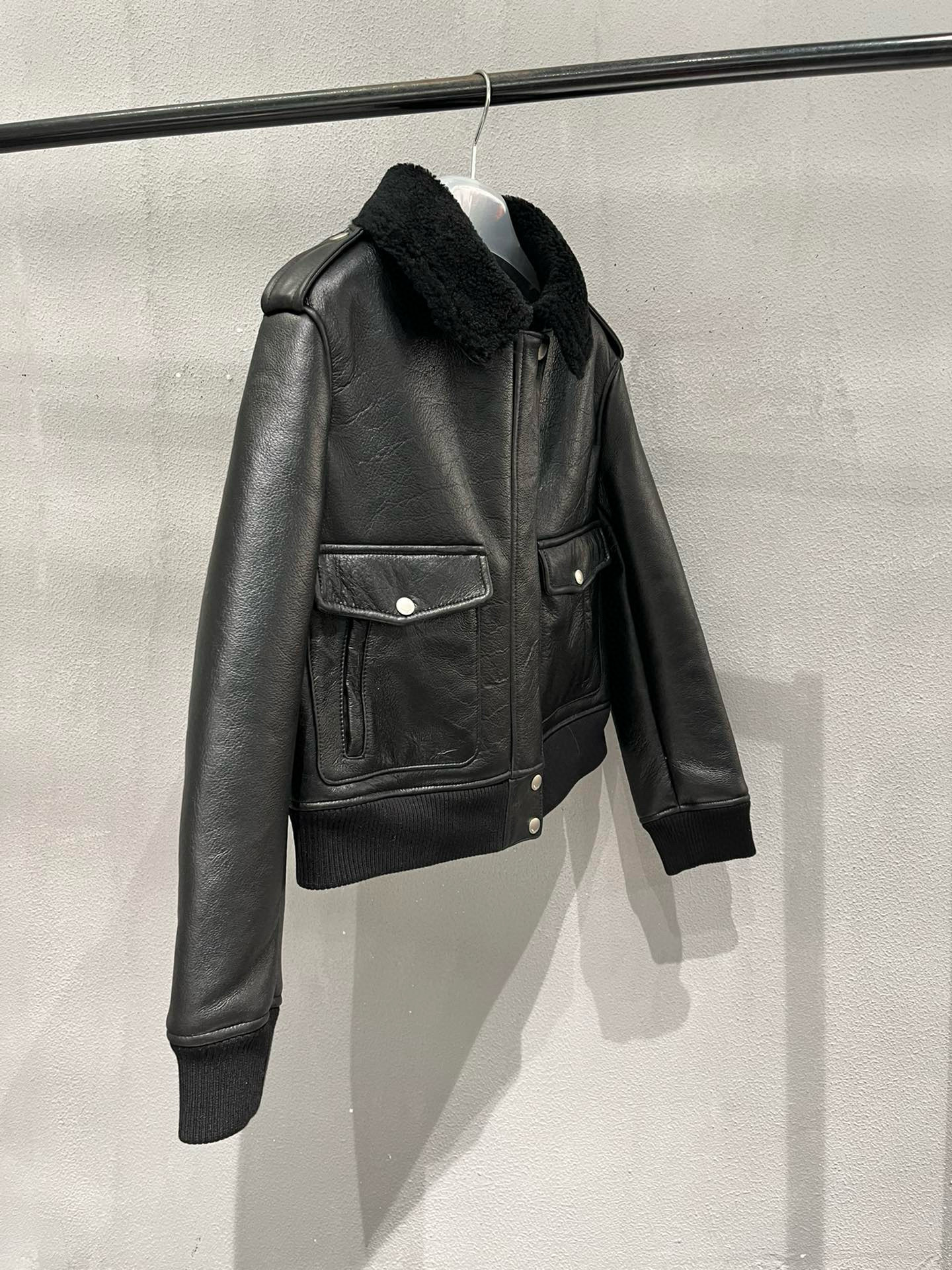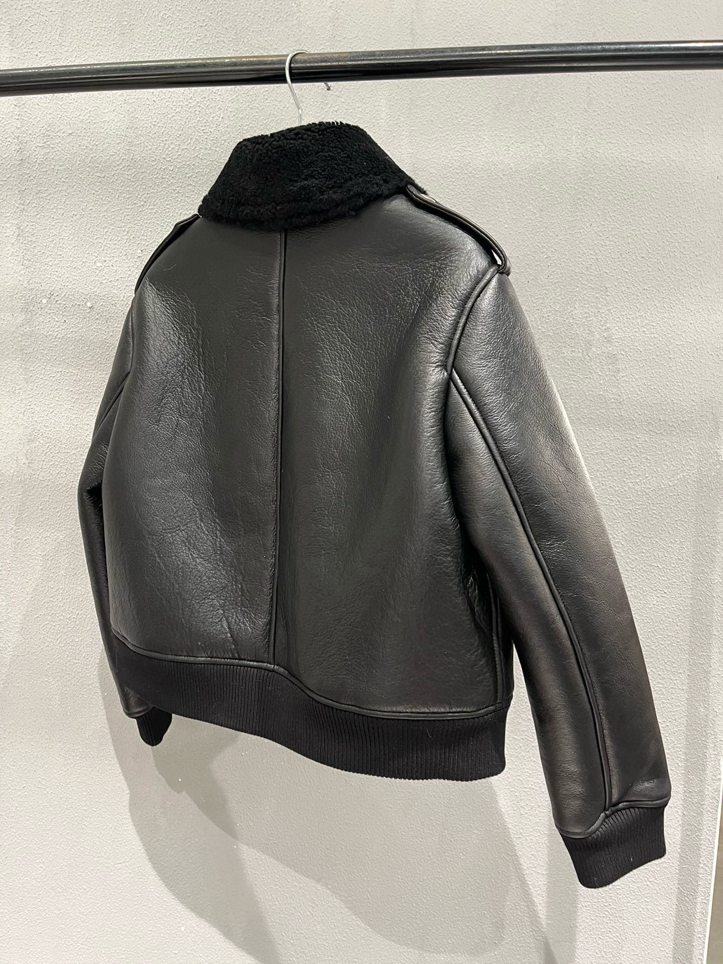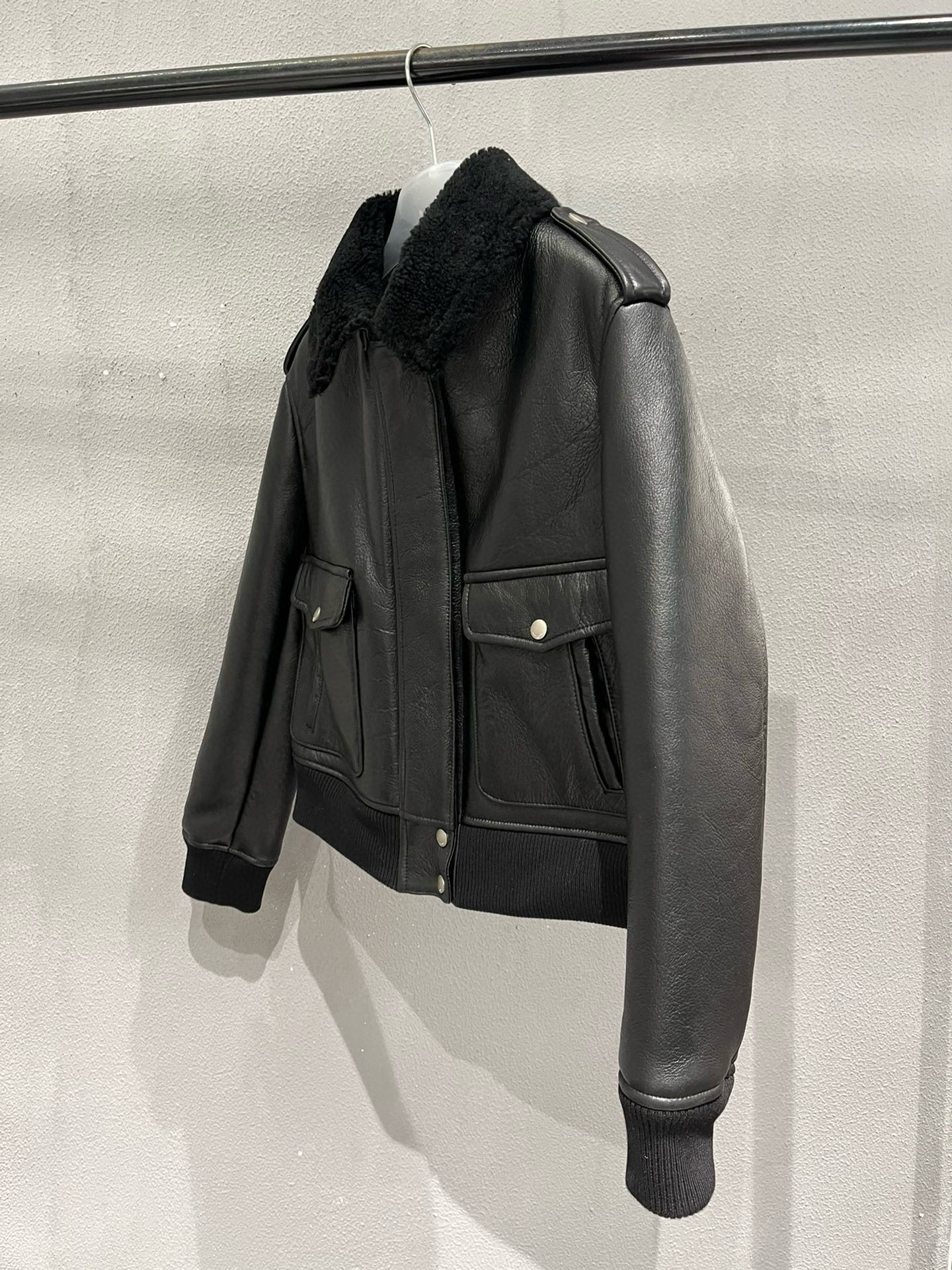 NIGO Saint Laurent Men's Winter Black Pilot Single Breasted Zipper Leather Jacket #nigo98459