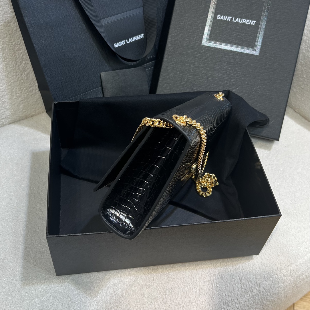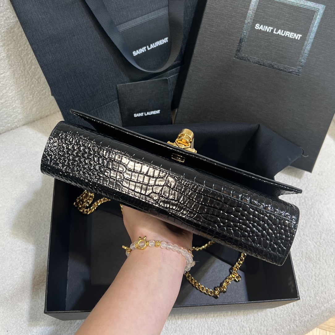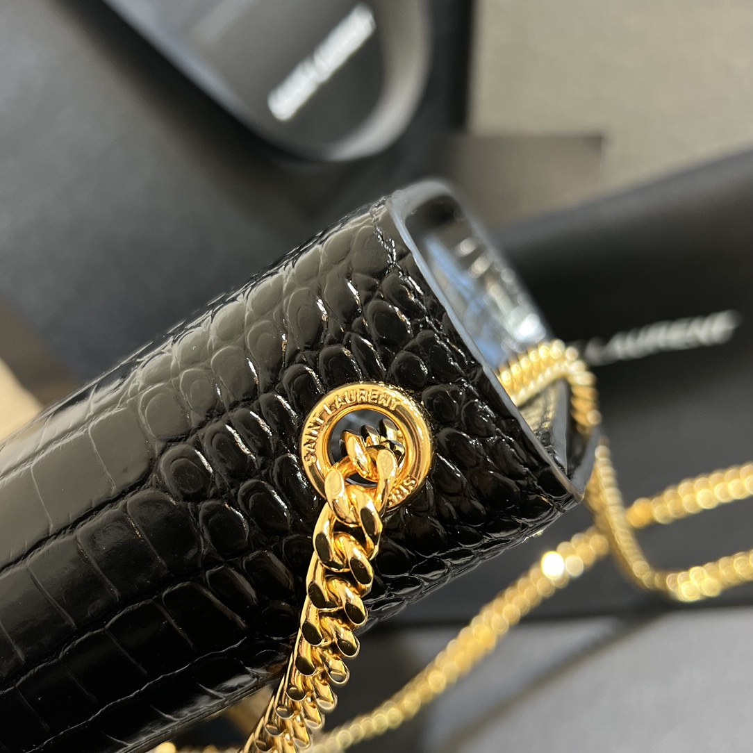 NIGO SAINT LAURENT Women Black Gold Label Logo Chain Crocodile Embossed Glossy Cowhide Crossbody Shoulder Bag Bags #nigo74268