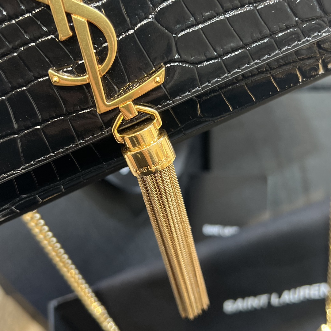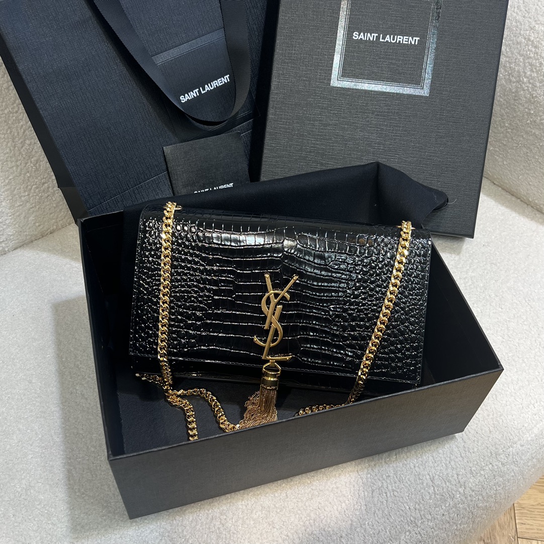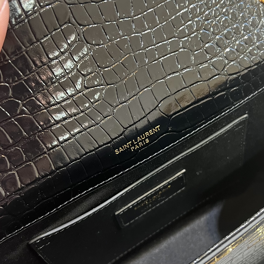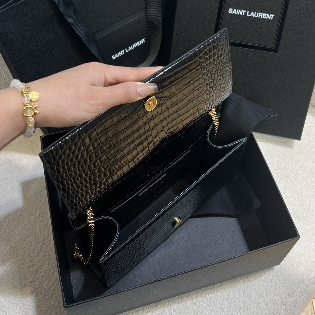 NIGO SAINT LAURENT Women Black Gold Label Logo Chain Crocodile Embossed Glossy Cowhide Crossbody Shoulder Bag Bags #nigo74268