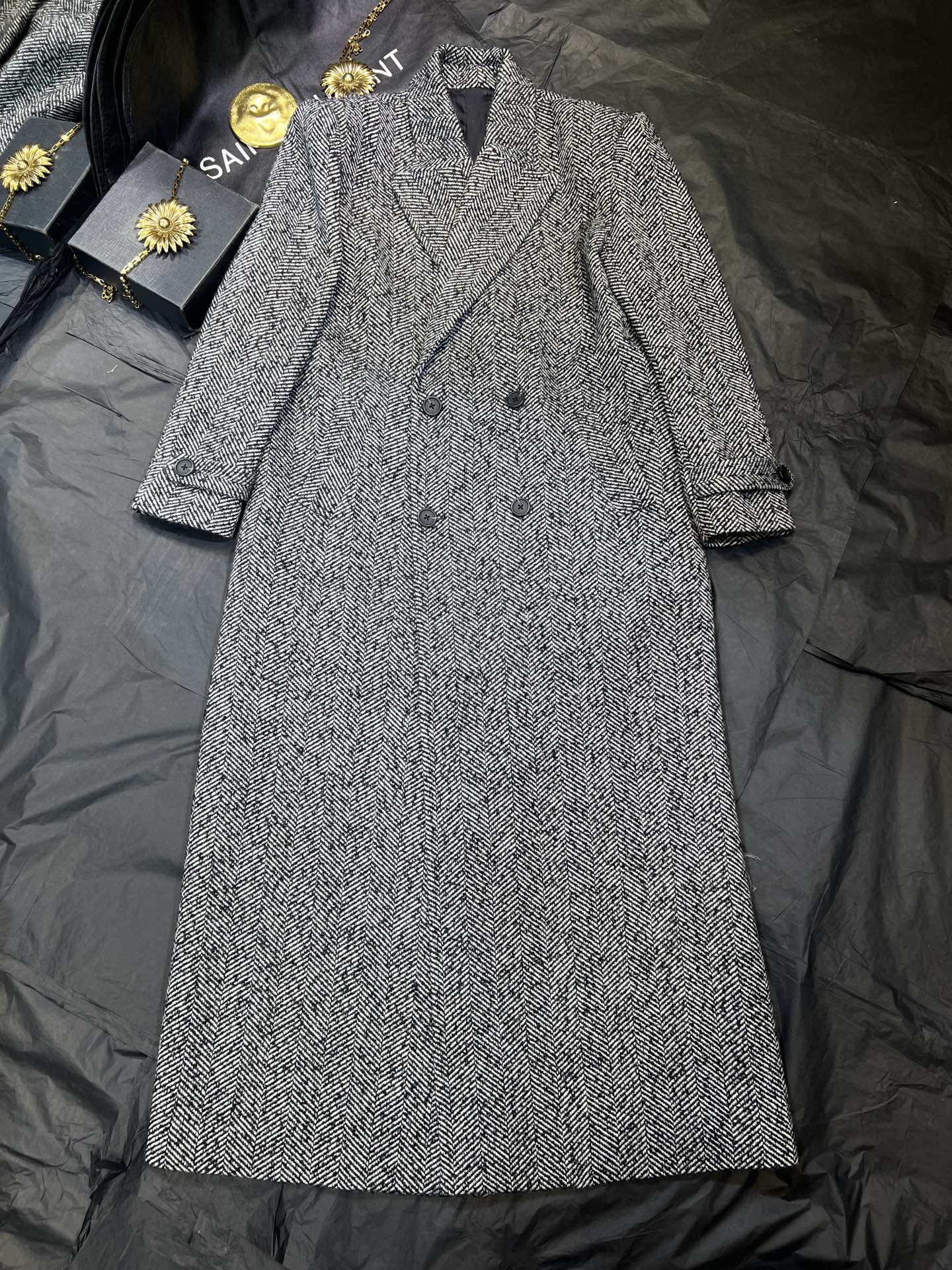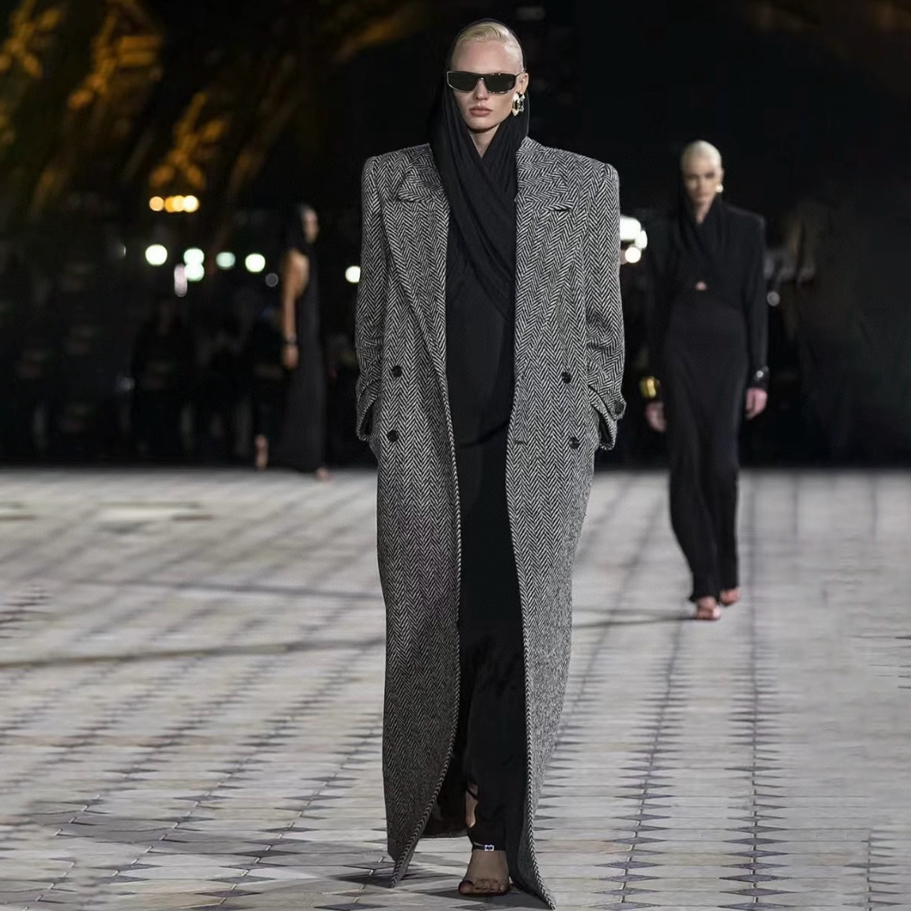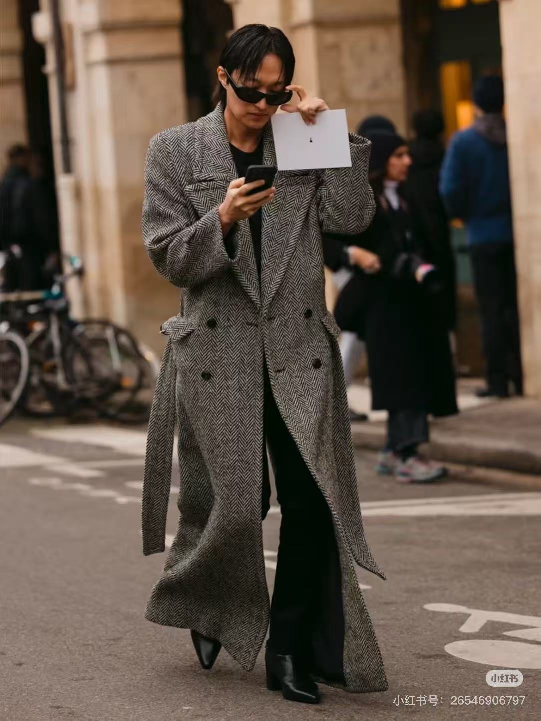 NIGO SAINT LAURENT Women's Fall And Winter Maldon Style Herringbone Pattern Coat Elegant And Exquisite Long Belt Tweed Coat Fashion Trend Temperament Jacket Ngvp #nigo2491
