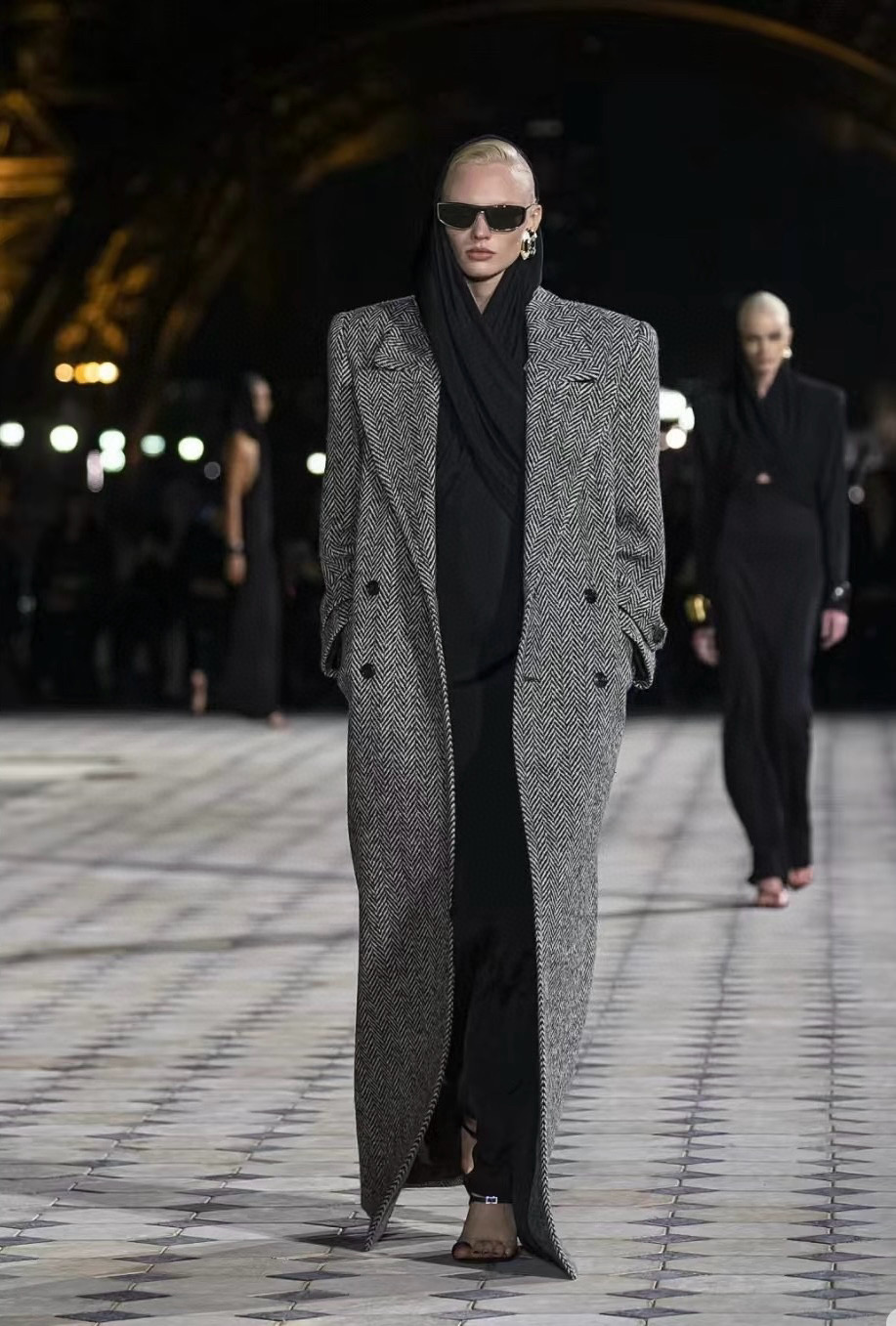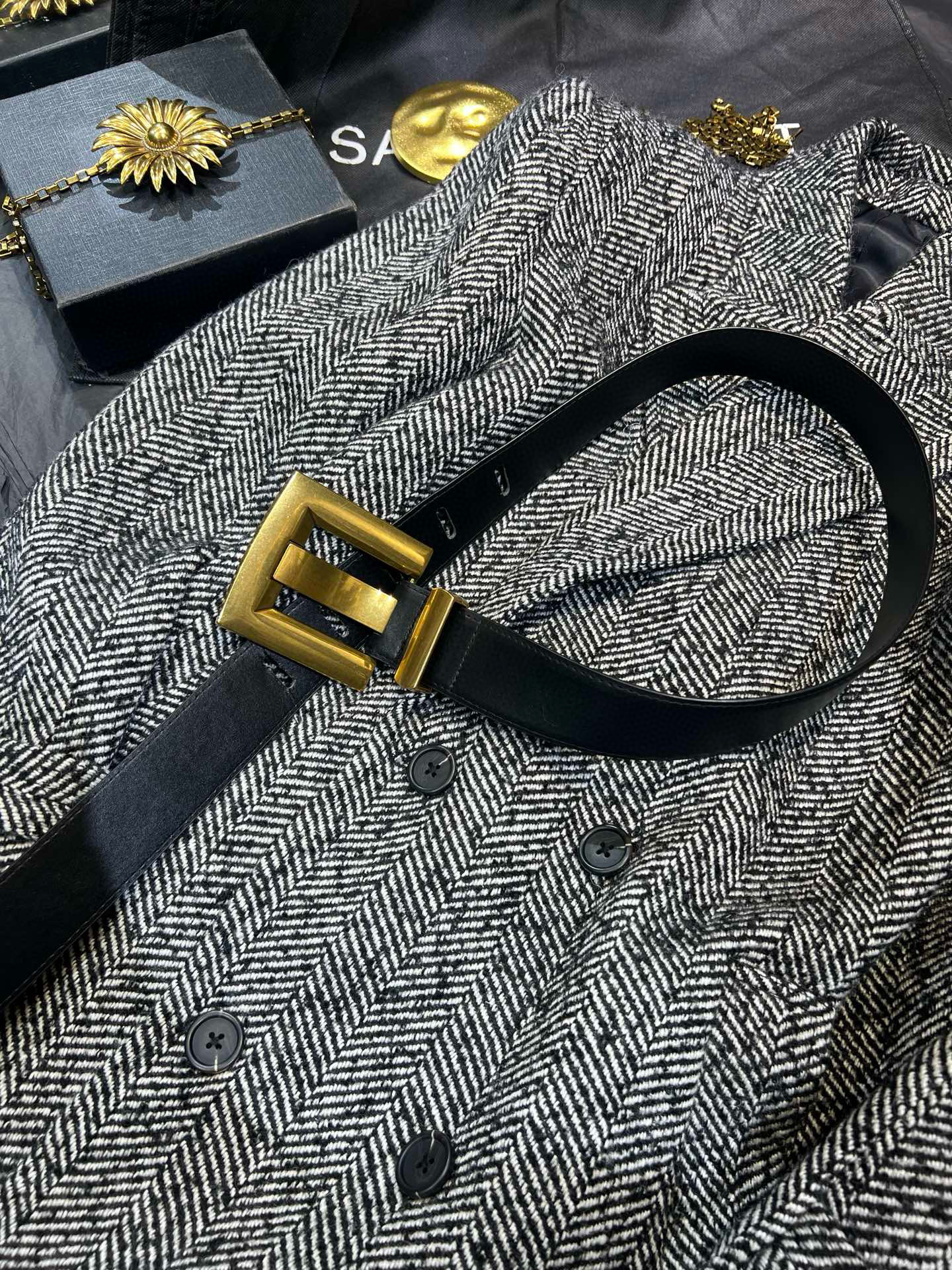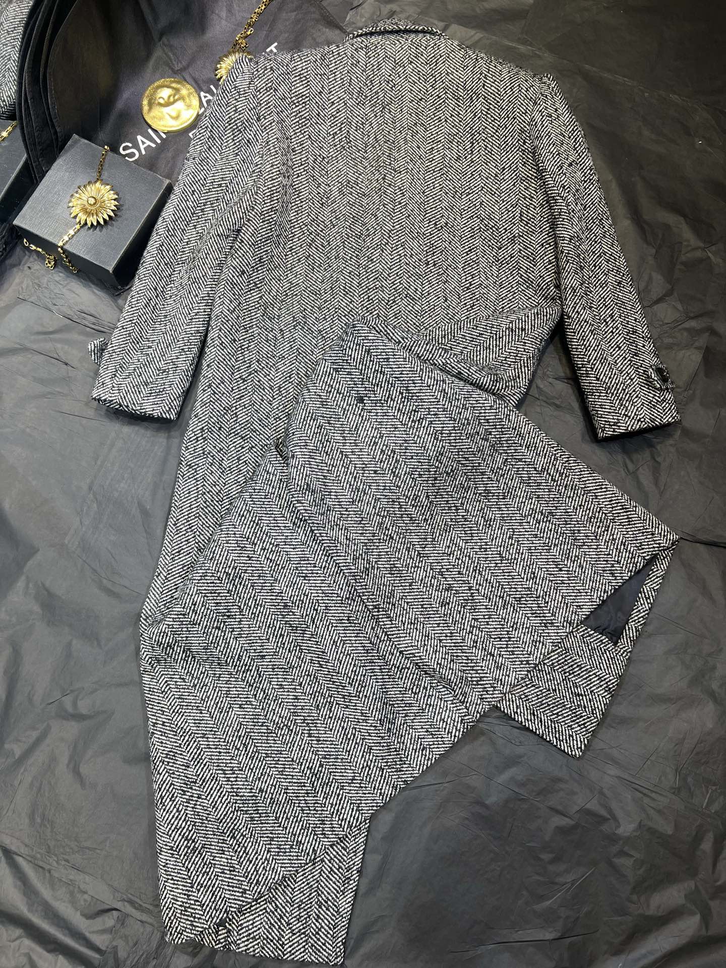 NIGO SAINT LAURENT Women's Fall And Winter Maldon Style Herringbone Pattern Coat Elegant And Exquisite Long Belt Tweed Coat Fashion Trend Temperament Jacket Ngvp #nigo2491