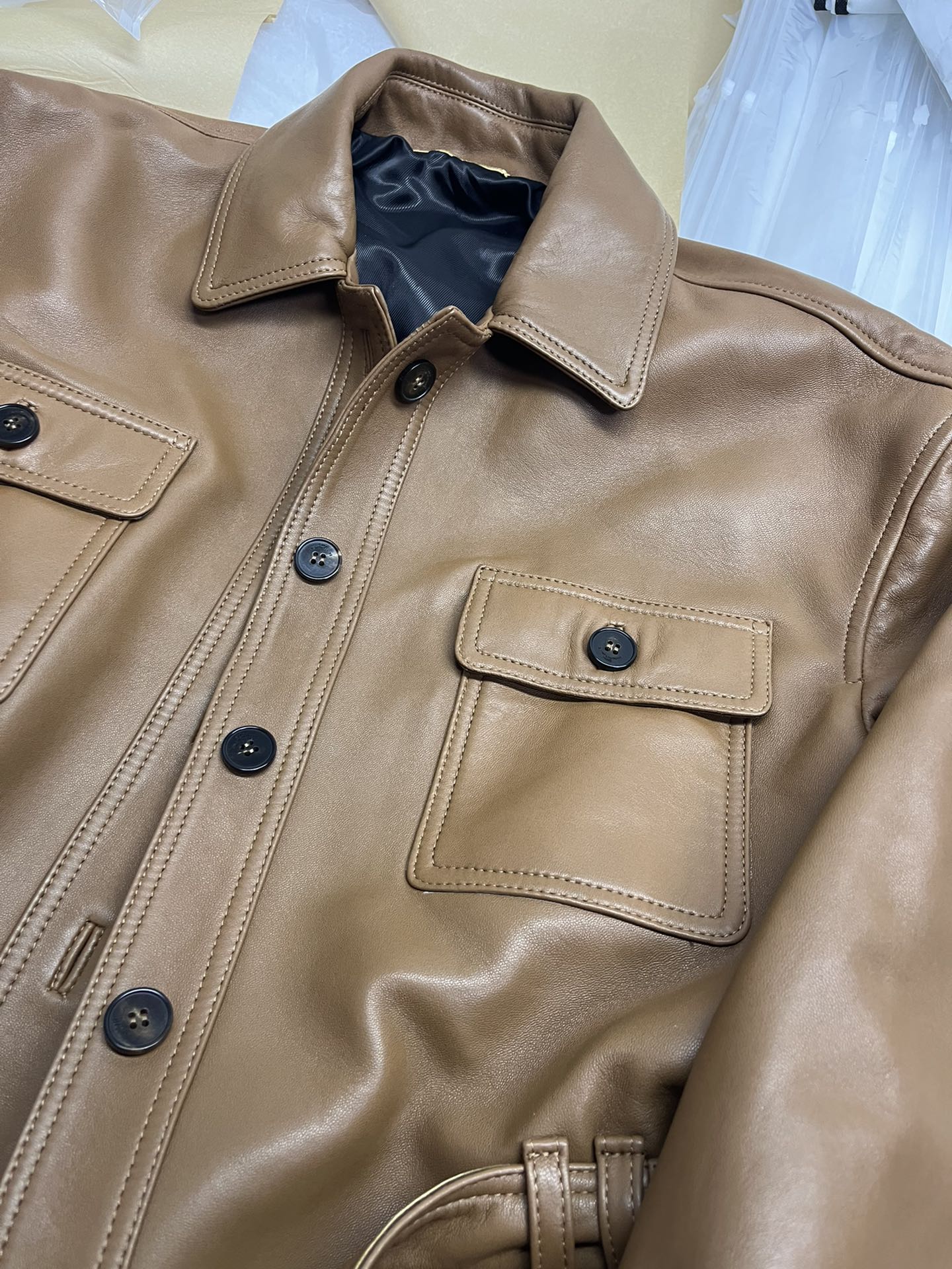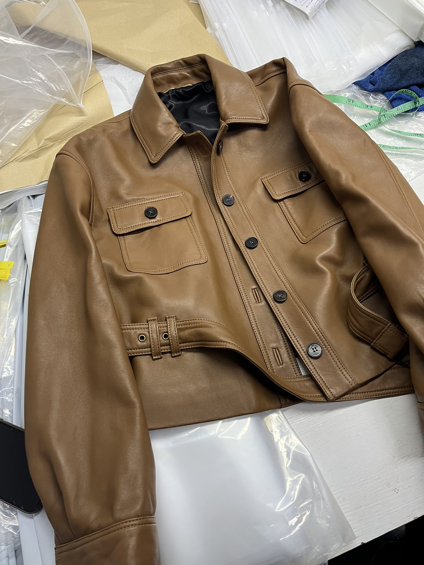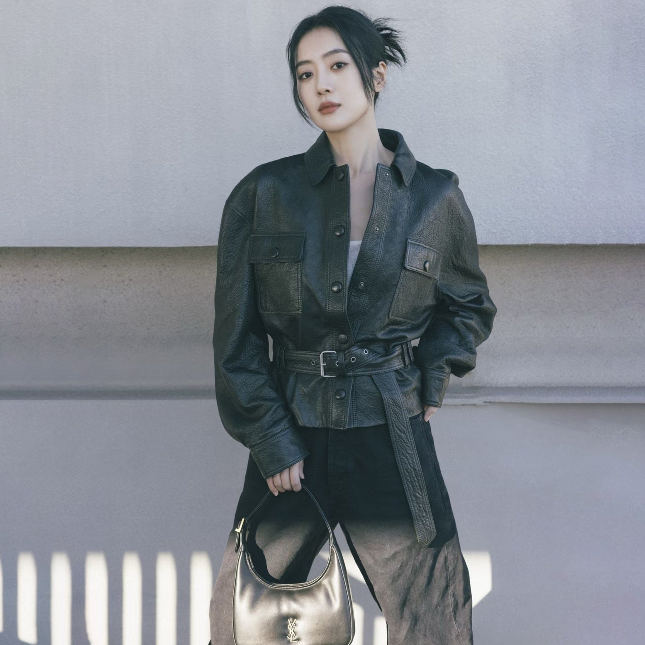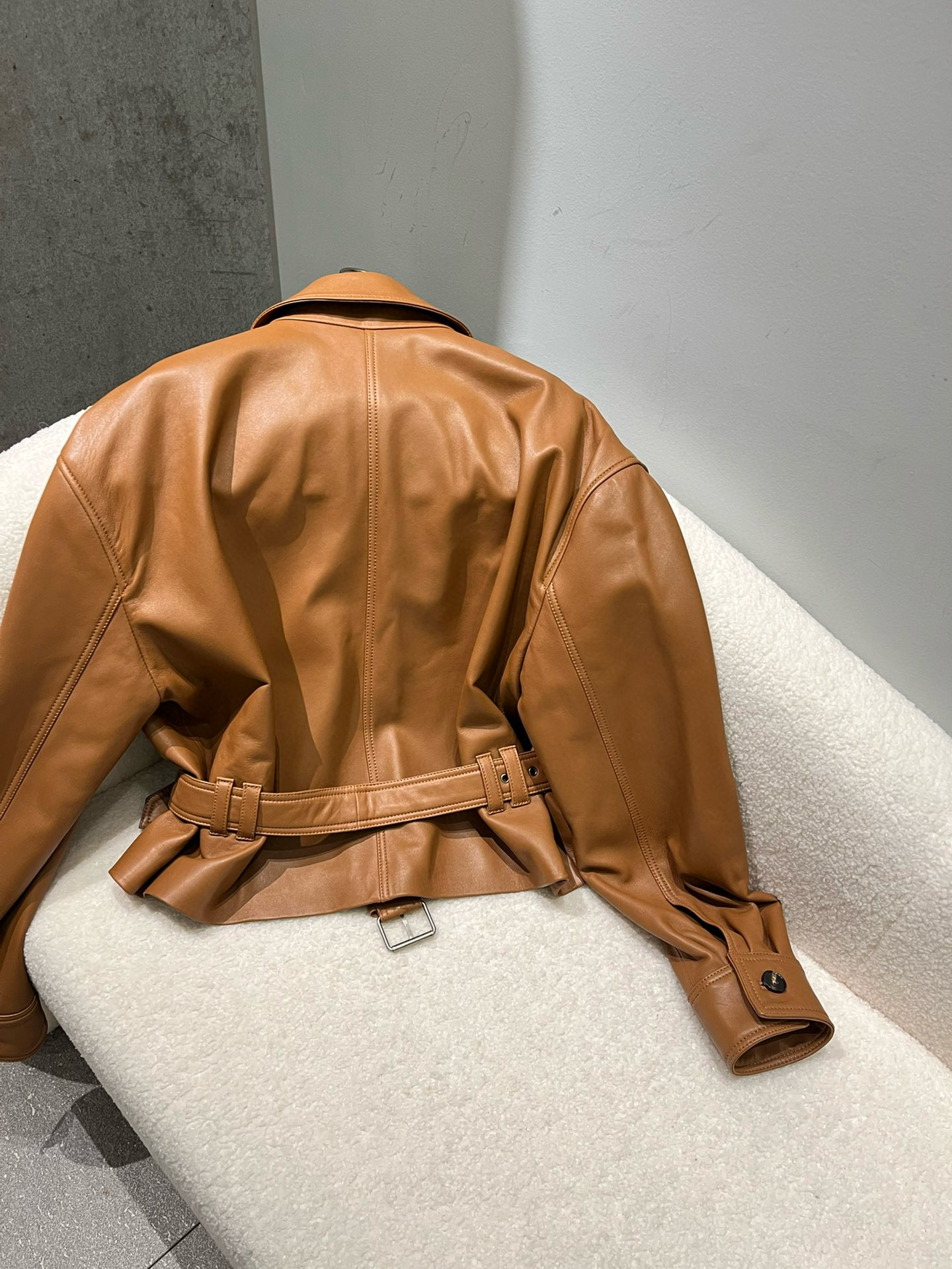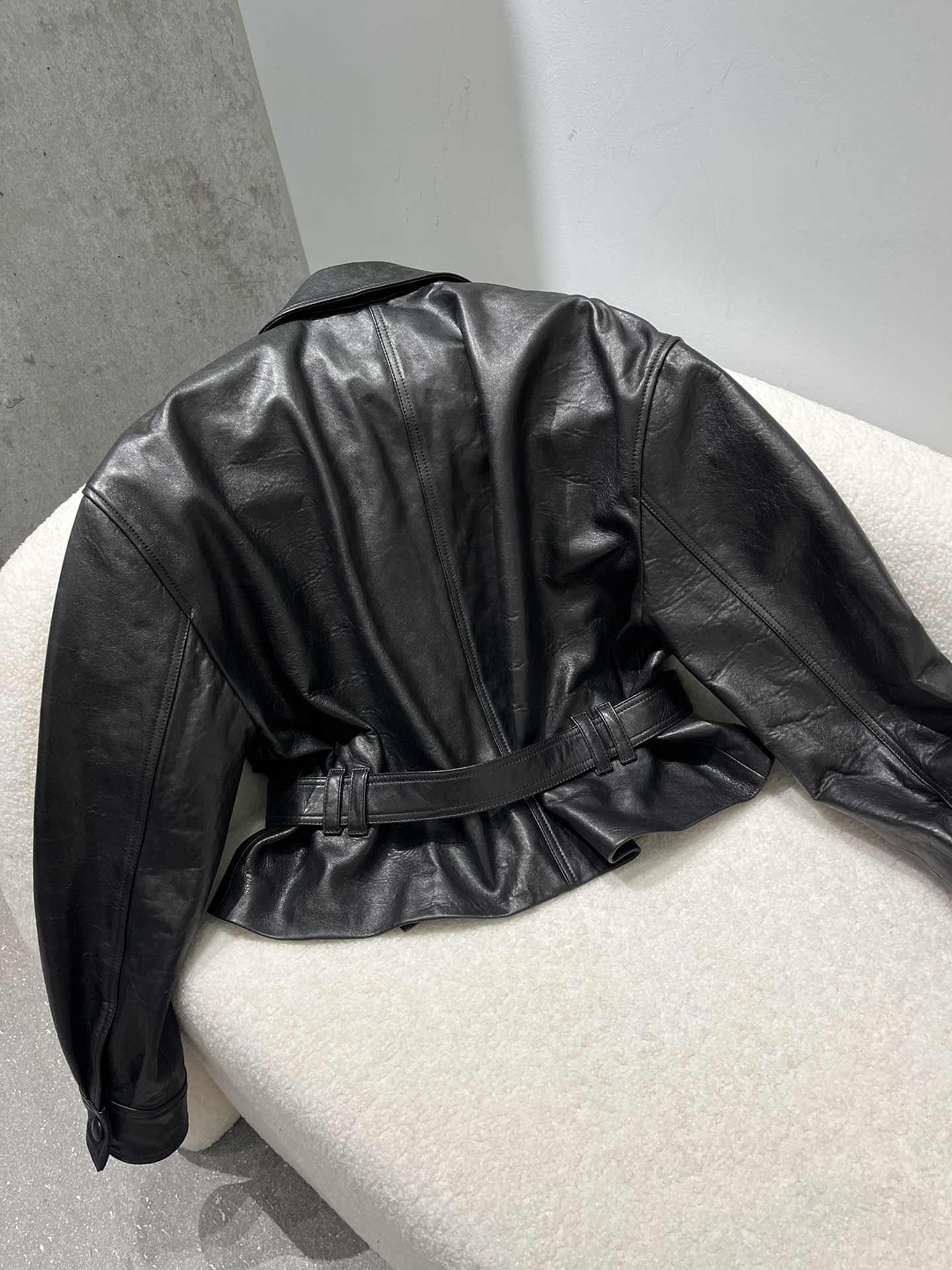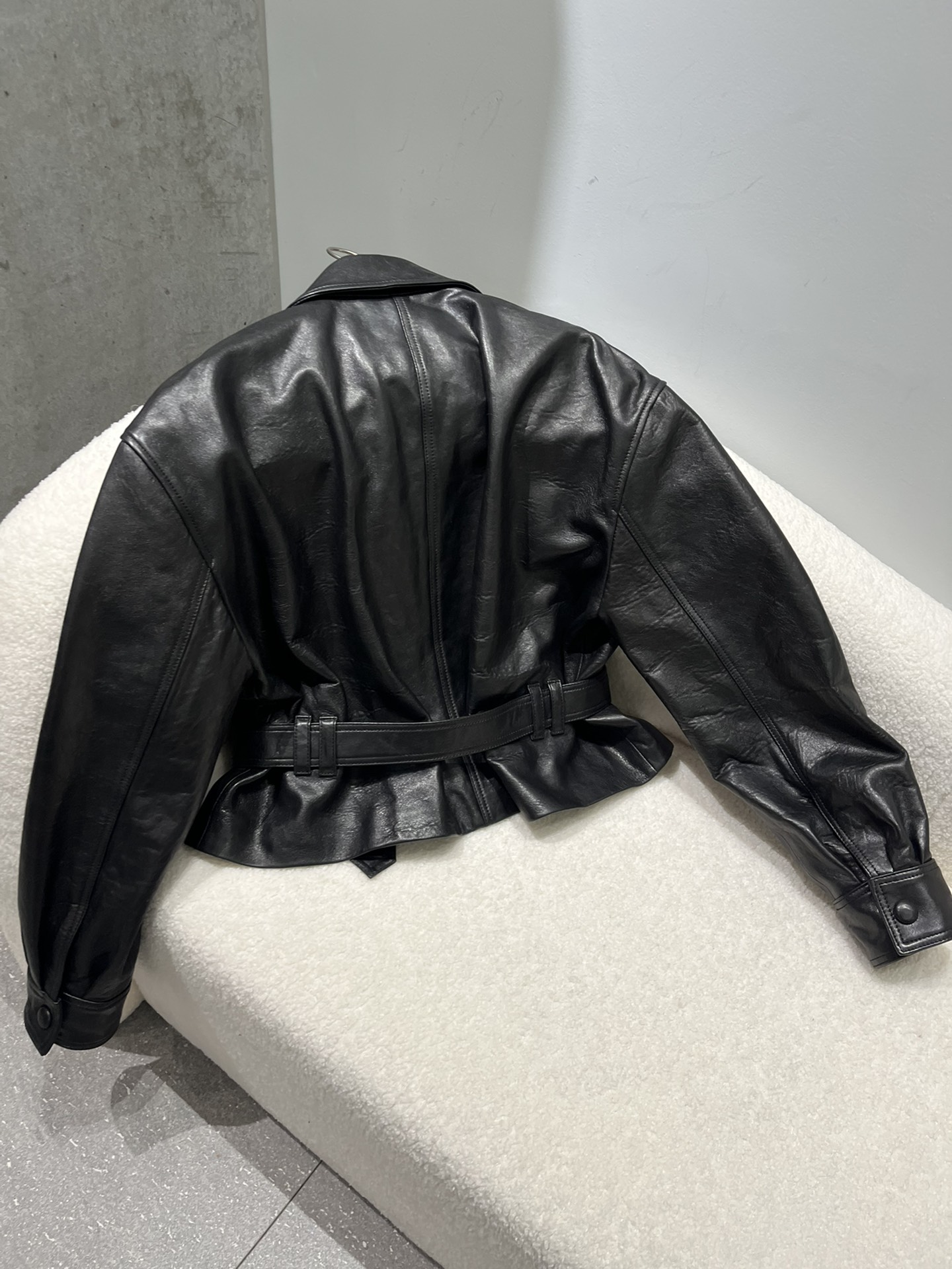 NIGO SAINT LAURENT Women's Fashion Luxury Temperament Leather Jacket Lace-up Short Jacket Lapel Long Sleeve Belt Slim Solid Colour Leather Jacket Ngvp #nigo1277