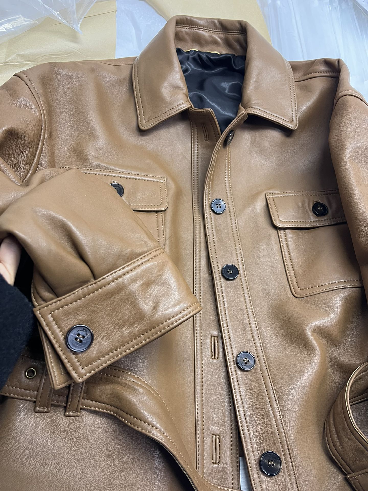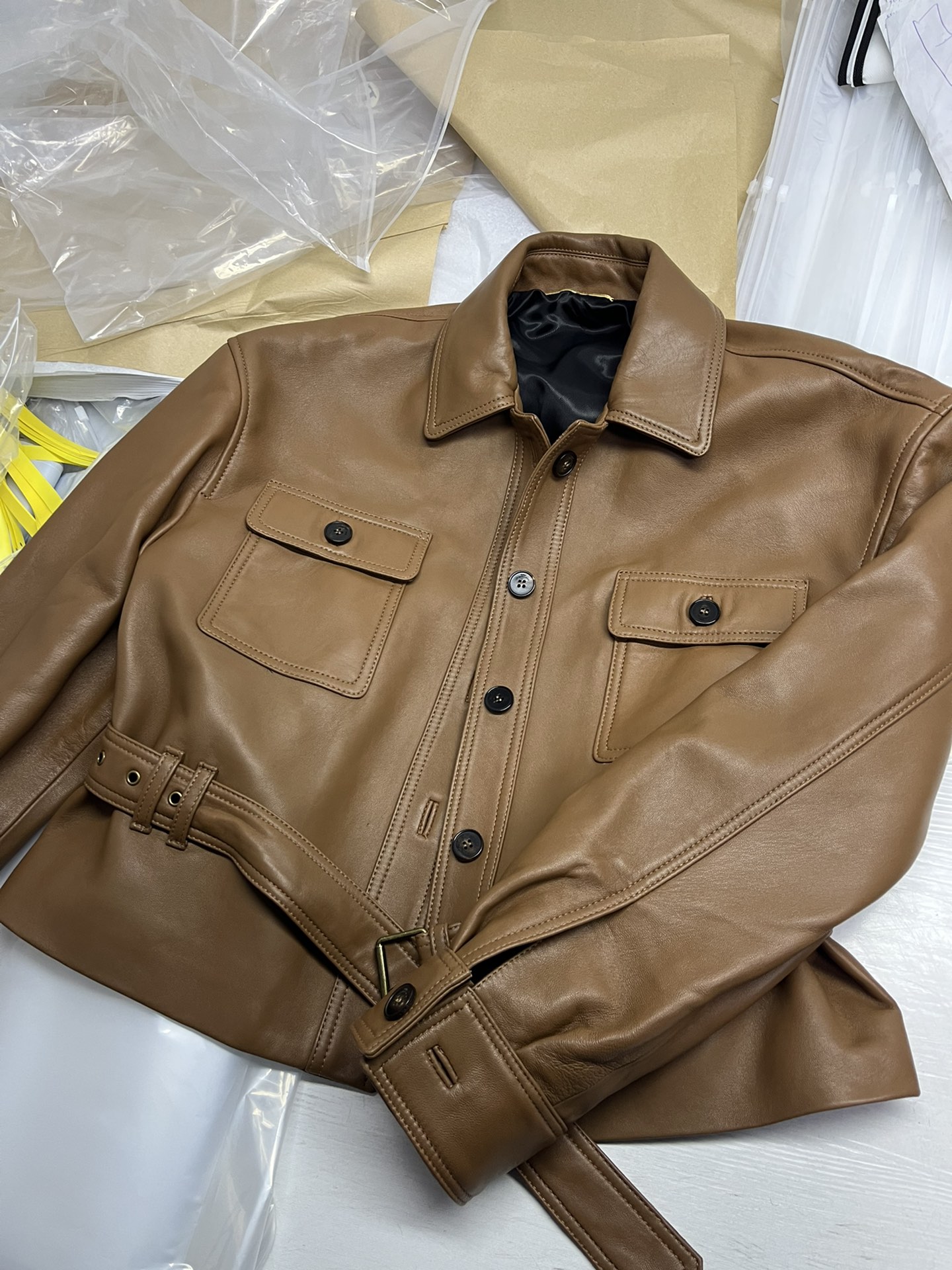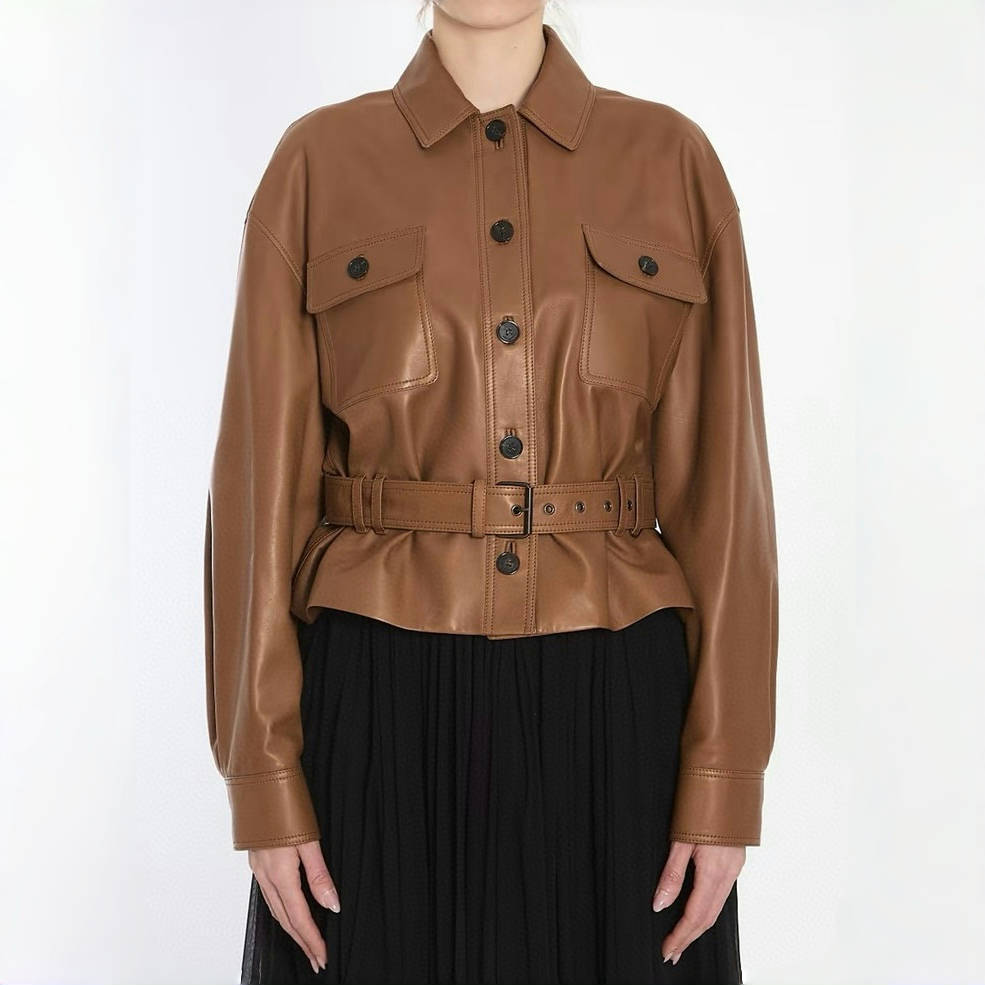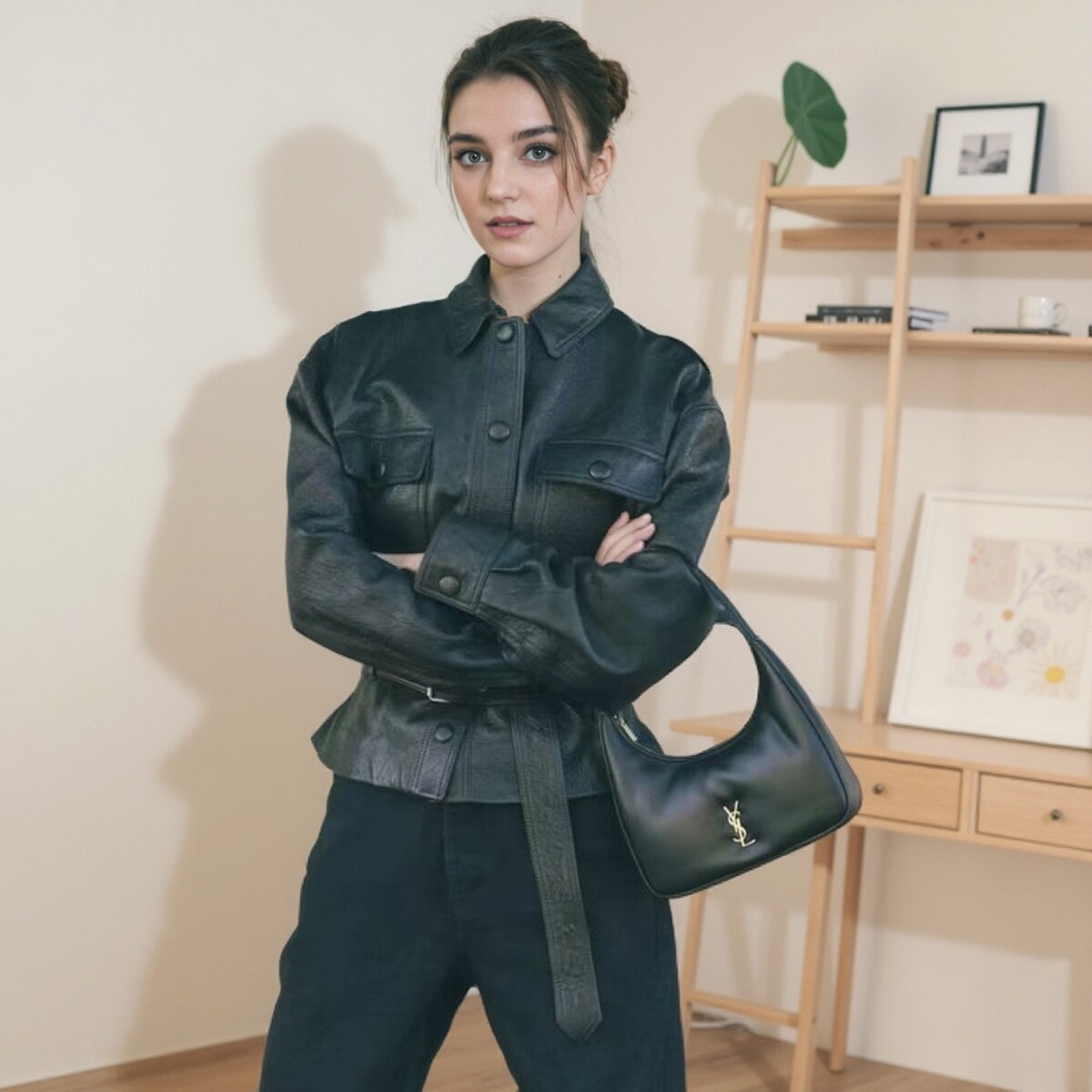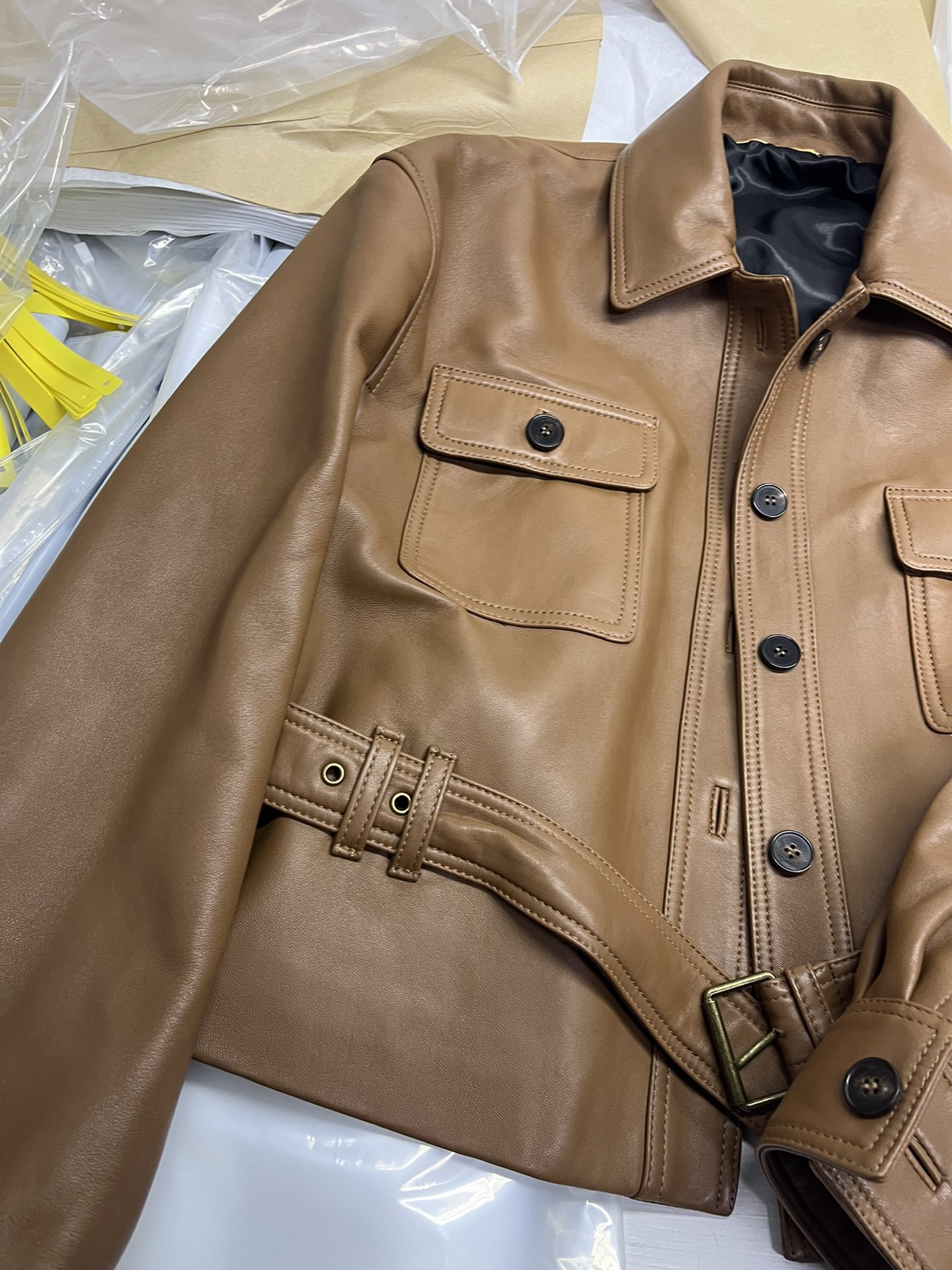 NIGO SAINT LAURENT Women's Fashion Luxury Temperament Leather Jacket Lace-up Short Jacket Lapel Long Sleeve Belt Slim Solid Colour Leather Jacket Ngvp #nigo1277