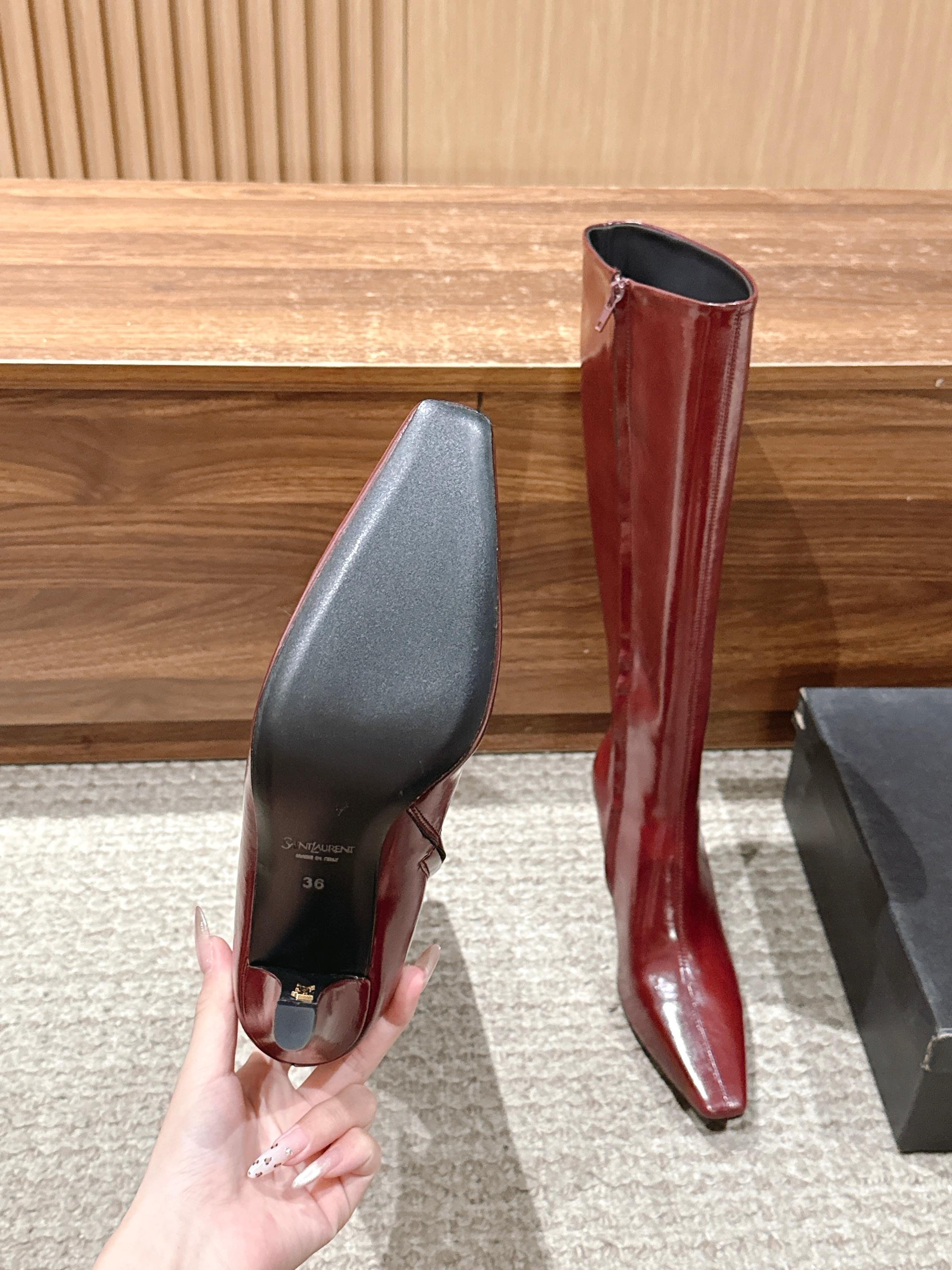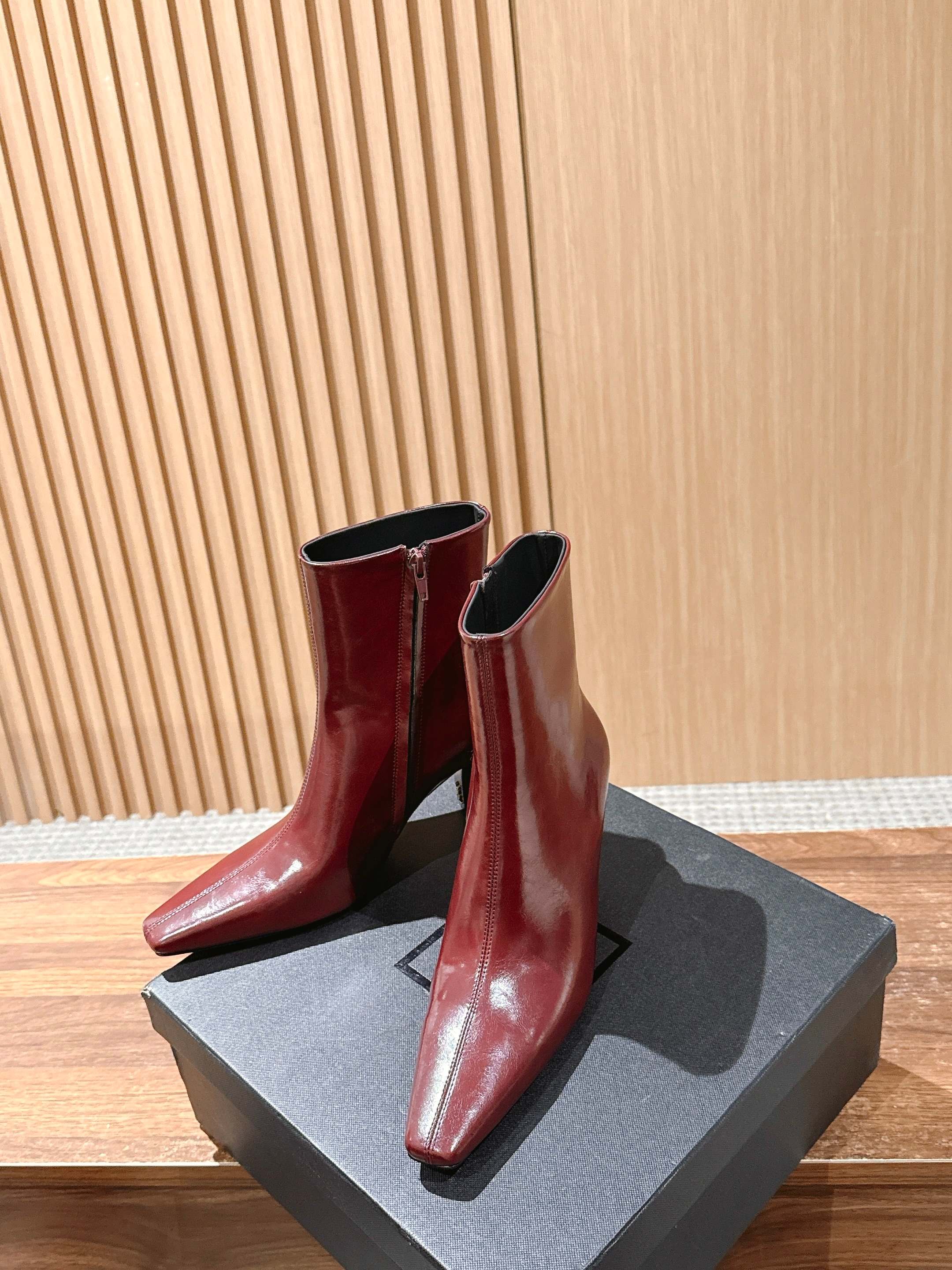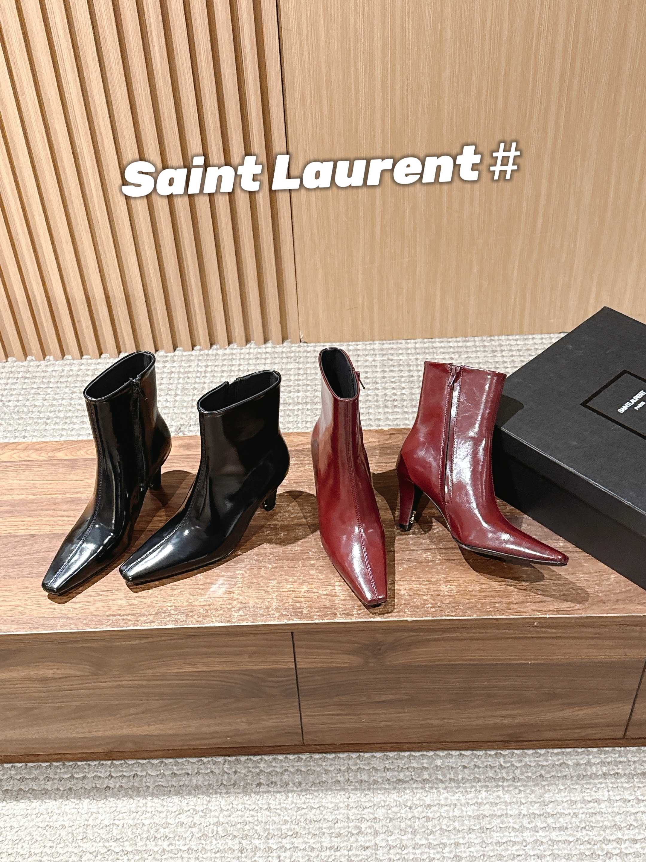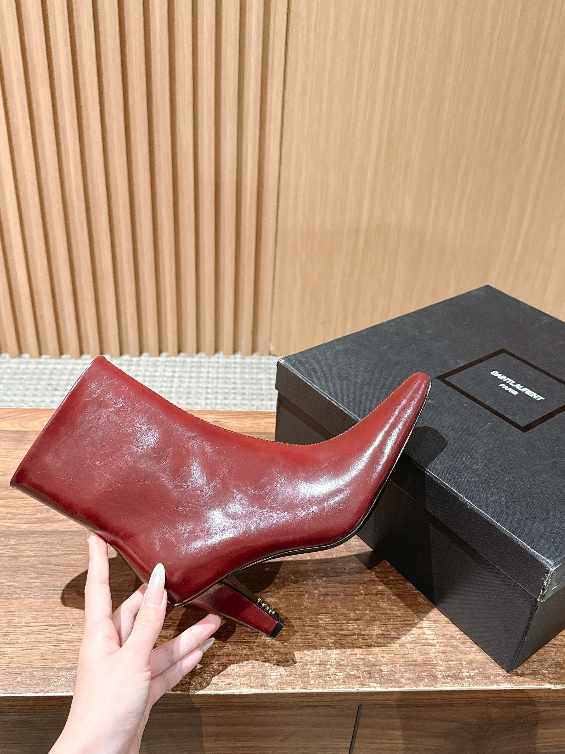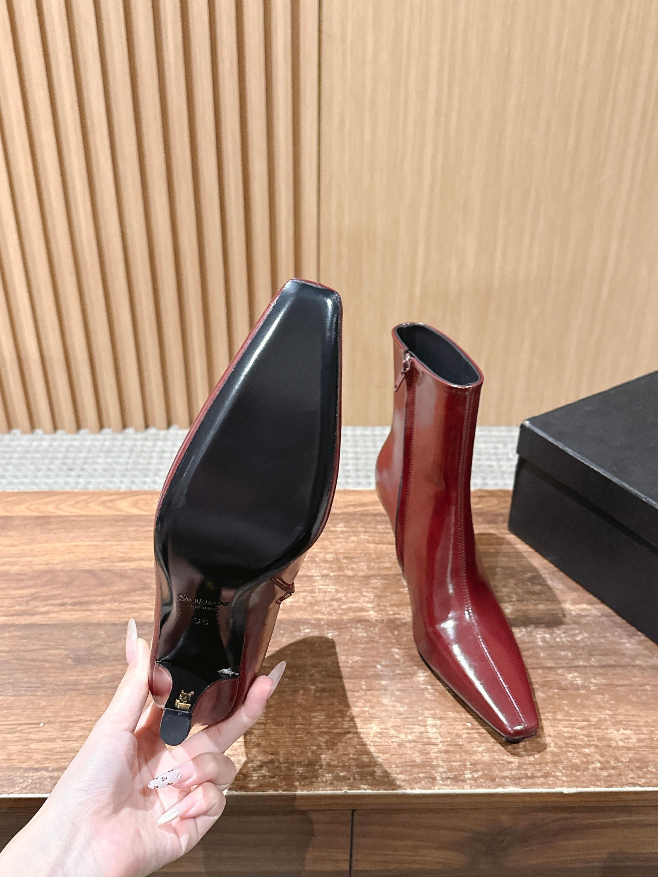 NIGO SAINT LAURENT Women's Pointed Cat Heel Long Short Red Black Boots Fashion Temperament Elegant Sexy Zipper Short Boots Shoes Ngvp #nigo2185