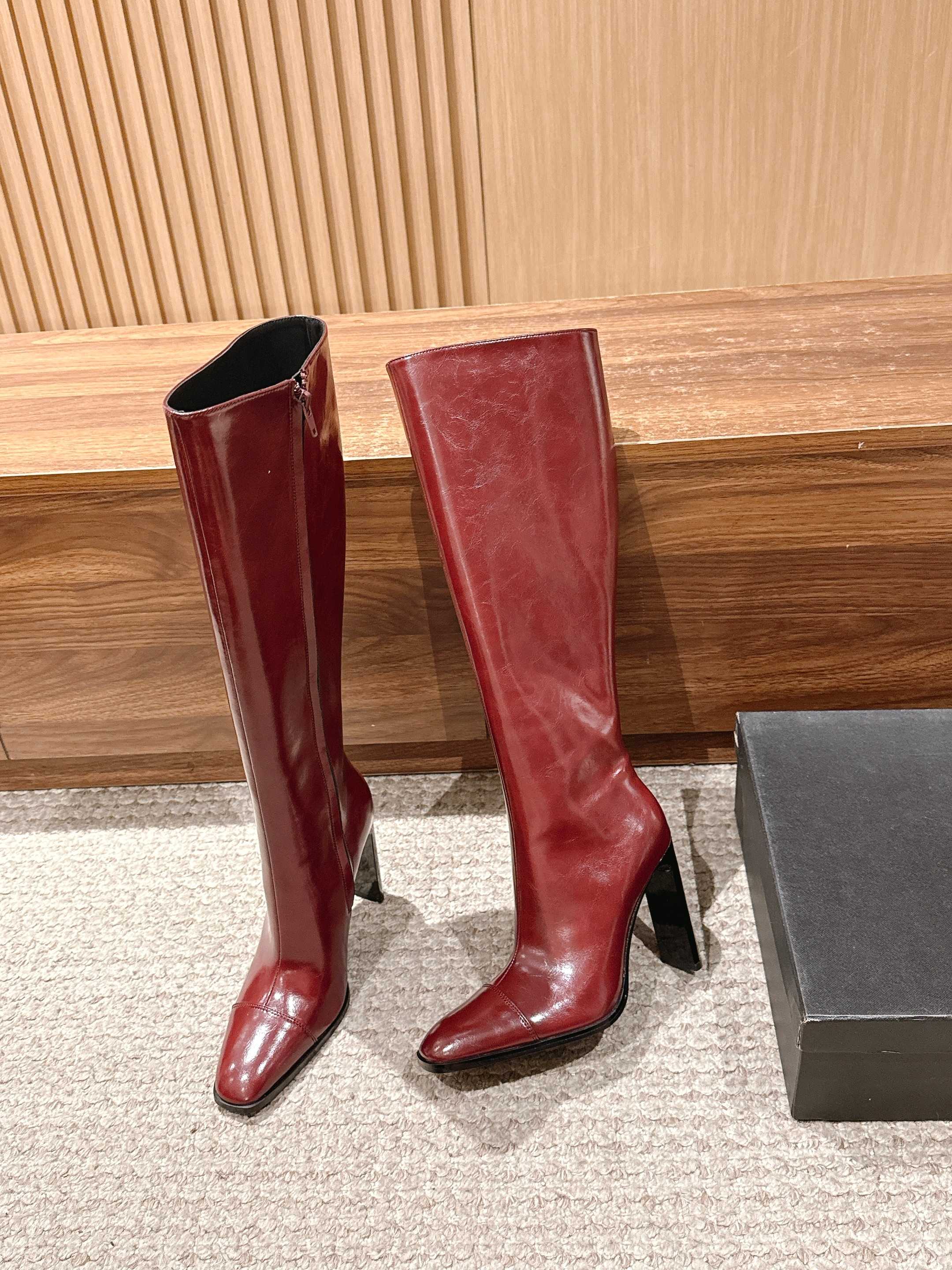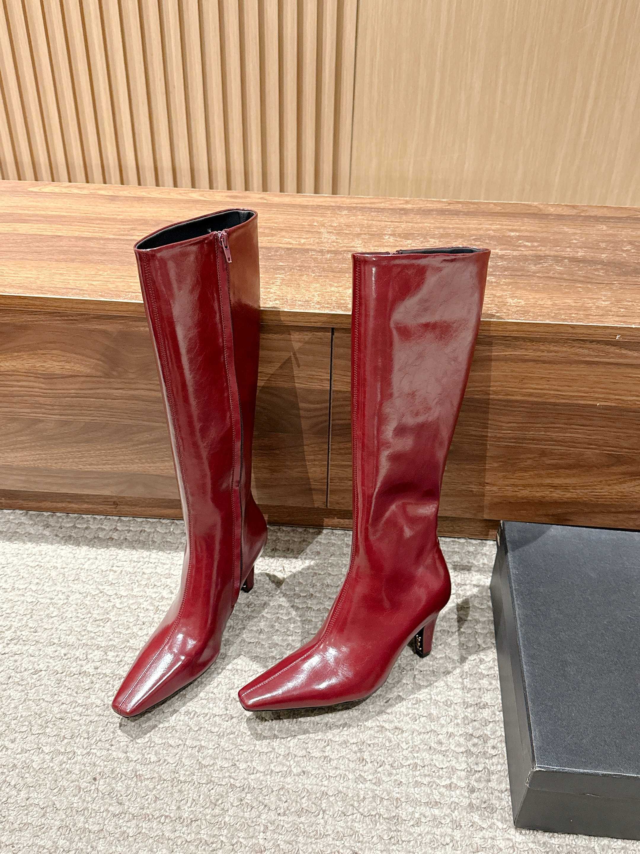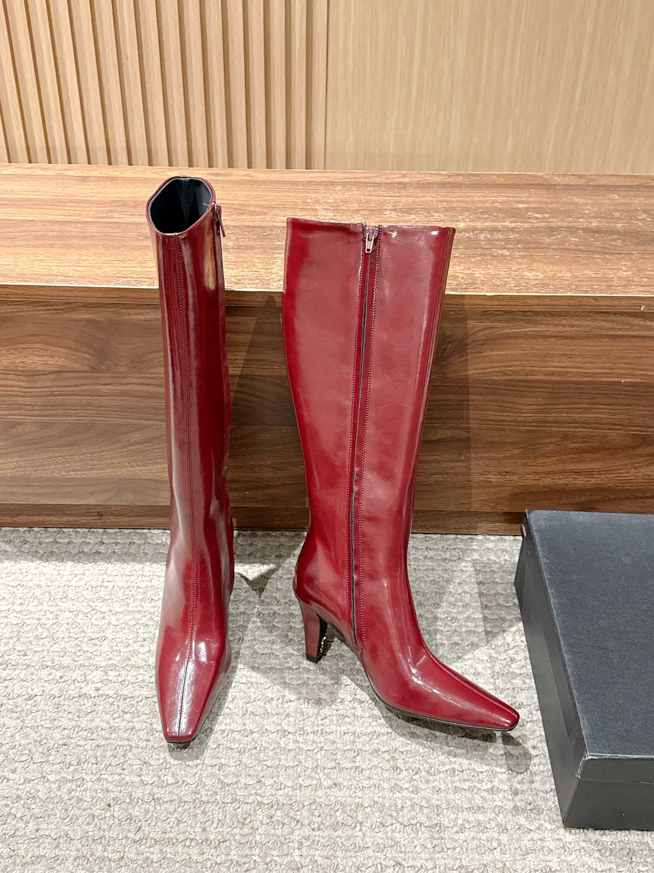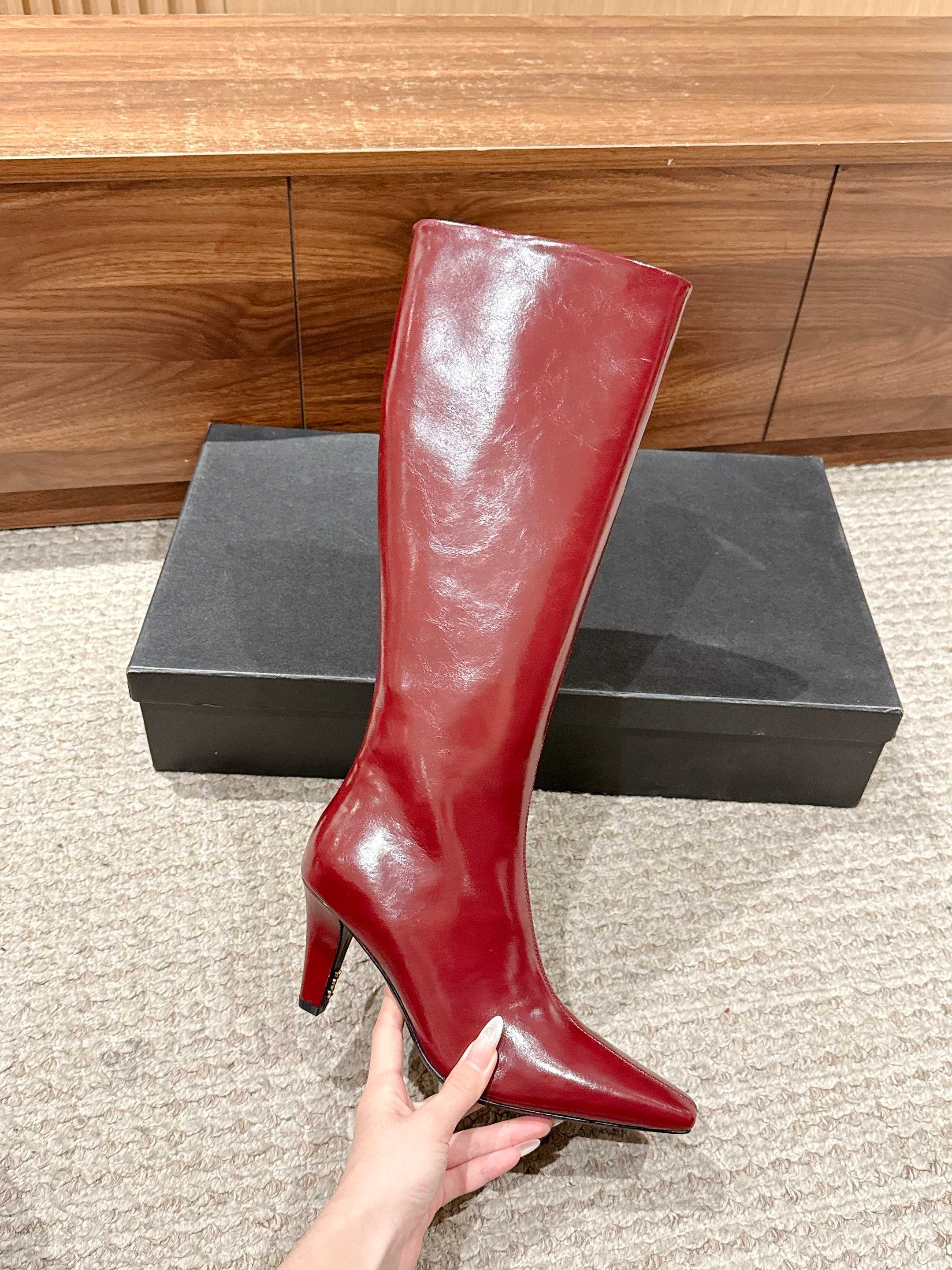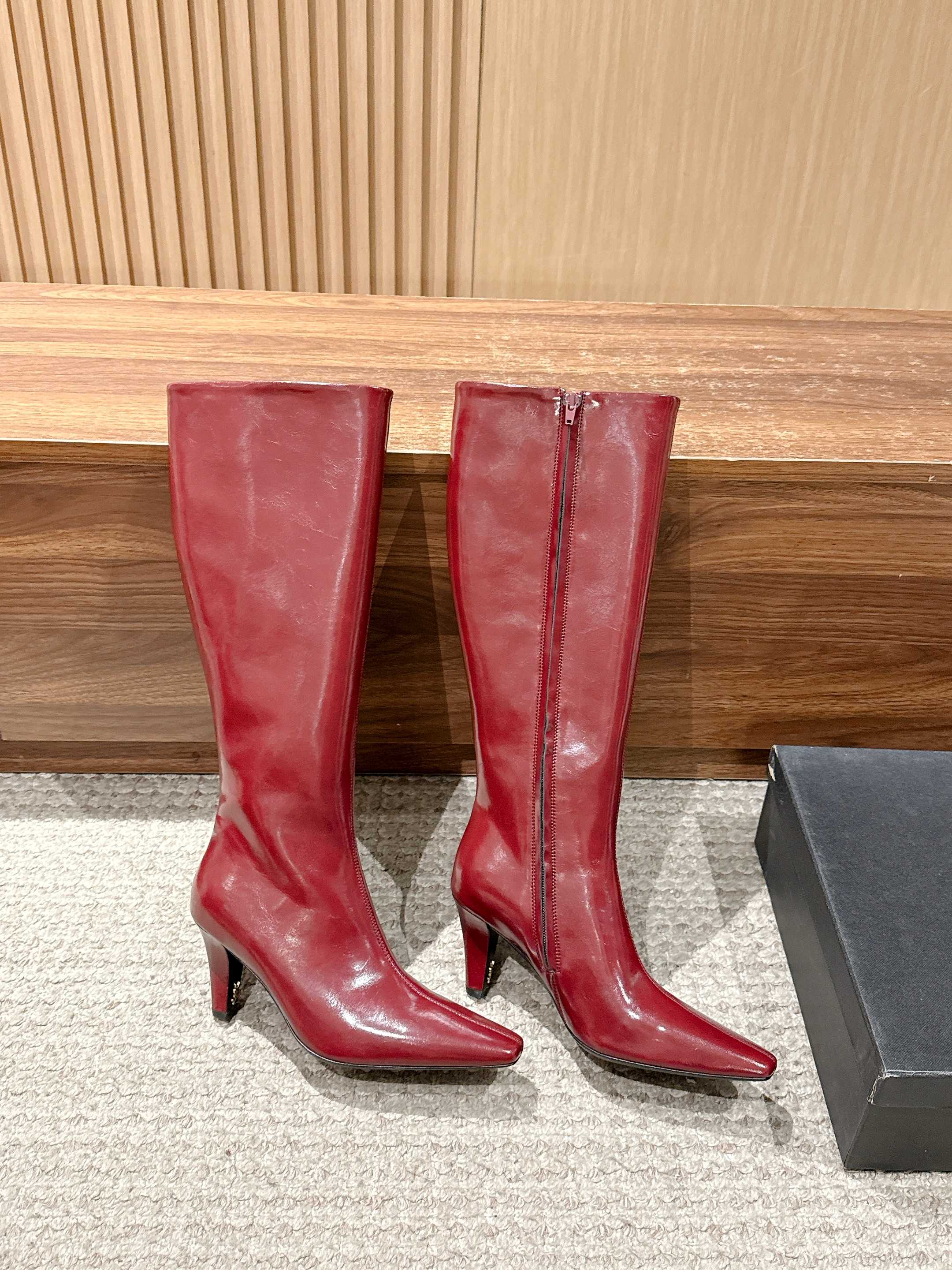 NIGO SAINT LAURENT Women's Pointed Cat Heel Long Short Red Black Boots Fashion Temperament Elegant Sexy Zipper Short Boots Shoes Ngvp #nigo2185