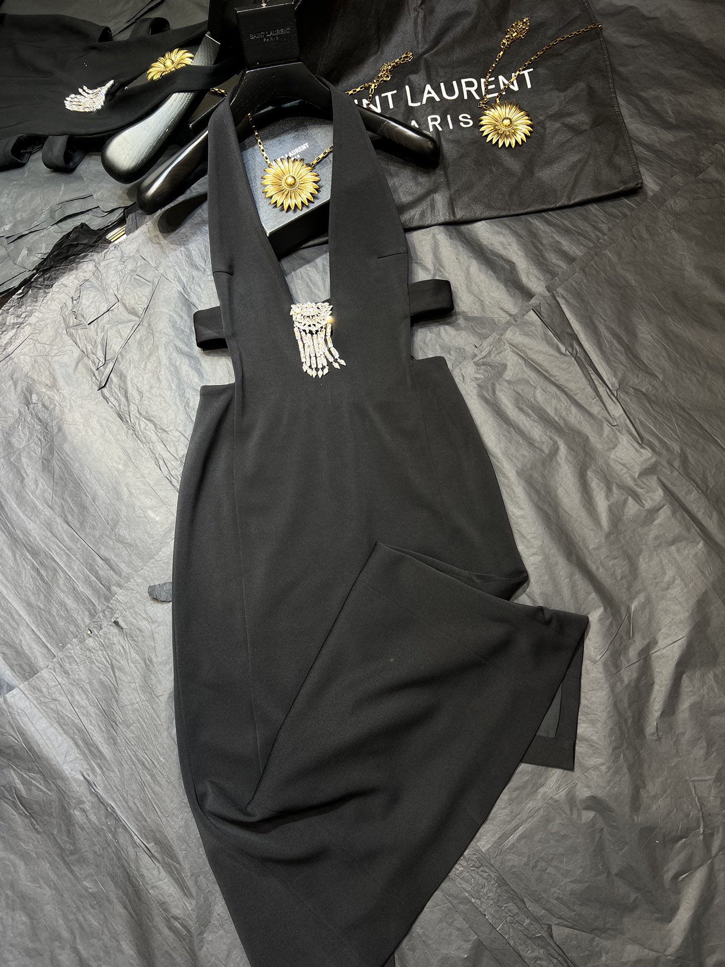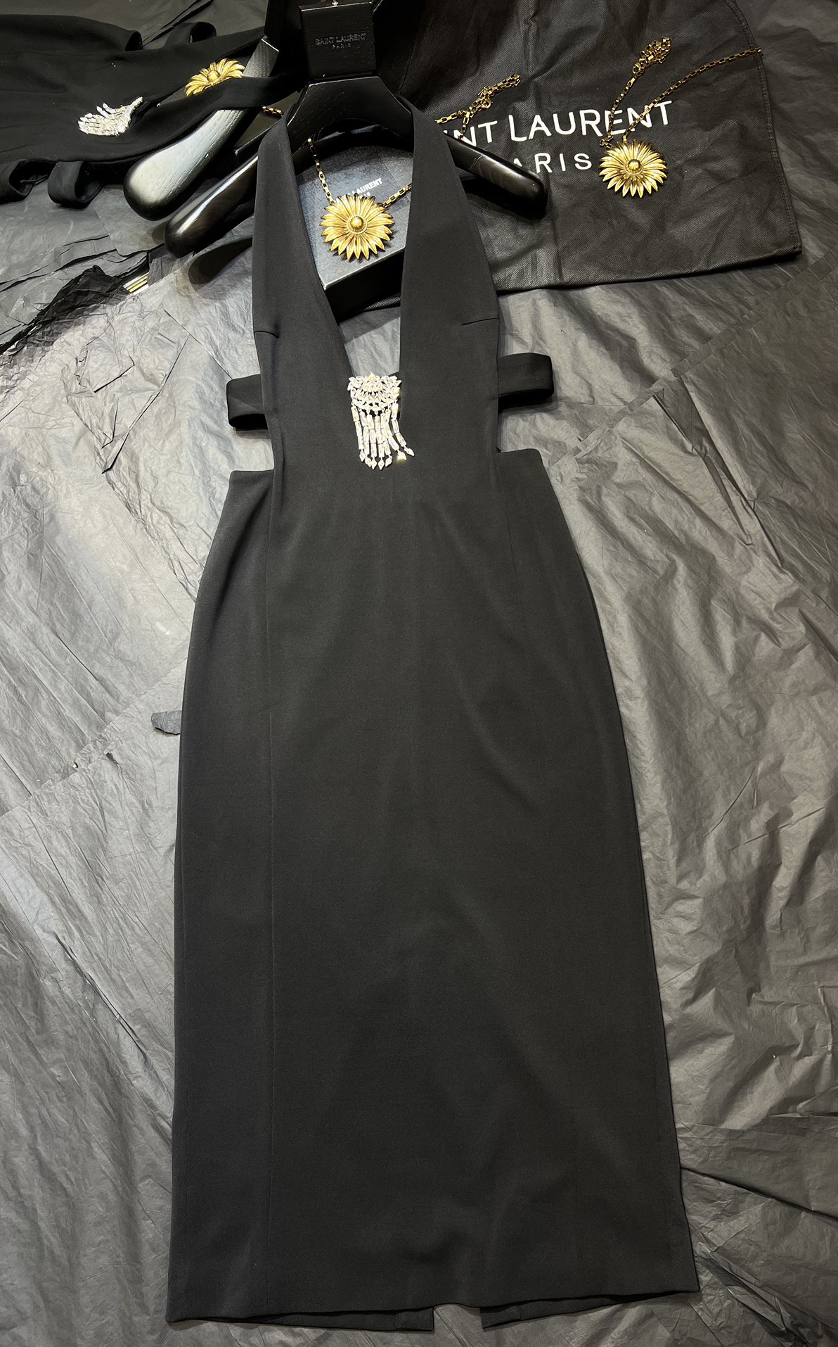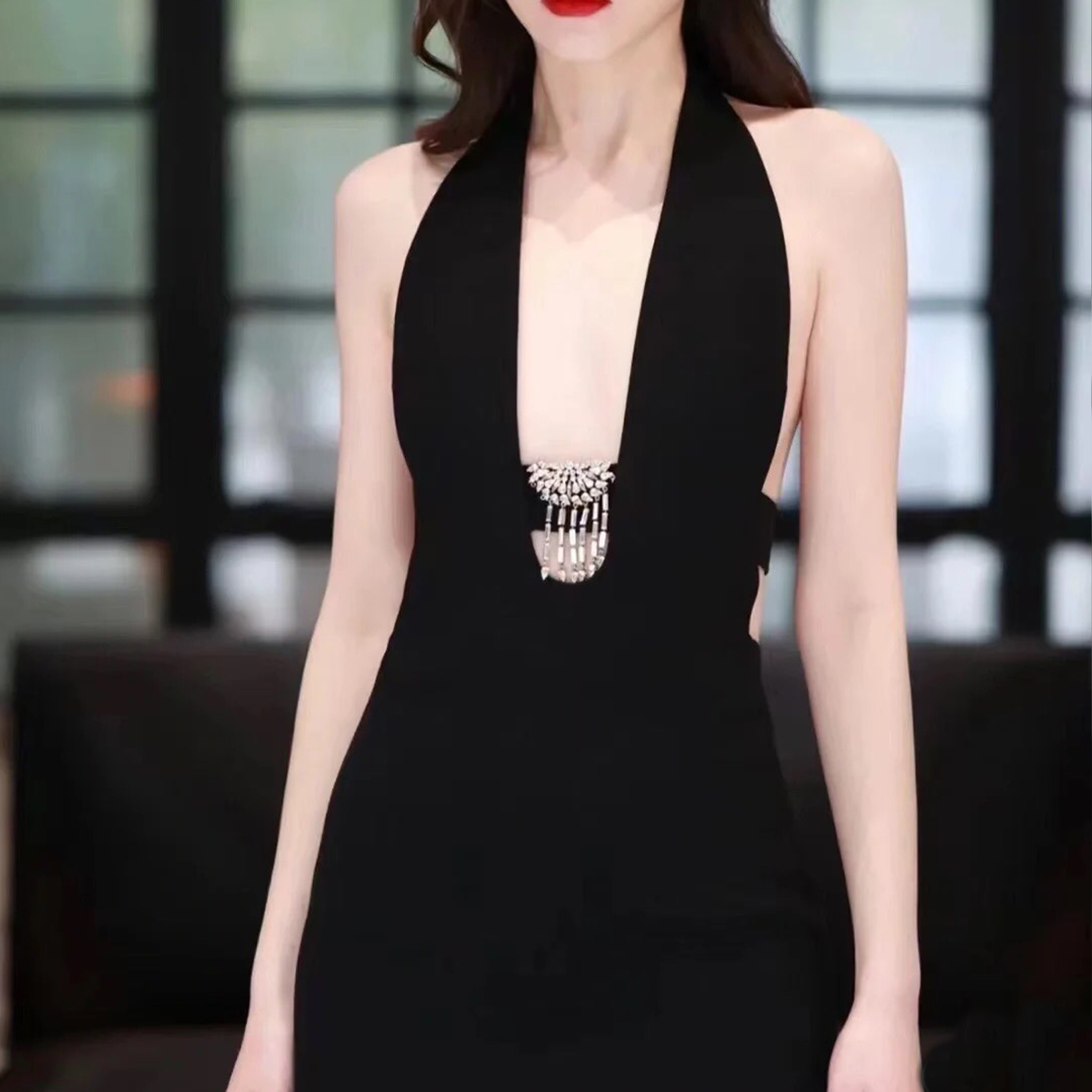 NIGO Saint Laurent Women's Spring And Summer Black V-neck Long Temperament Luxury Sexy Crystal Decoration Backless Dresses Ngvp #nigo8795