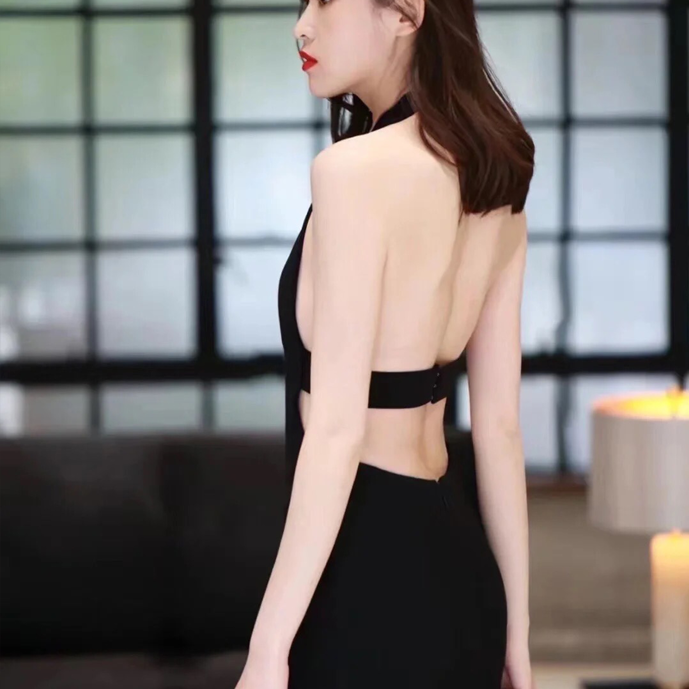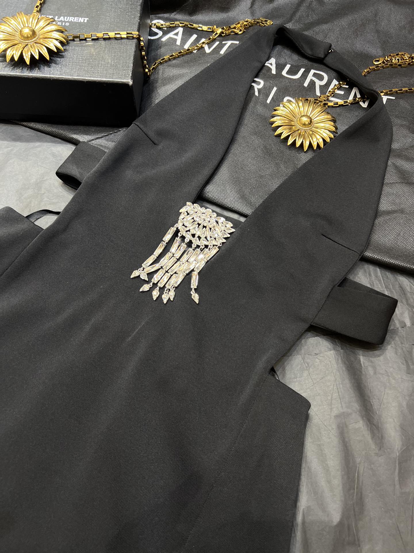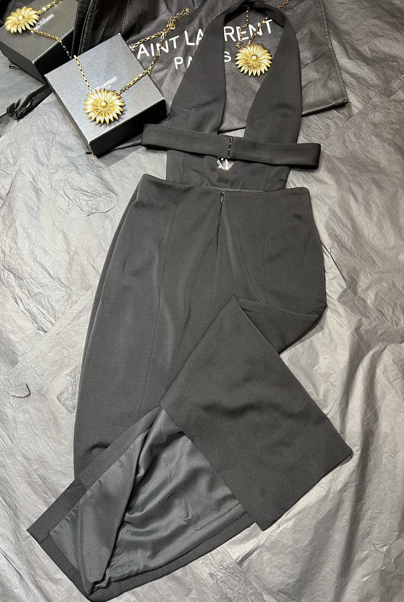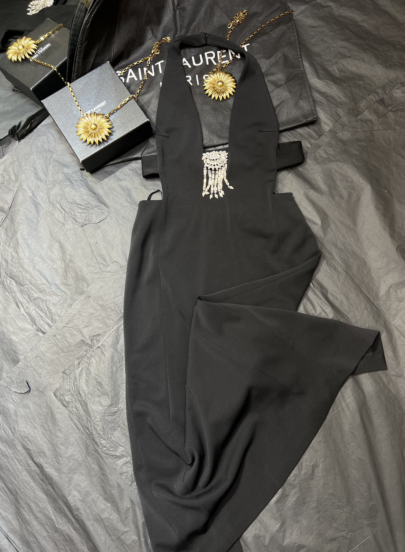 NIGO Saint Laurent Women's Spring And Summer Black V-neck Long Temperament Luxury Sexy Crystal Decoration Backless Dresses Ngvp #nigo8795