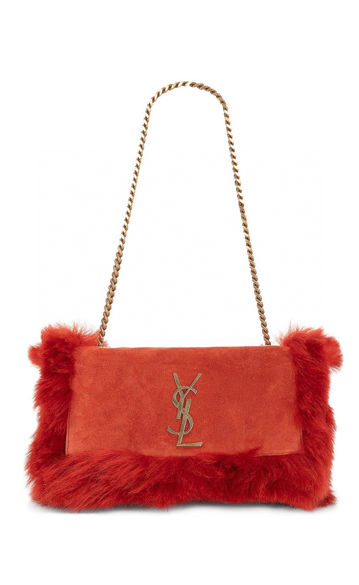 NIGO SAINT LAURENT Women's Fall And Winter Suede Rabbit Fur Patchwork Bag Funky Chain Bag #nigo998313