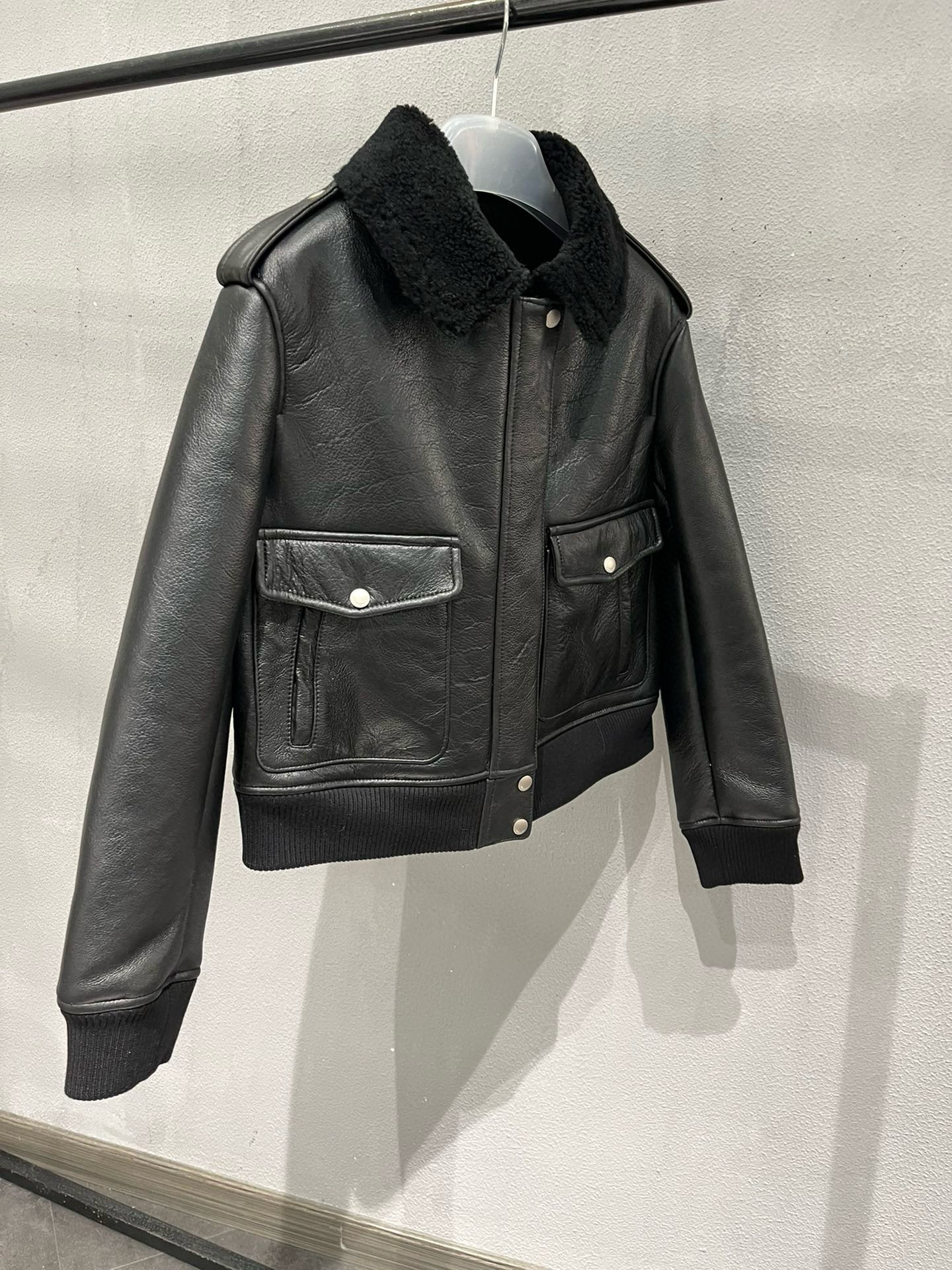 NIGO Saint Laurent Men's Winter Black Pilot Single Breasted Zipper Leather Jacket #nigo98459