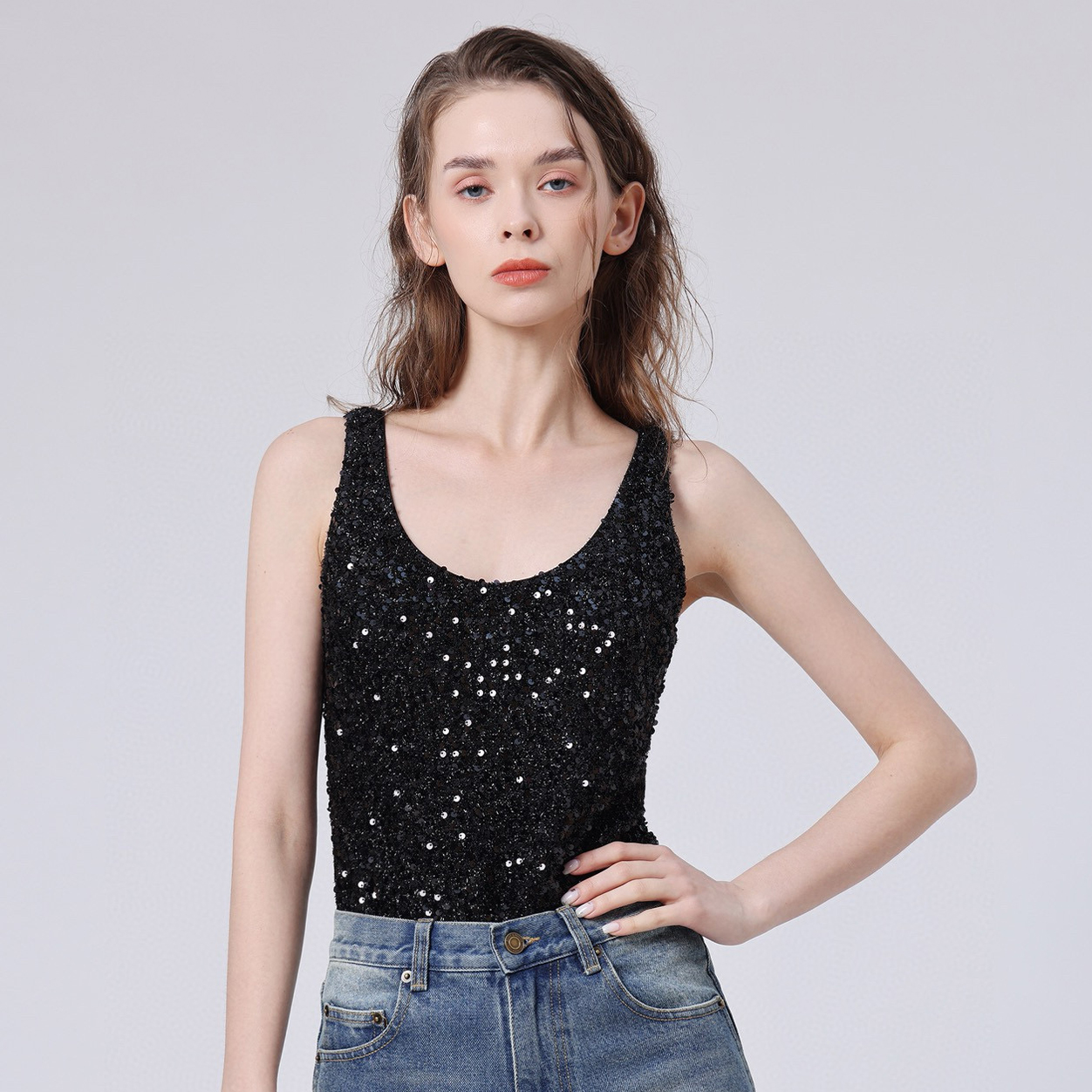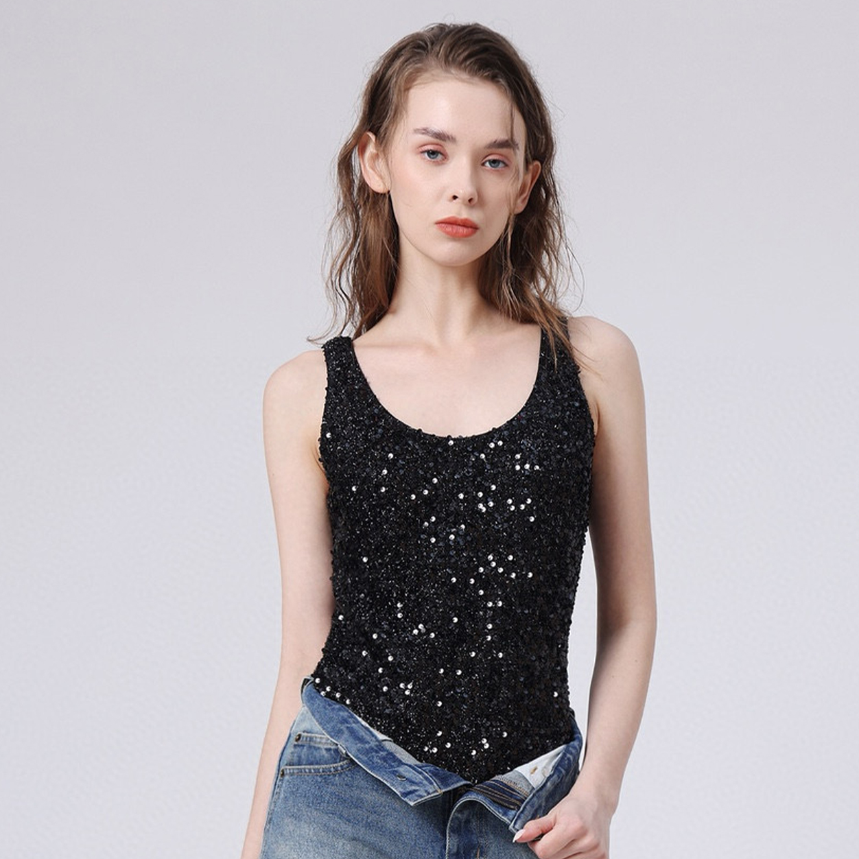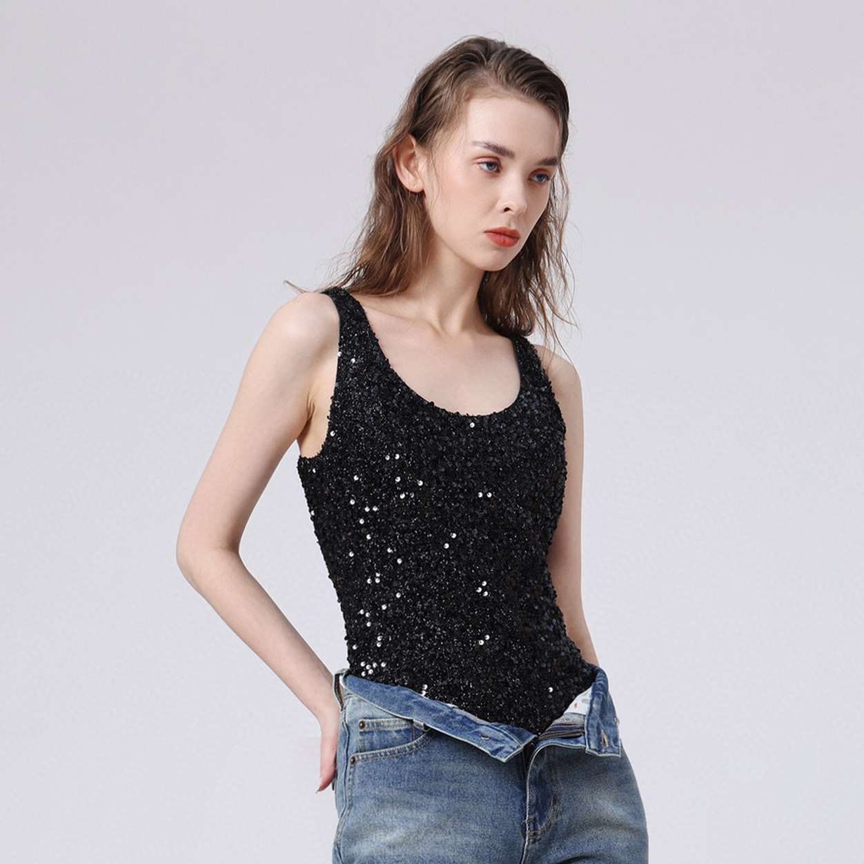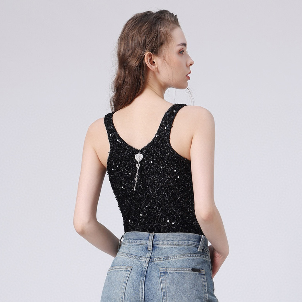 NIGO SAINT LAURENT Women's Fashion Sexy Solid Color Silk Velvet Sequins Slim Sleeveless One-piece Top Ngvp #nigo8252