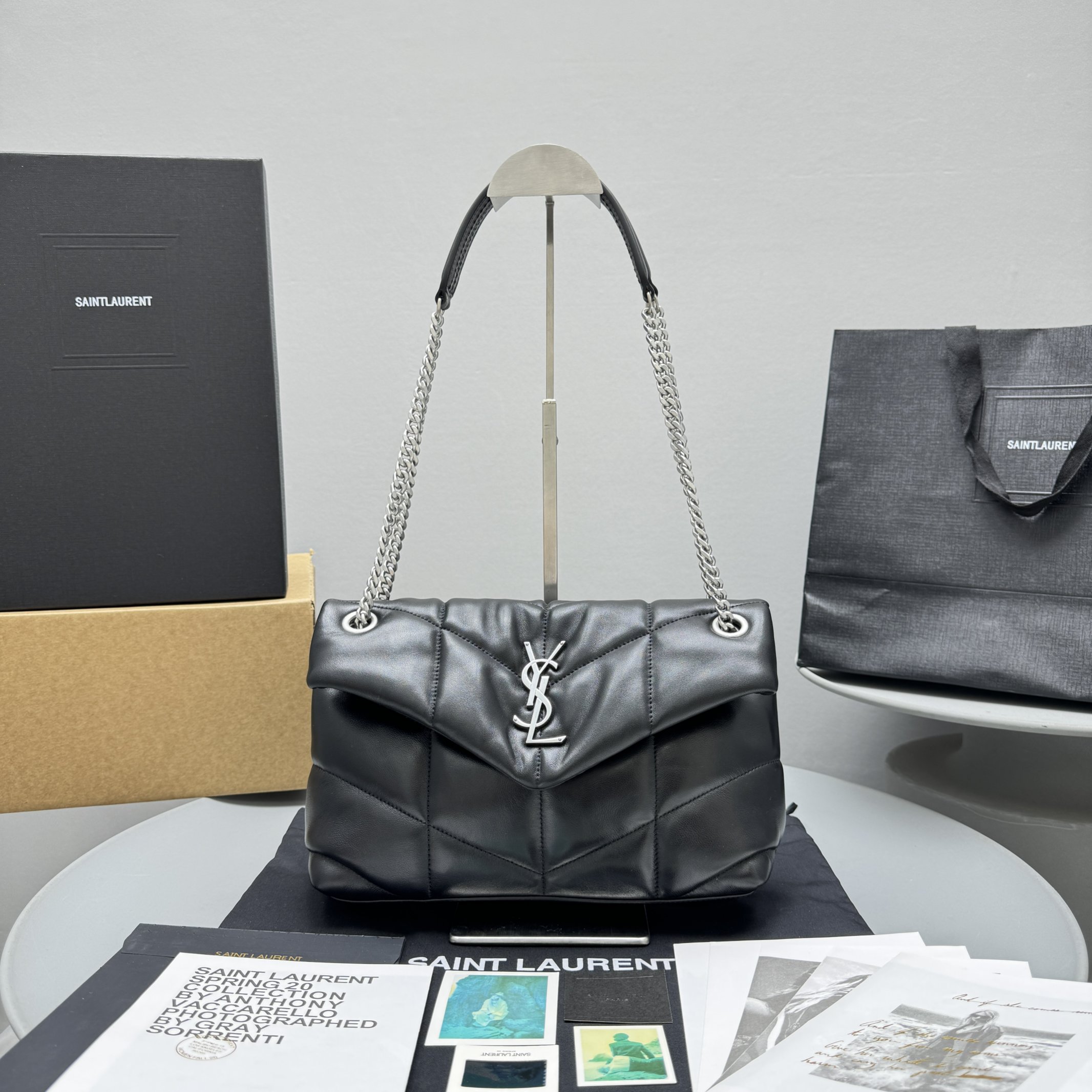 NIGO SAINT LAURENT Women's Black PUFFER Quilted Lambskin Leather Tote Crossbody Bag Bags #nigo99516