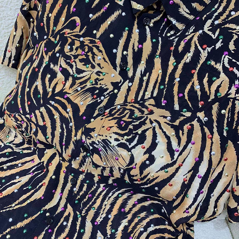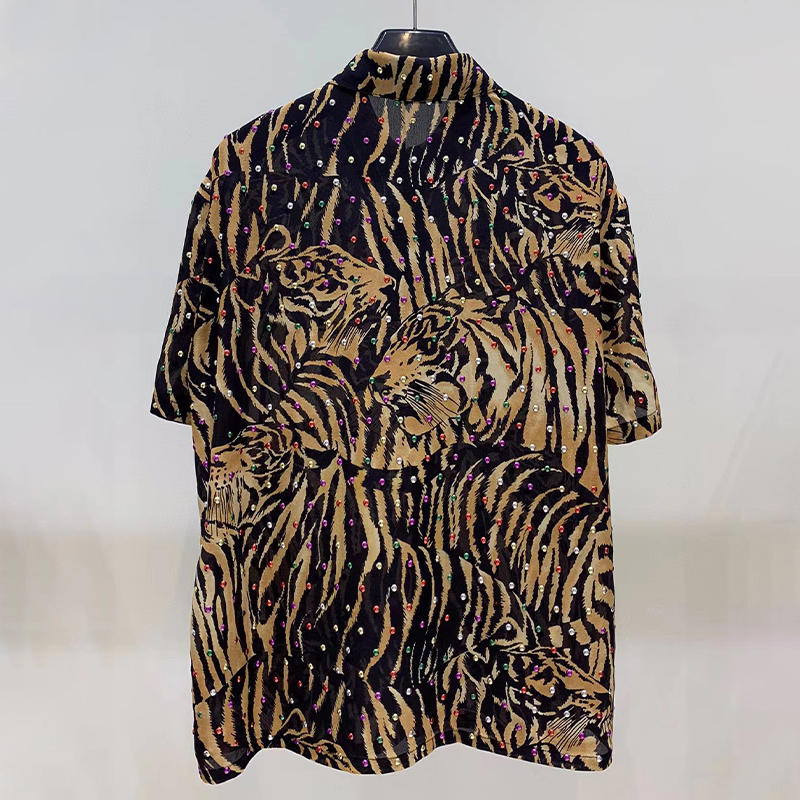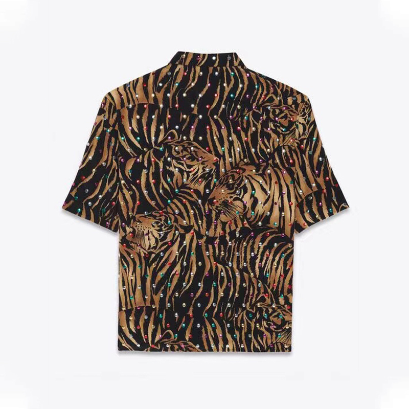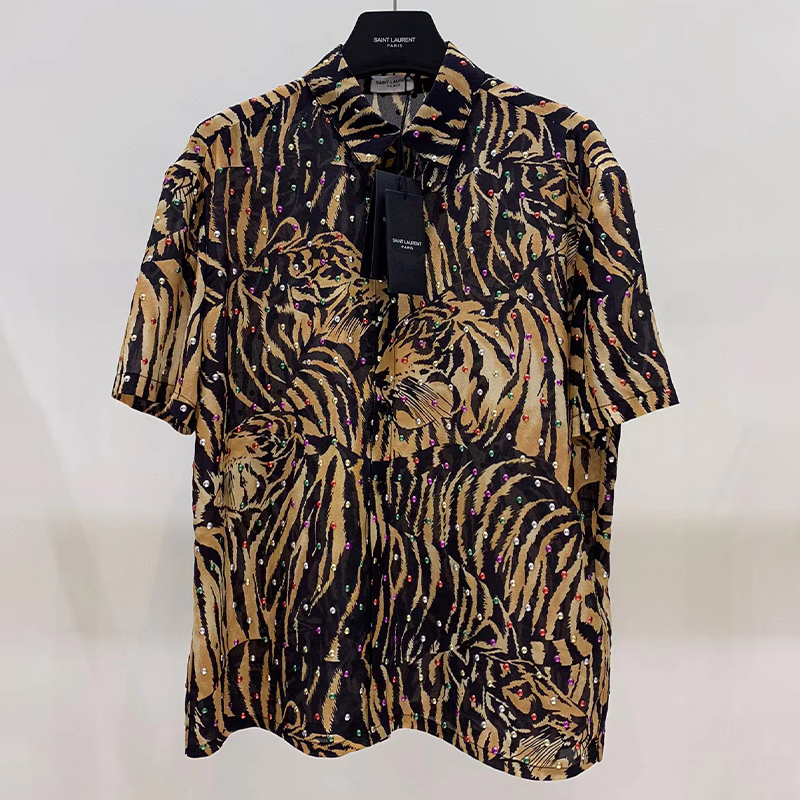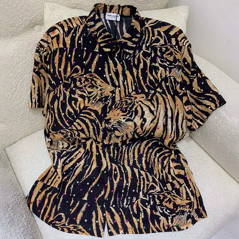 NIGO Saint Laurent Men's Spring, Summer And Fall Lapel Fitted Polka Dot Tiger Print Silk Short Sleeve Shirt Ngvp #nigo5159
