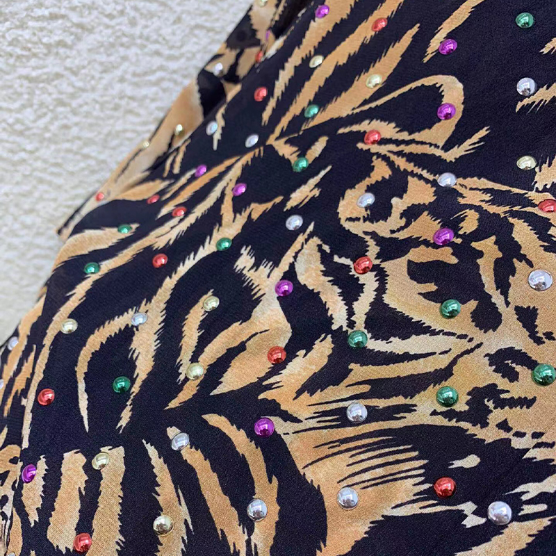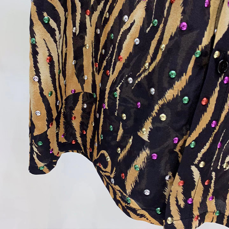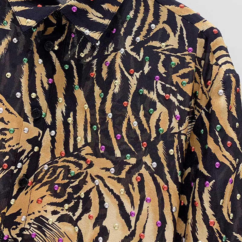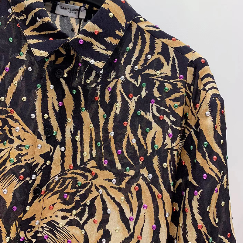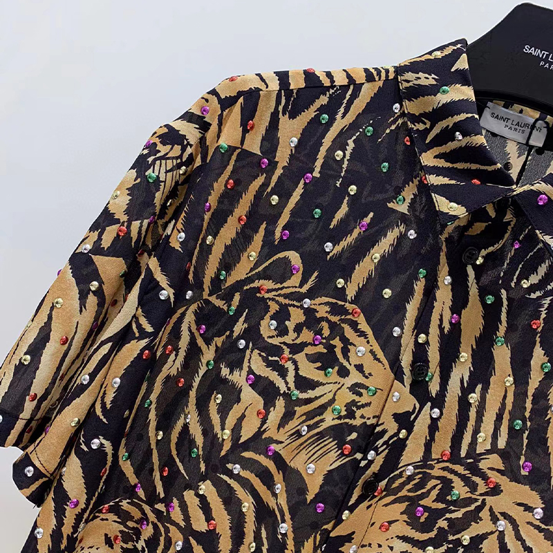 NIGO Saint Laurent Men's Spring, Summer And Fall Lapel Fitted Polka Dot Tiger Print Silk Short Sleeve Shirt Ngvp #nigo5159