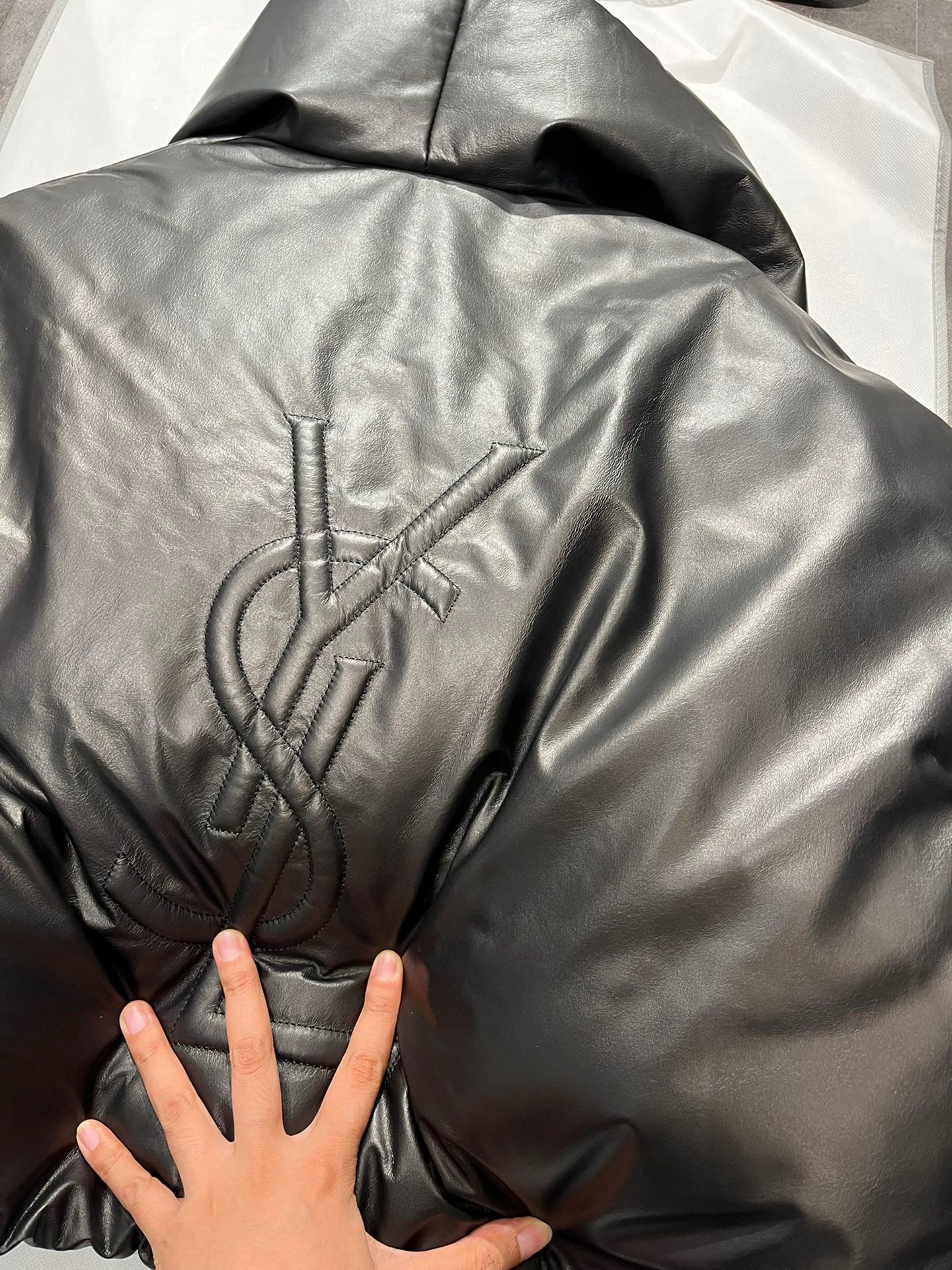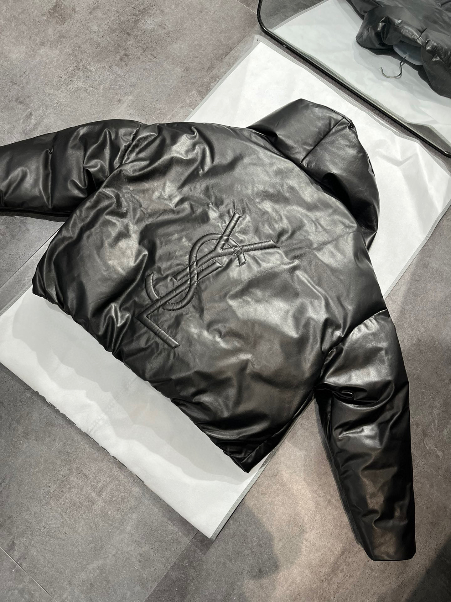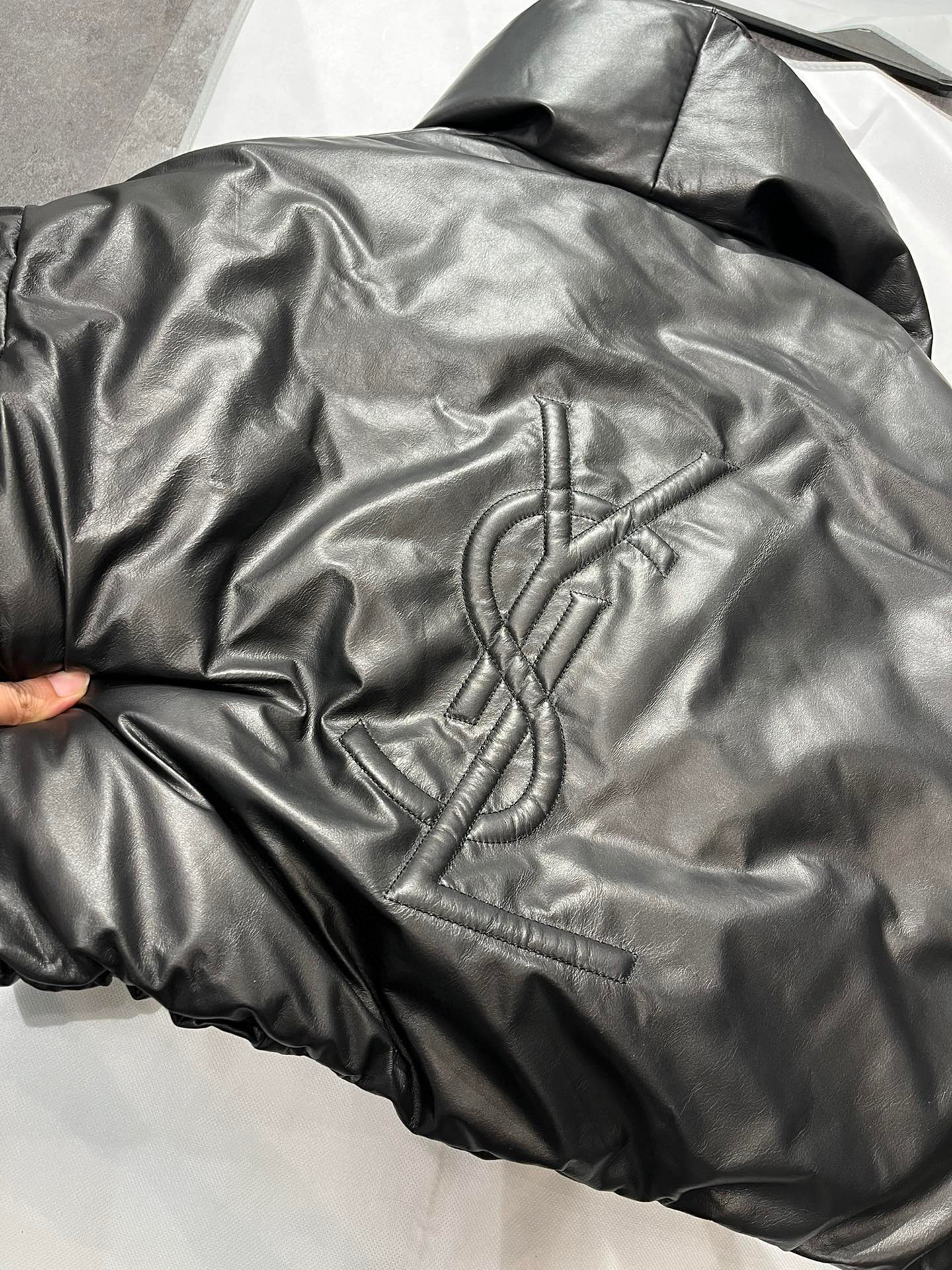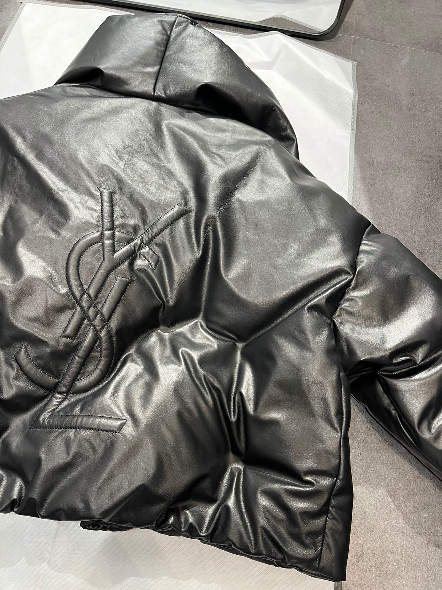 Saint Laurent Pure Black Leather Puffer Down Jacket #nigo96442