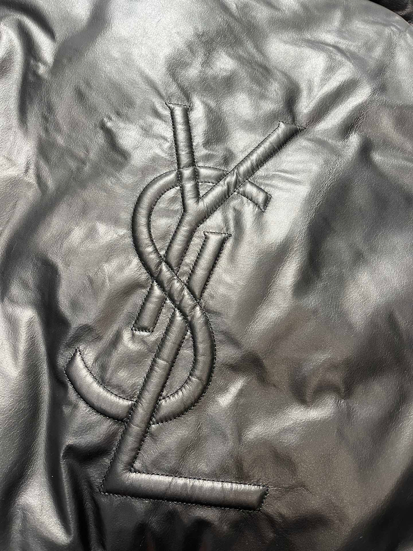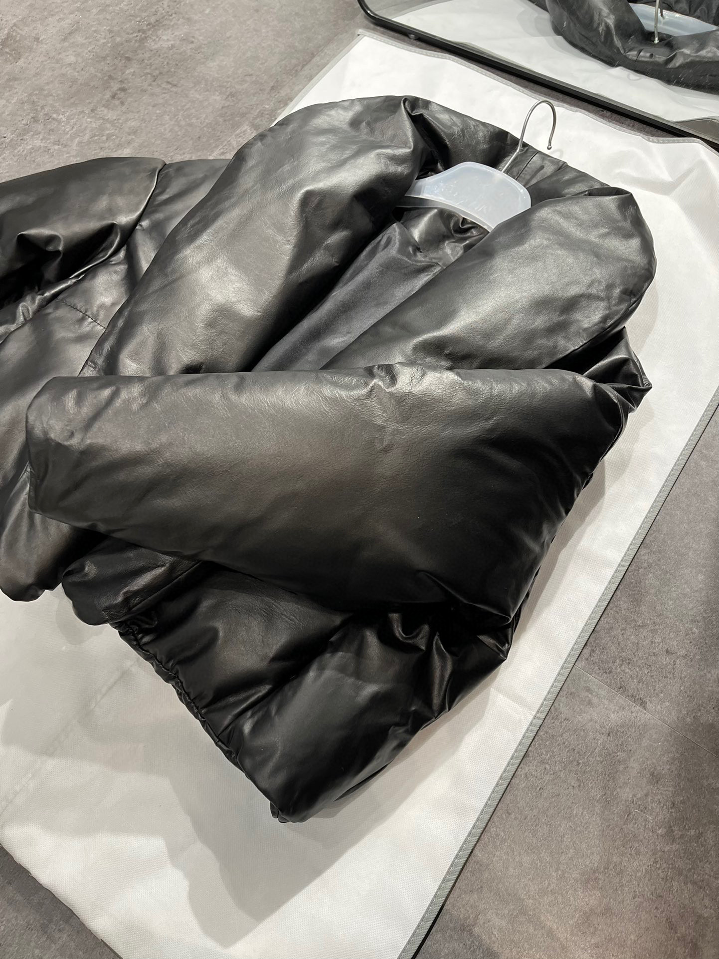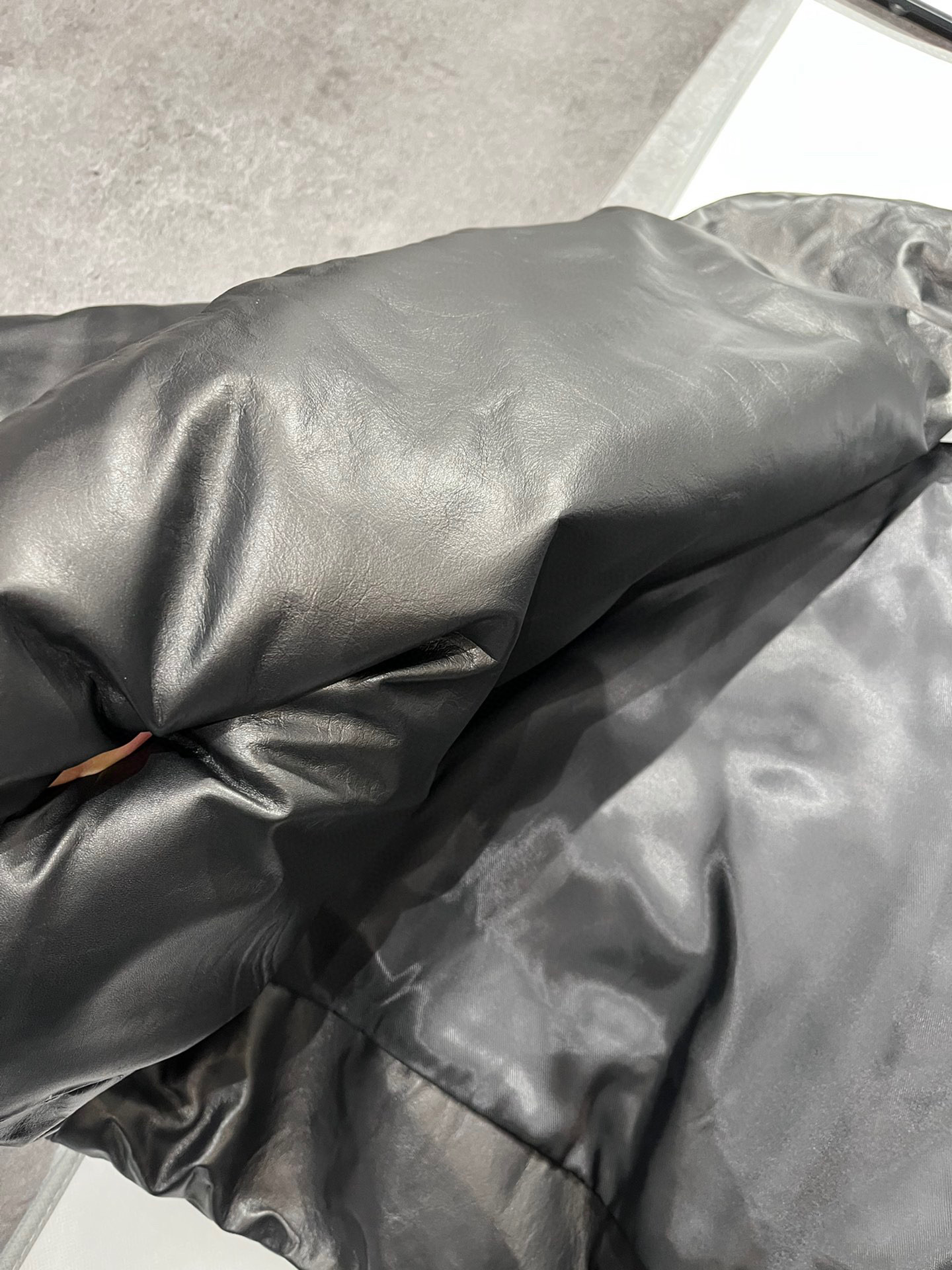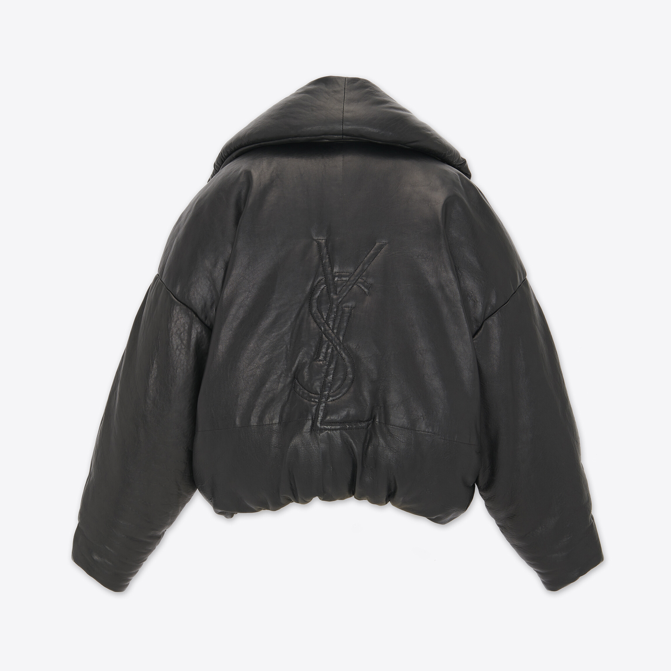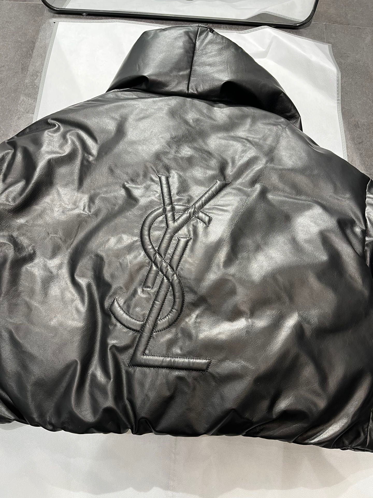 Saint Laurent Pure Black Leather Puffer Down Jacket #nigo96442