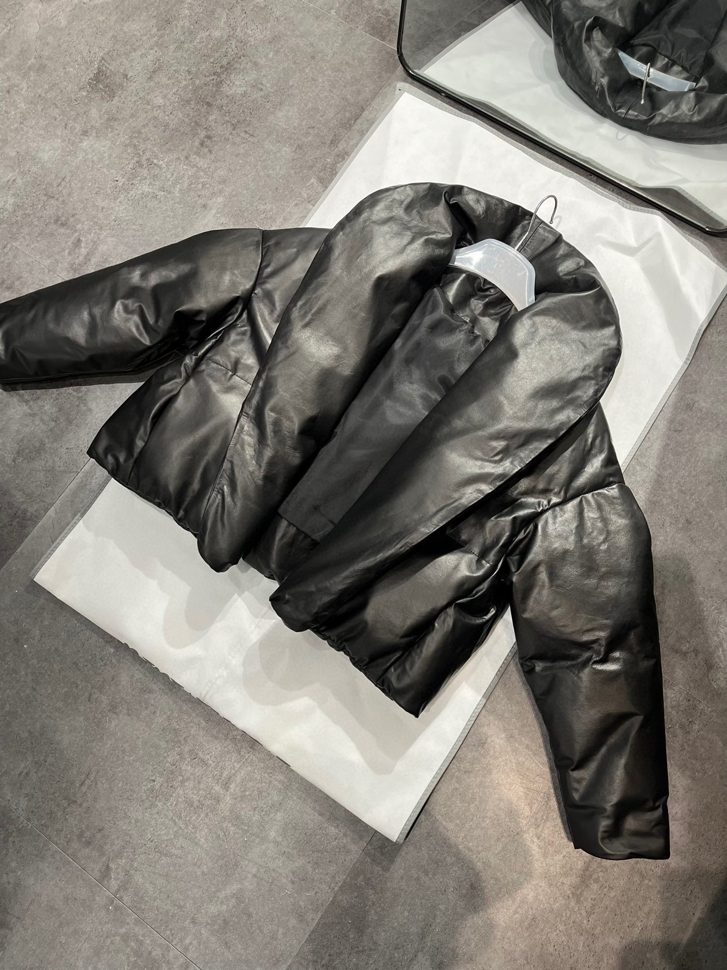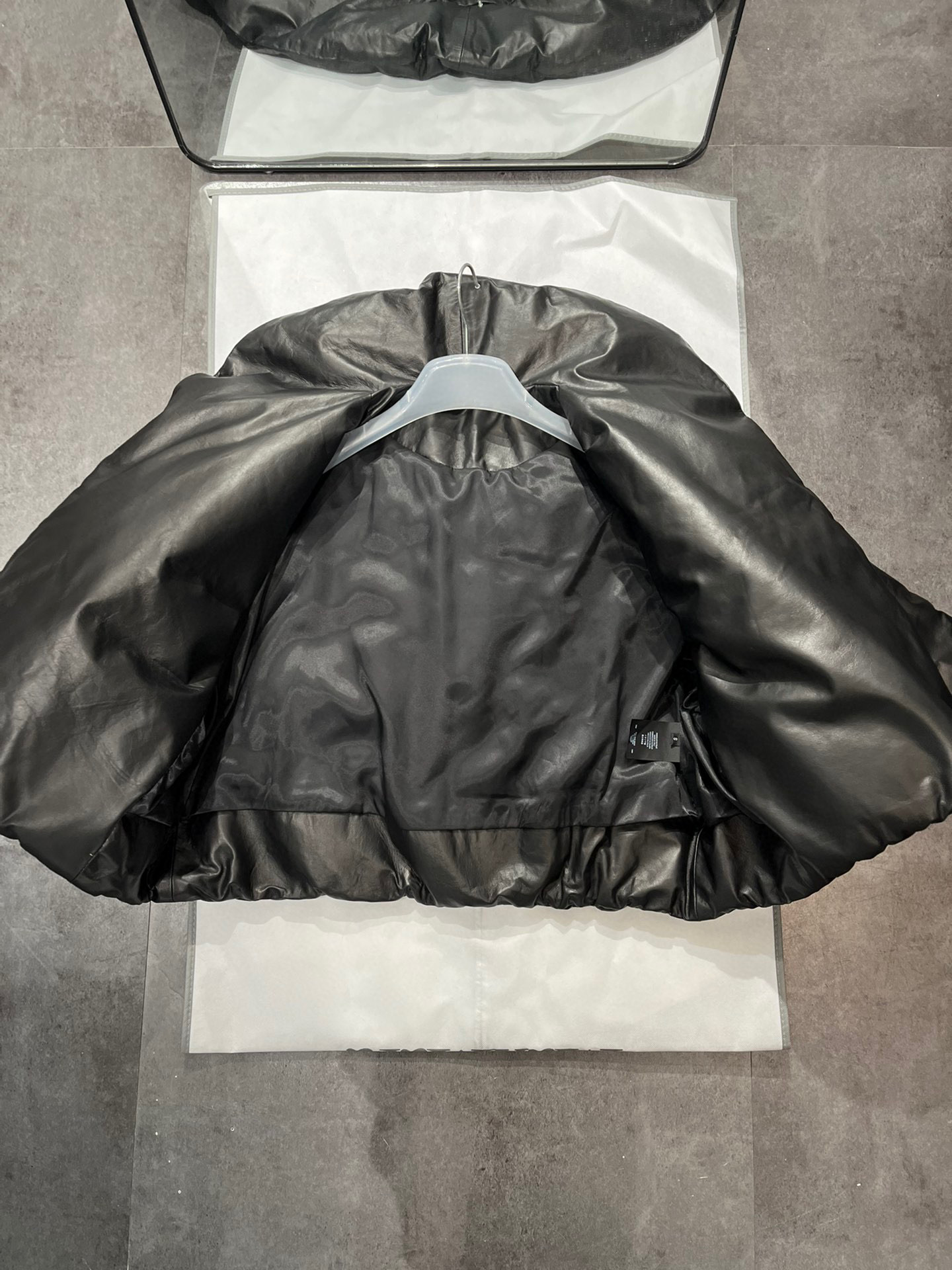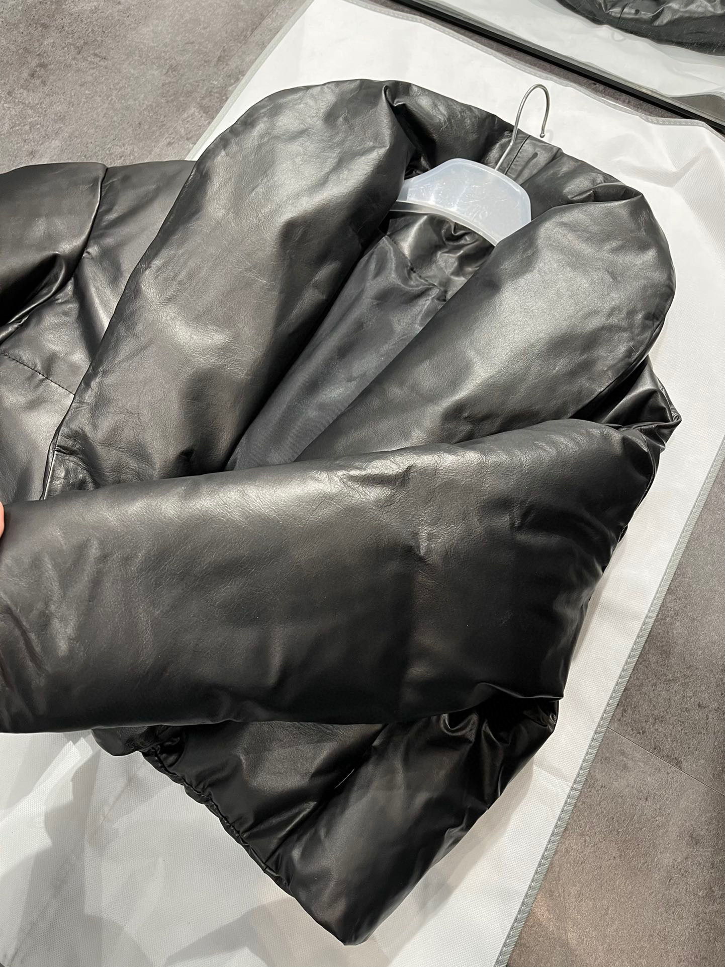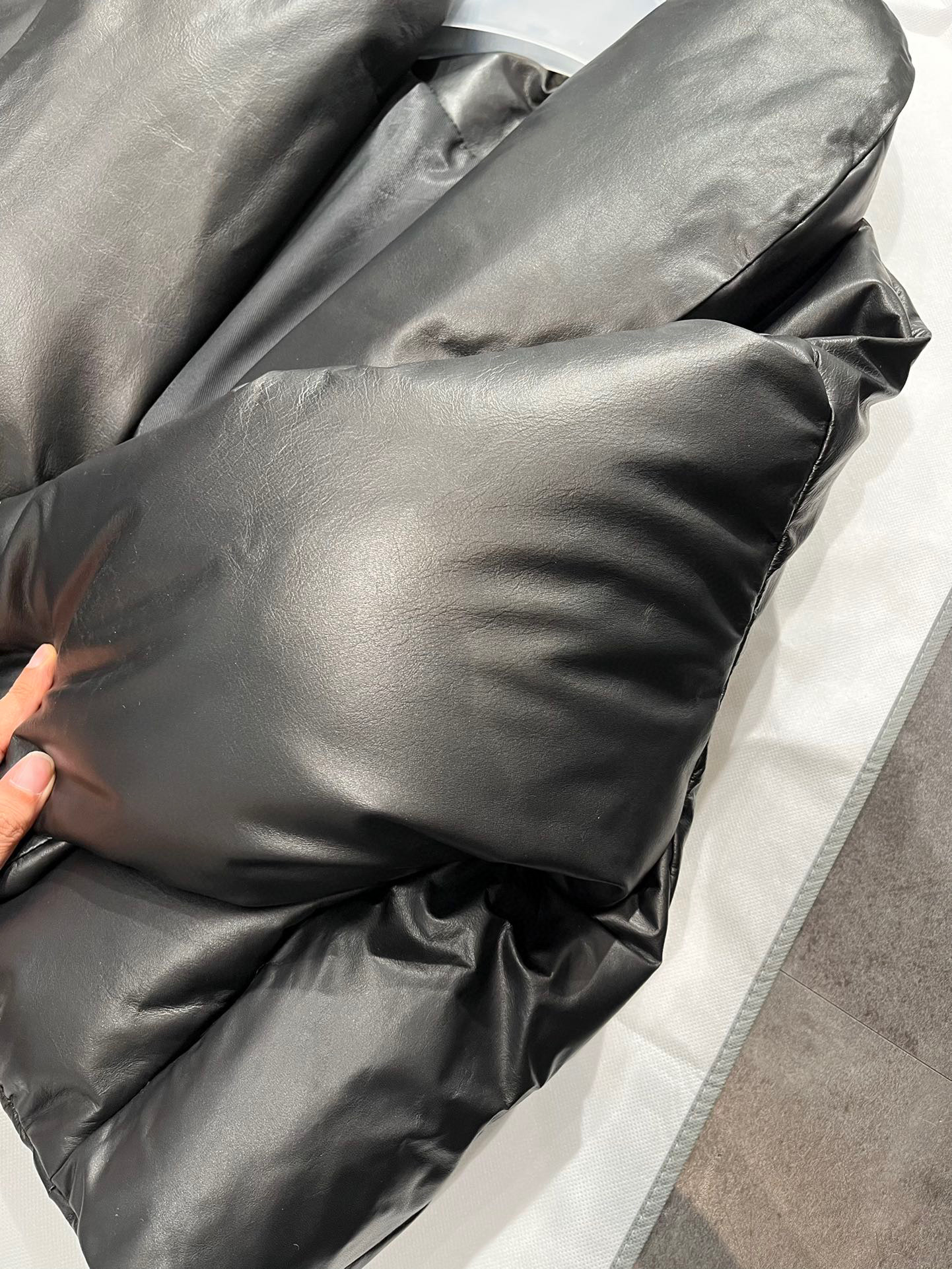 Saint Laurent Pure Black Leather Puffer Down Jacket #nigo96442