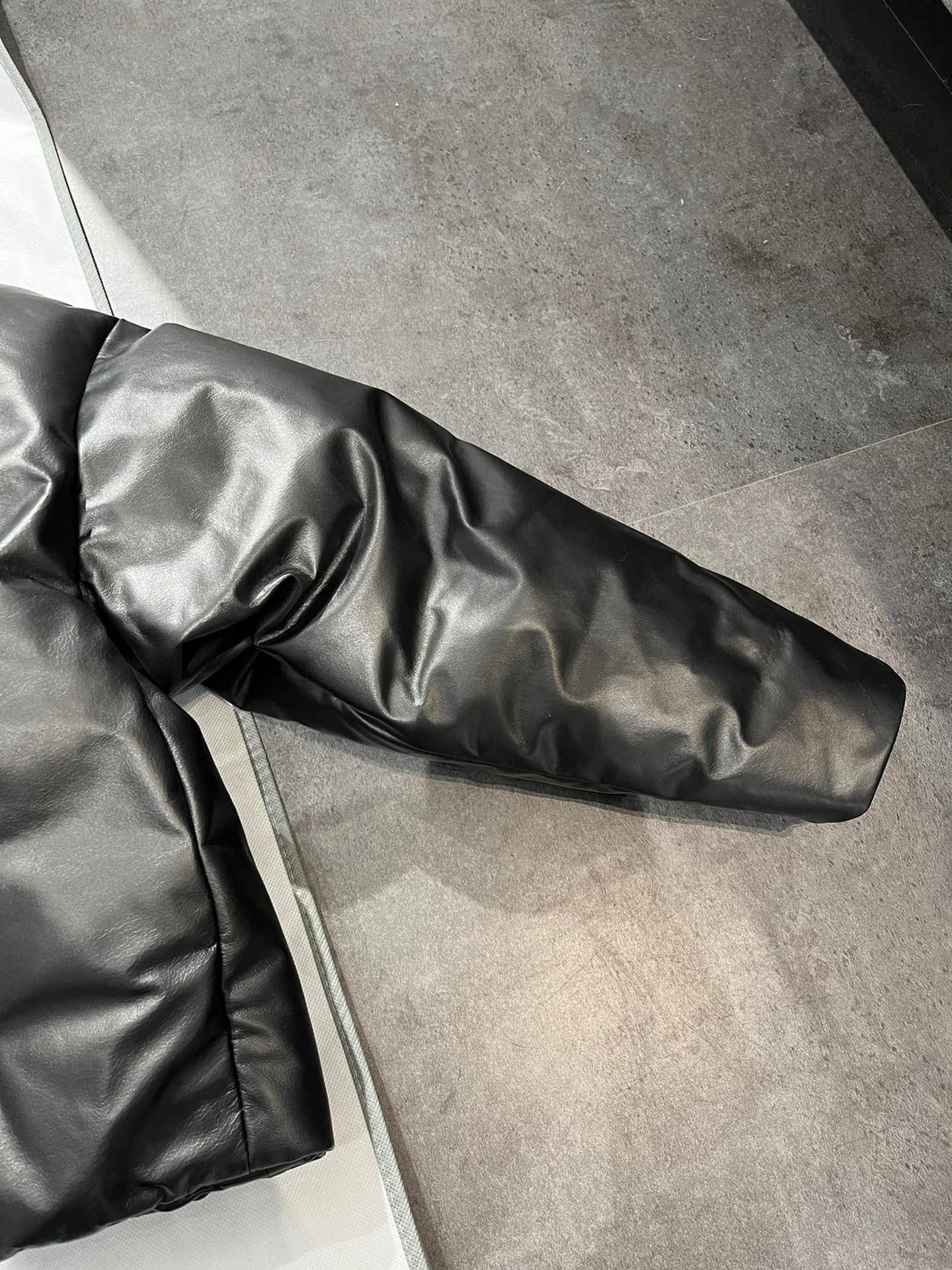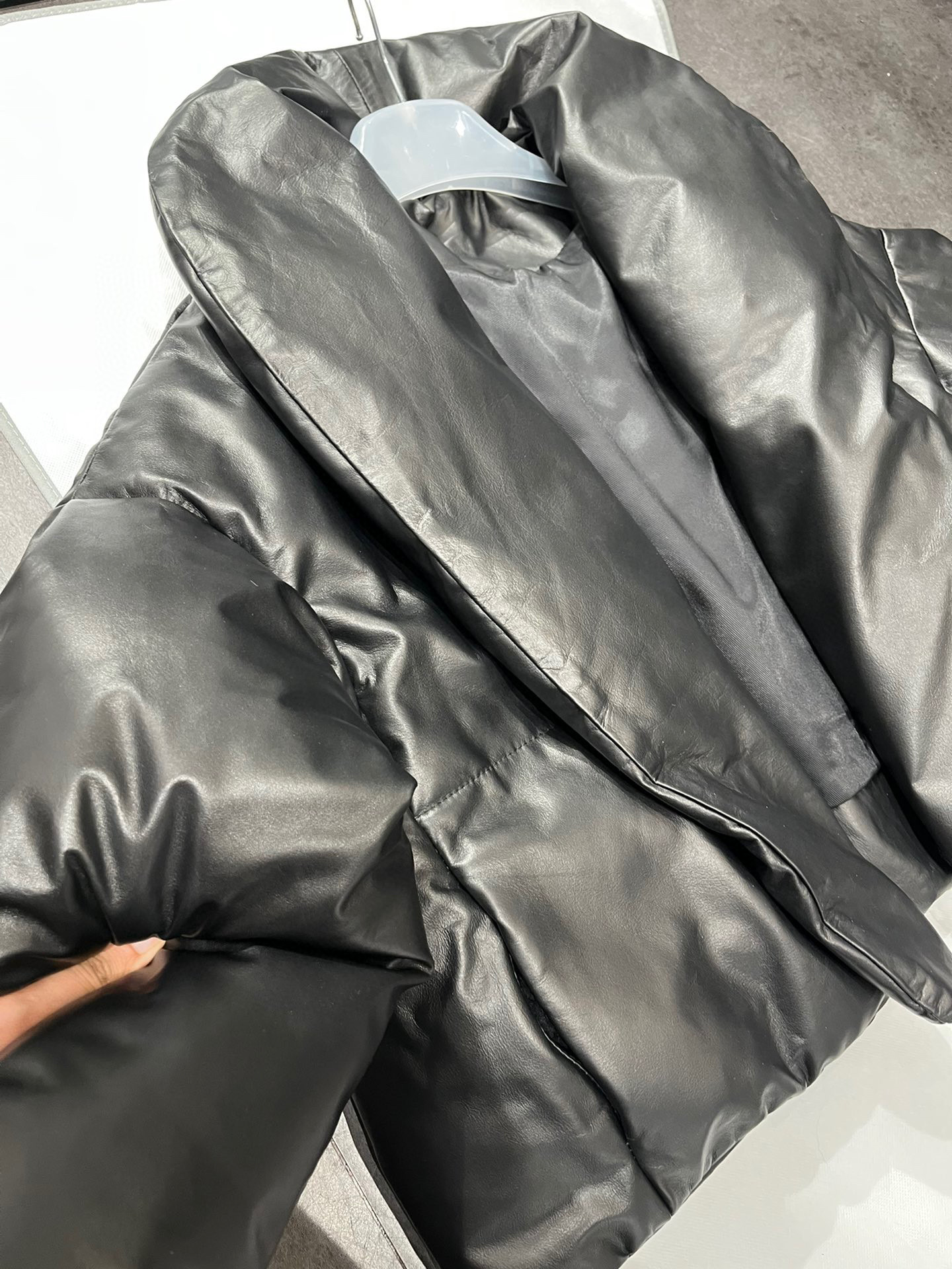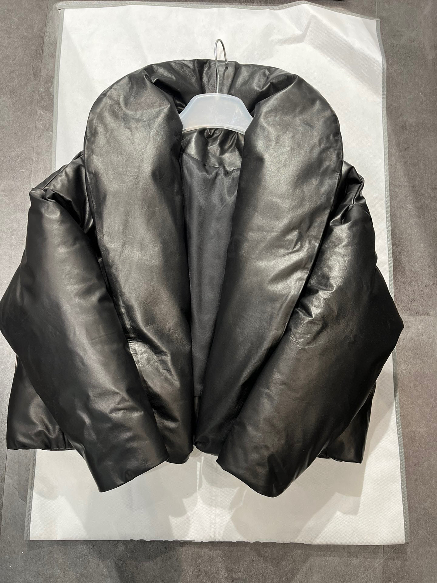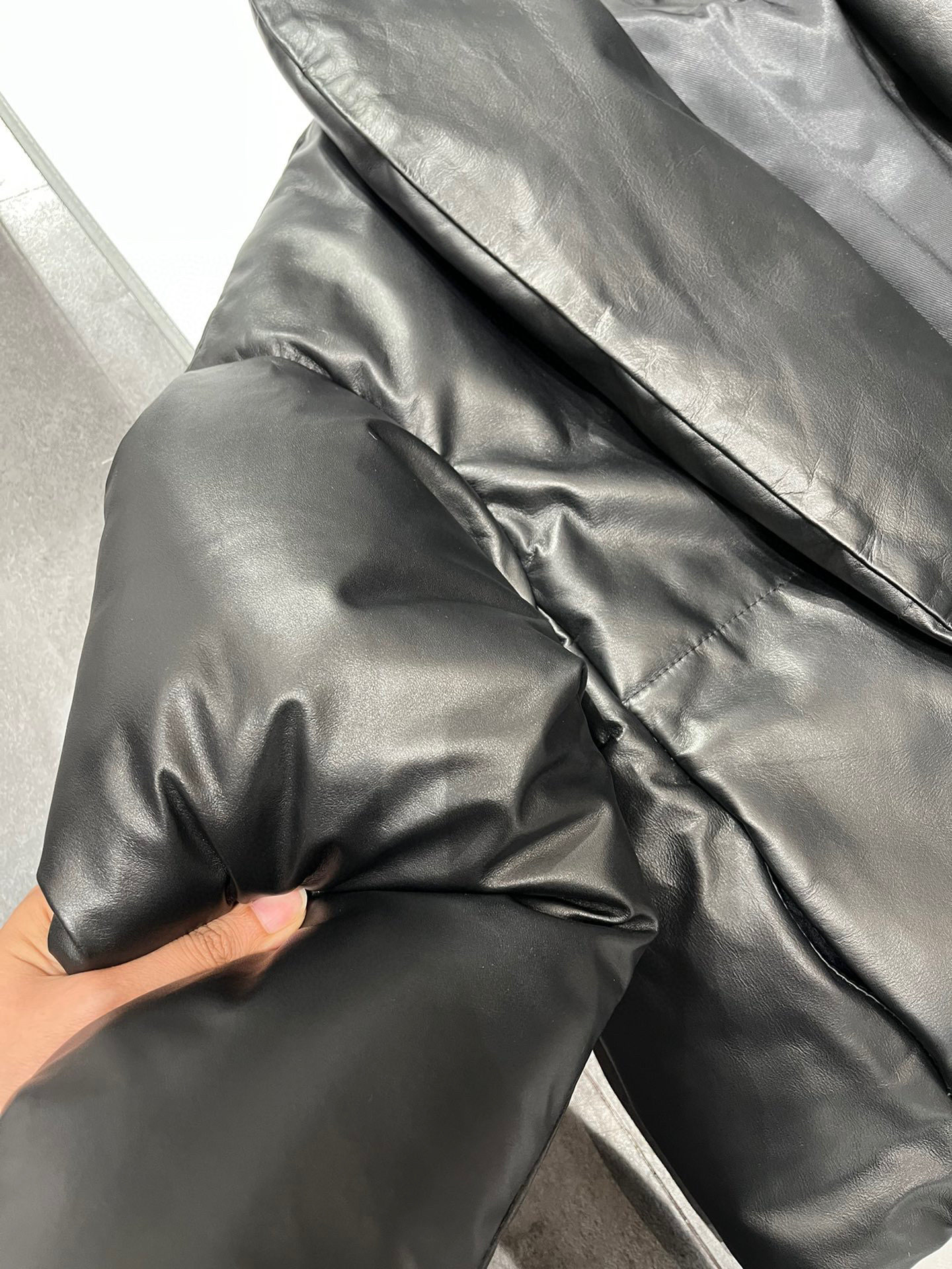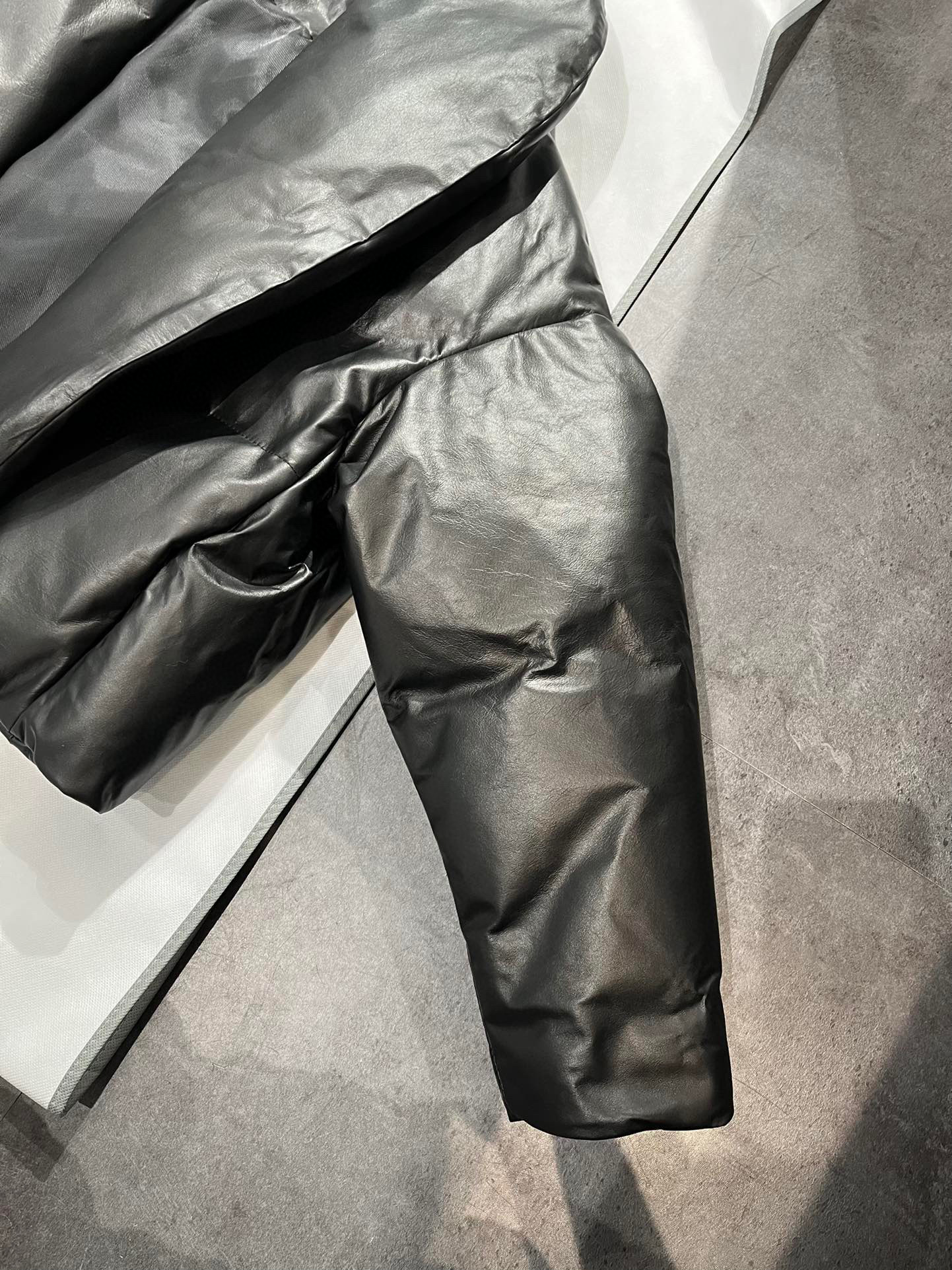 Saint Laurent Pure Black Leather Puffer Down Jacket #nigo96442