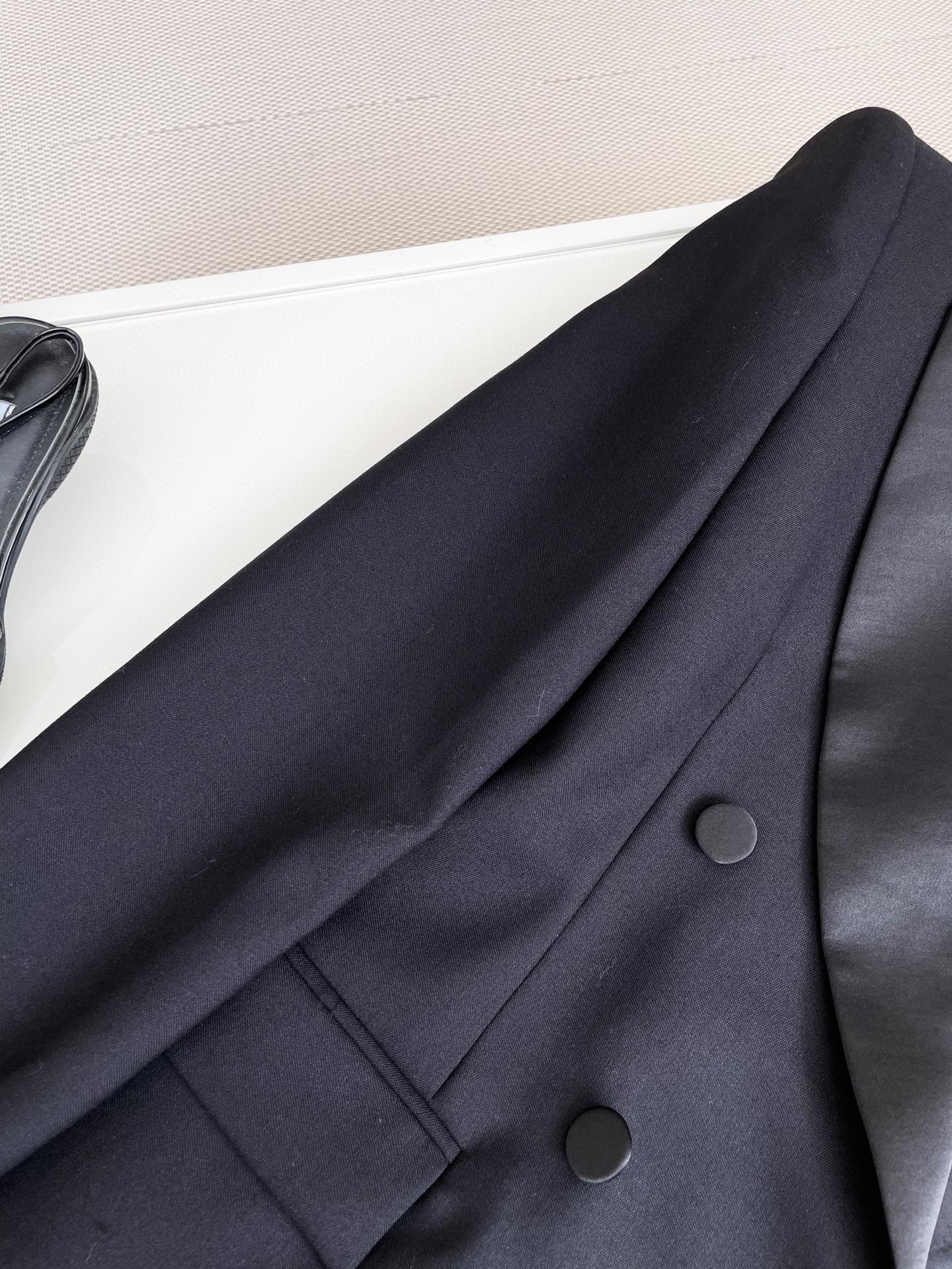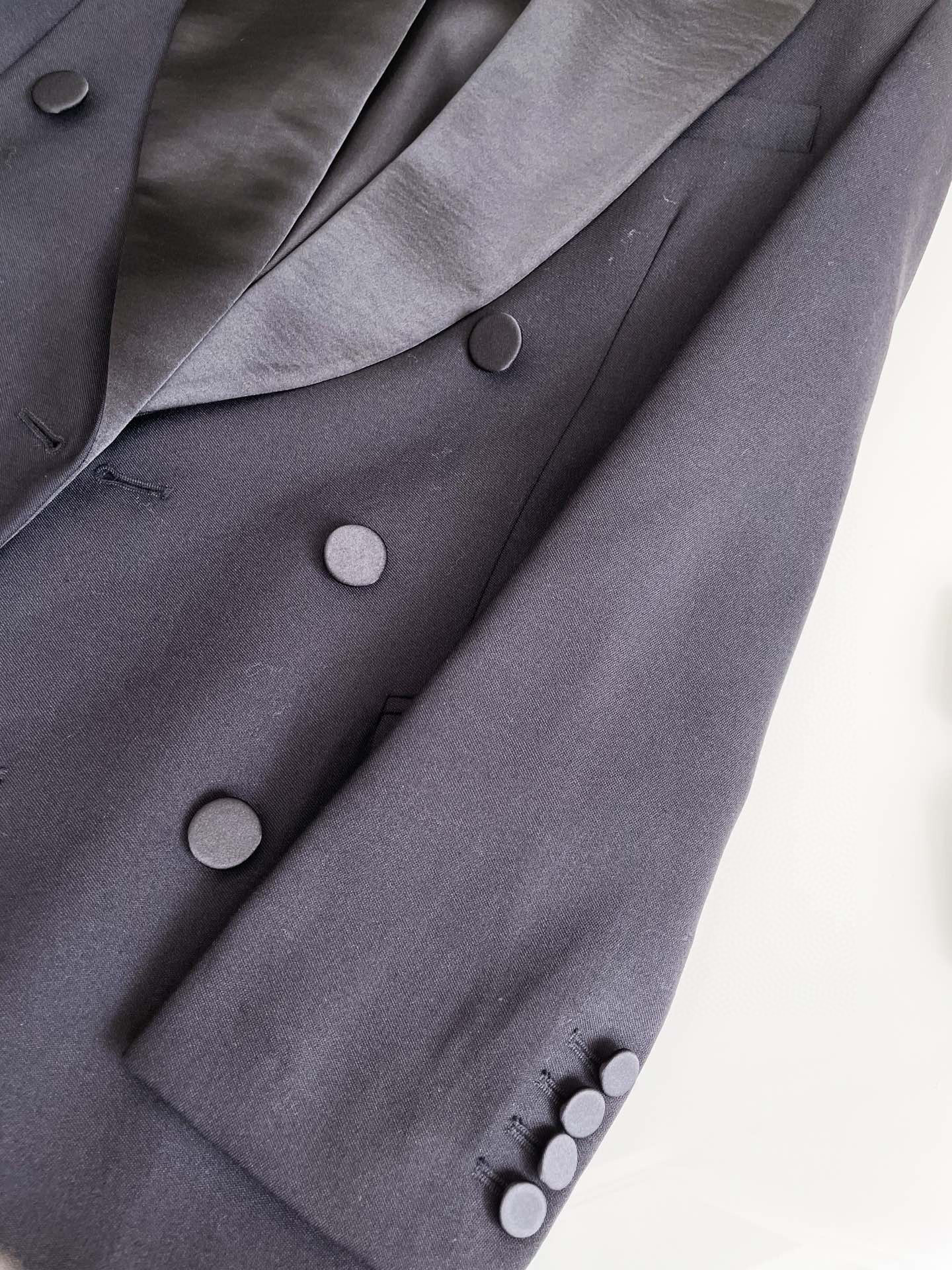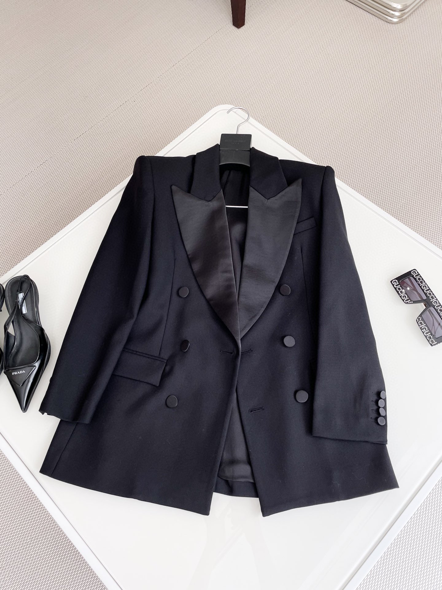 Saint Laurent Double Breasted Tuxedo Jacket In Grain De Poudre Ngvp #nigo6642