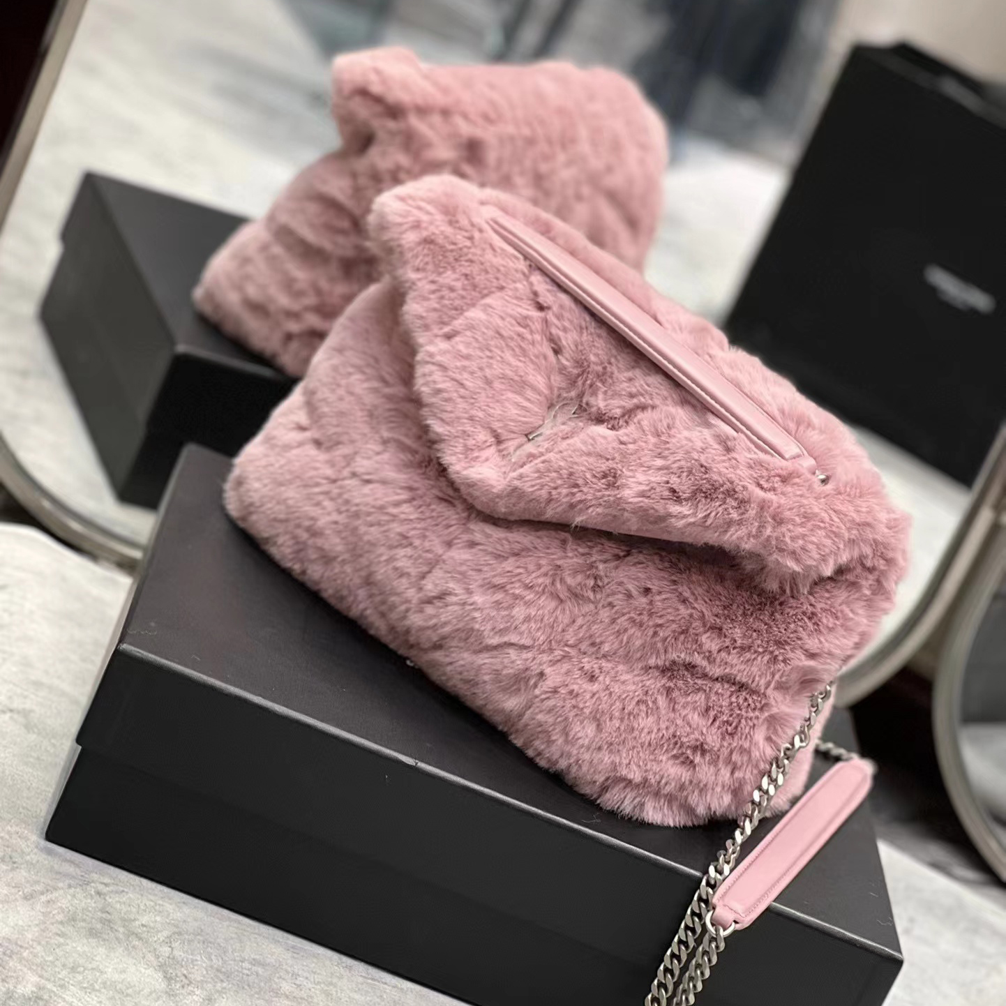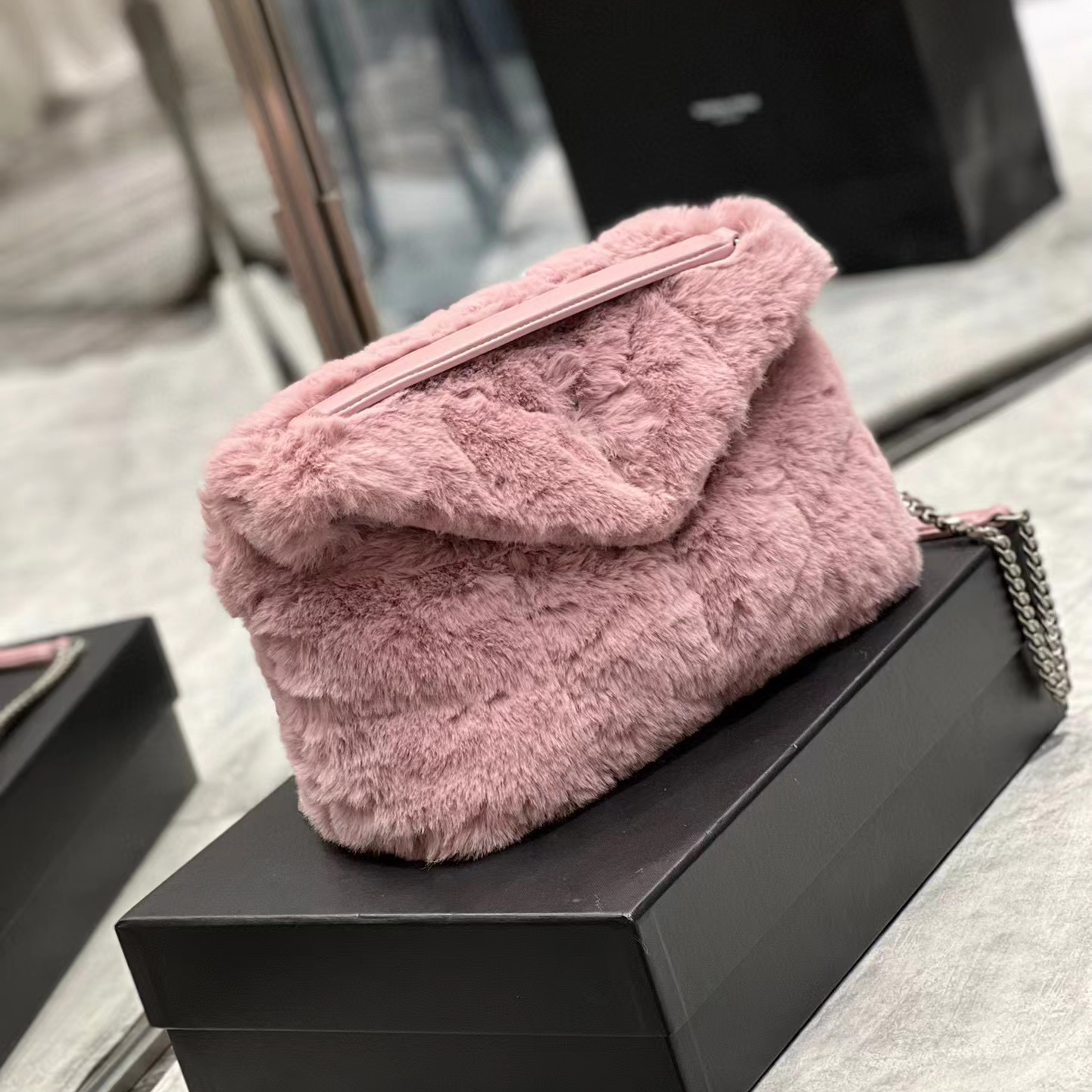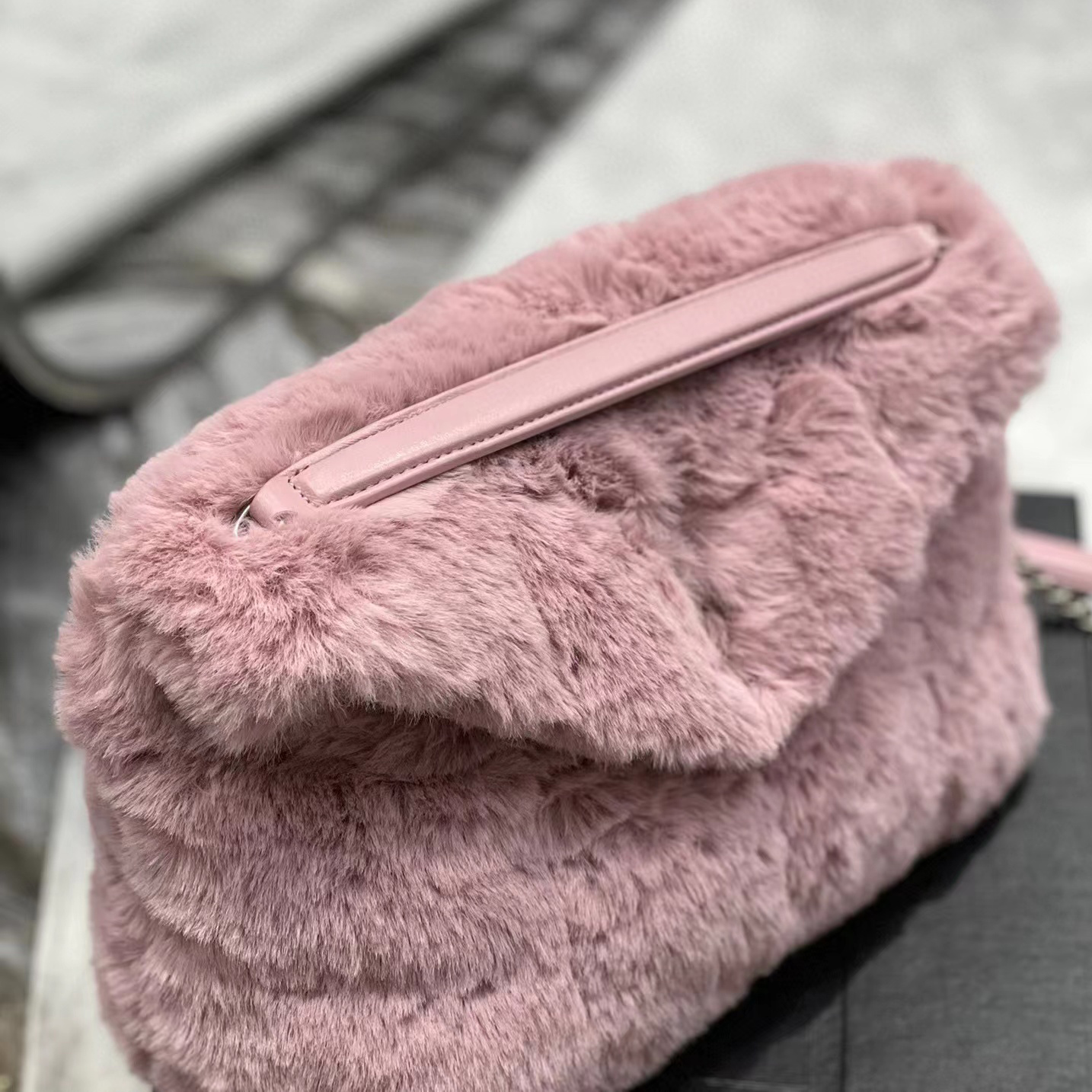SAINT LAURENT Winter Rabbit Leather Strap Plush Hand Shoulder Bag Bags #nigo53235