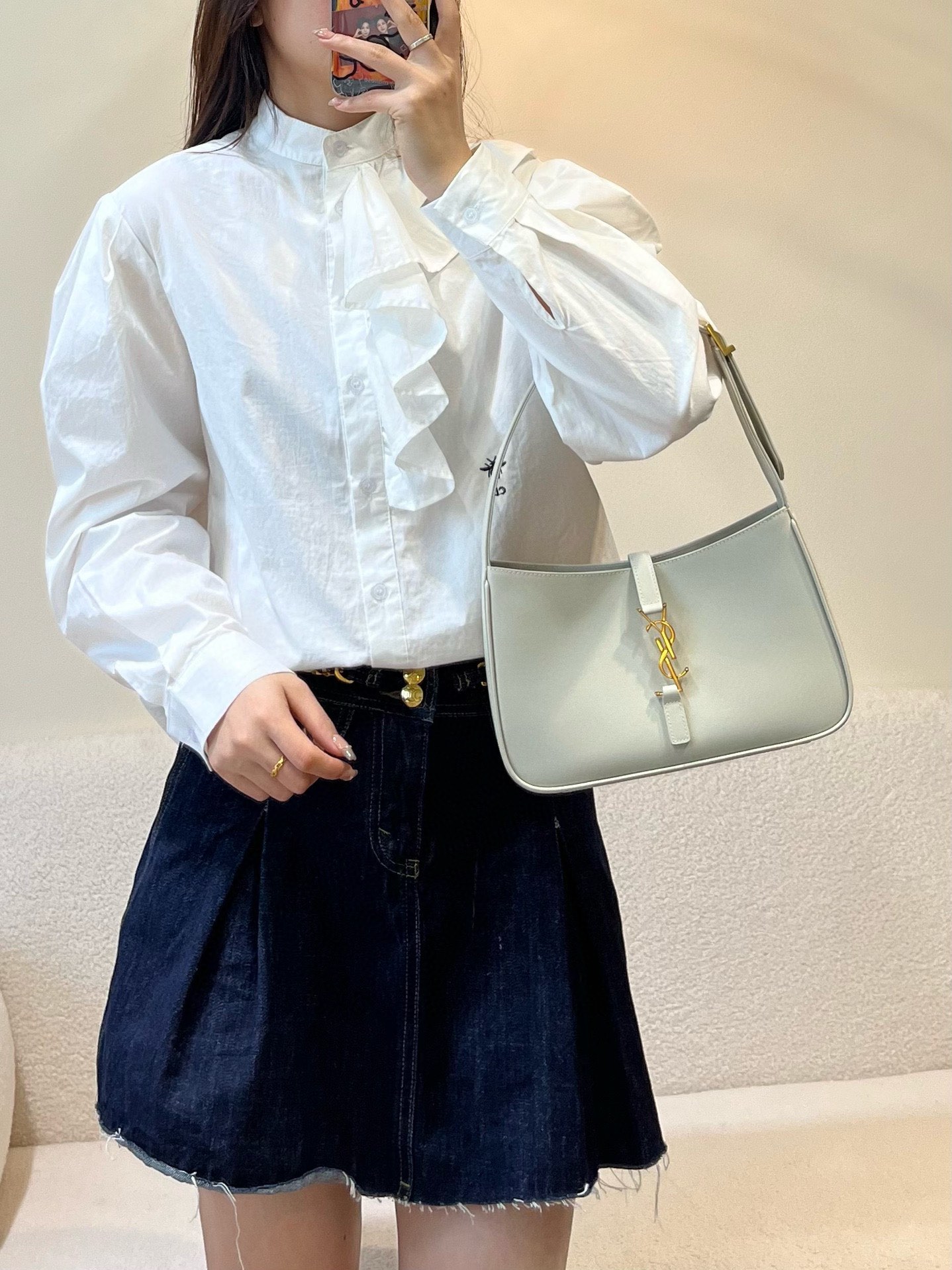NIGO SAINT LAURENT LE 5 À 7 Women's Adjustable Shoulder Strap Solid Color Smooth Leather Shoulder Handbag Bag Bags #nigo75551