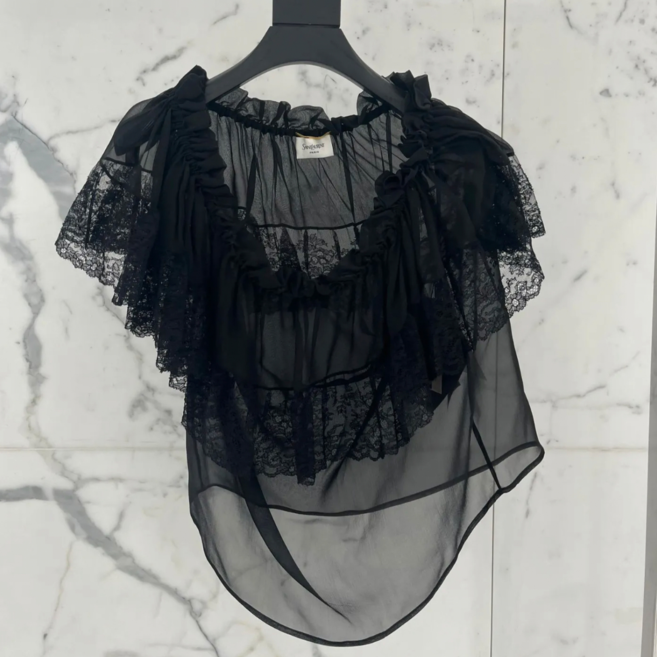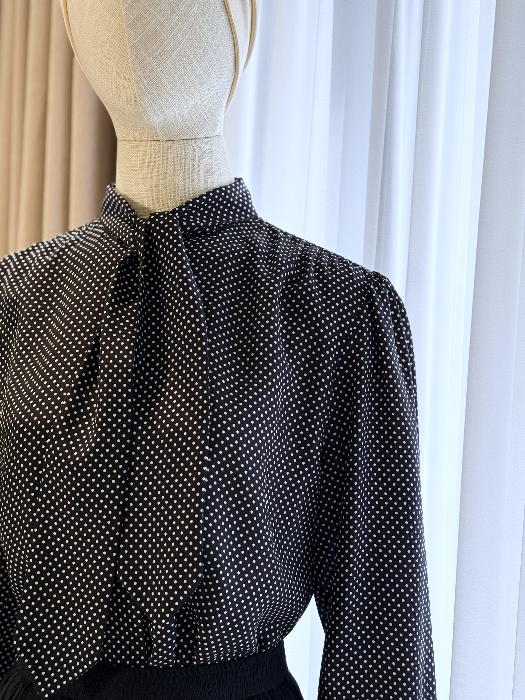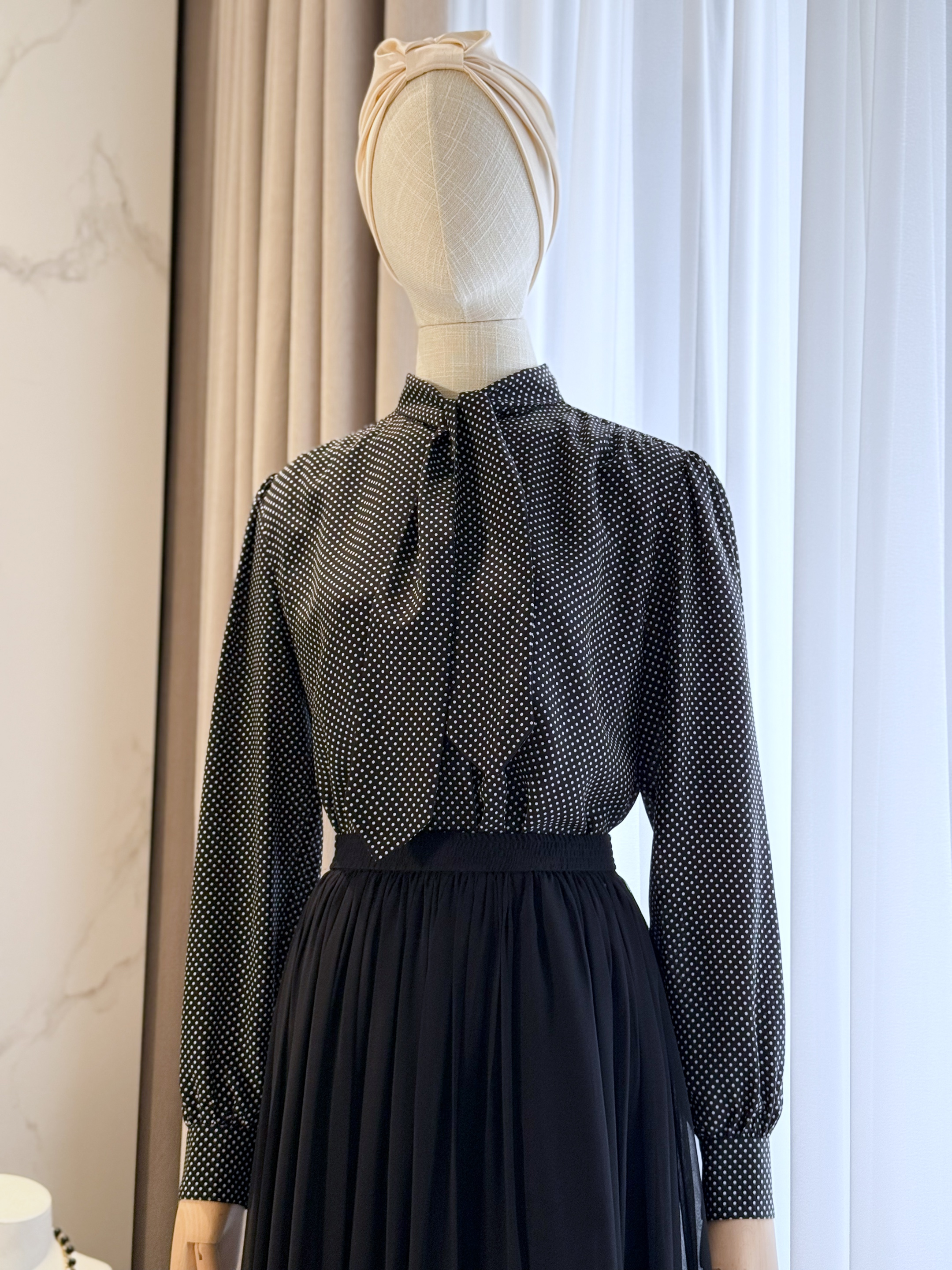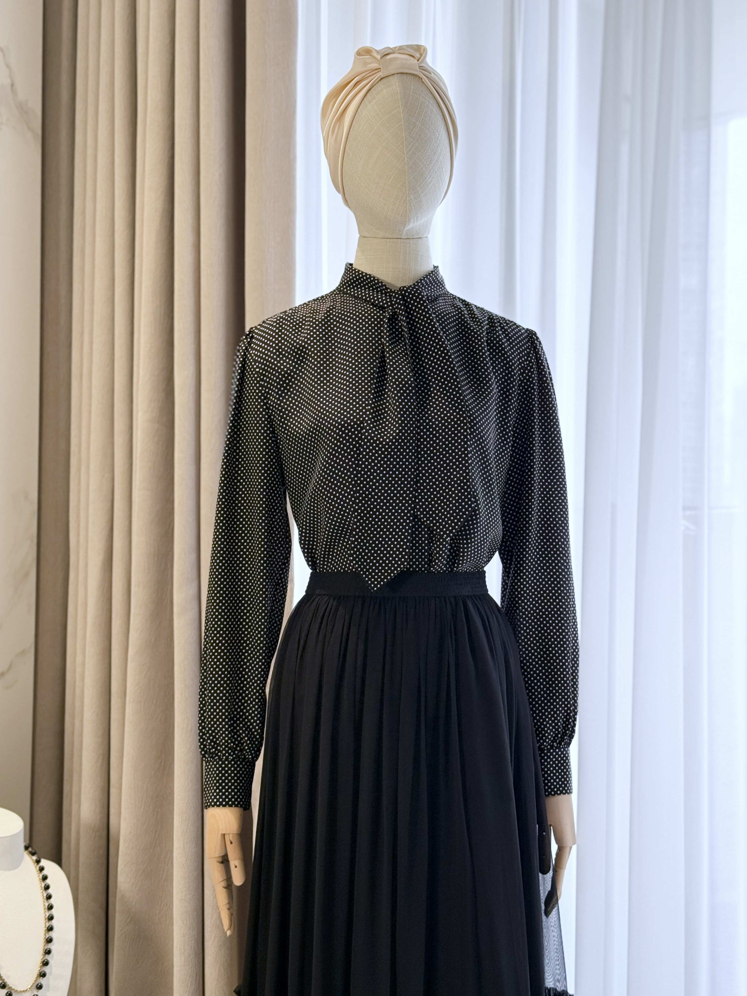 NIGO Saint Laurent Women's Spring/Summer Polka Dot Vintage Solid Color Neck Scarf Silk Long Sleeve Shirt Ngvp #nigo1217