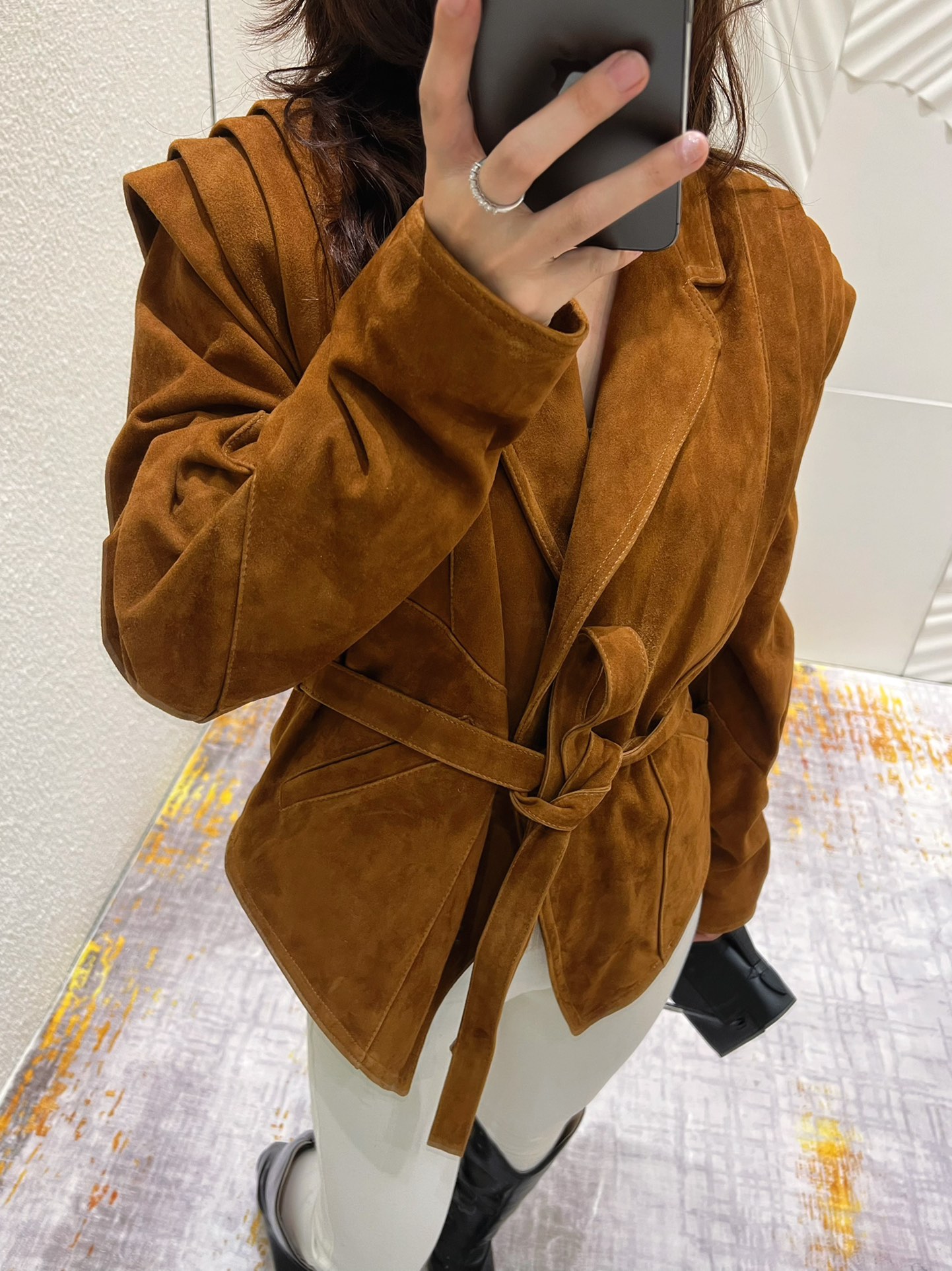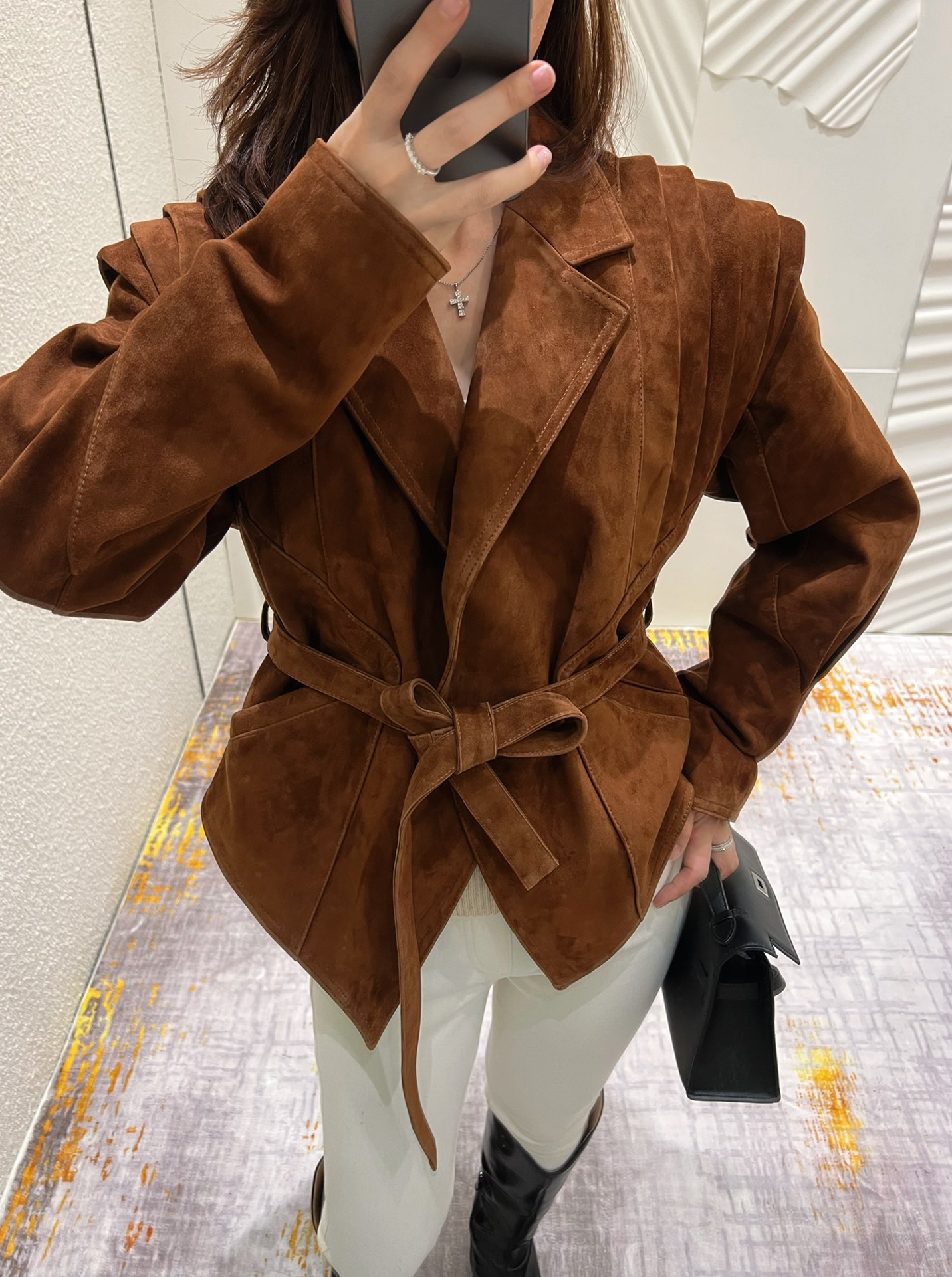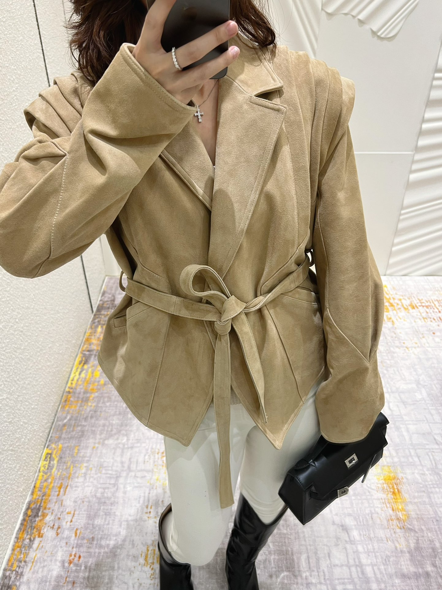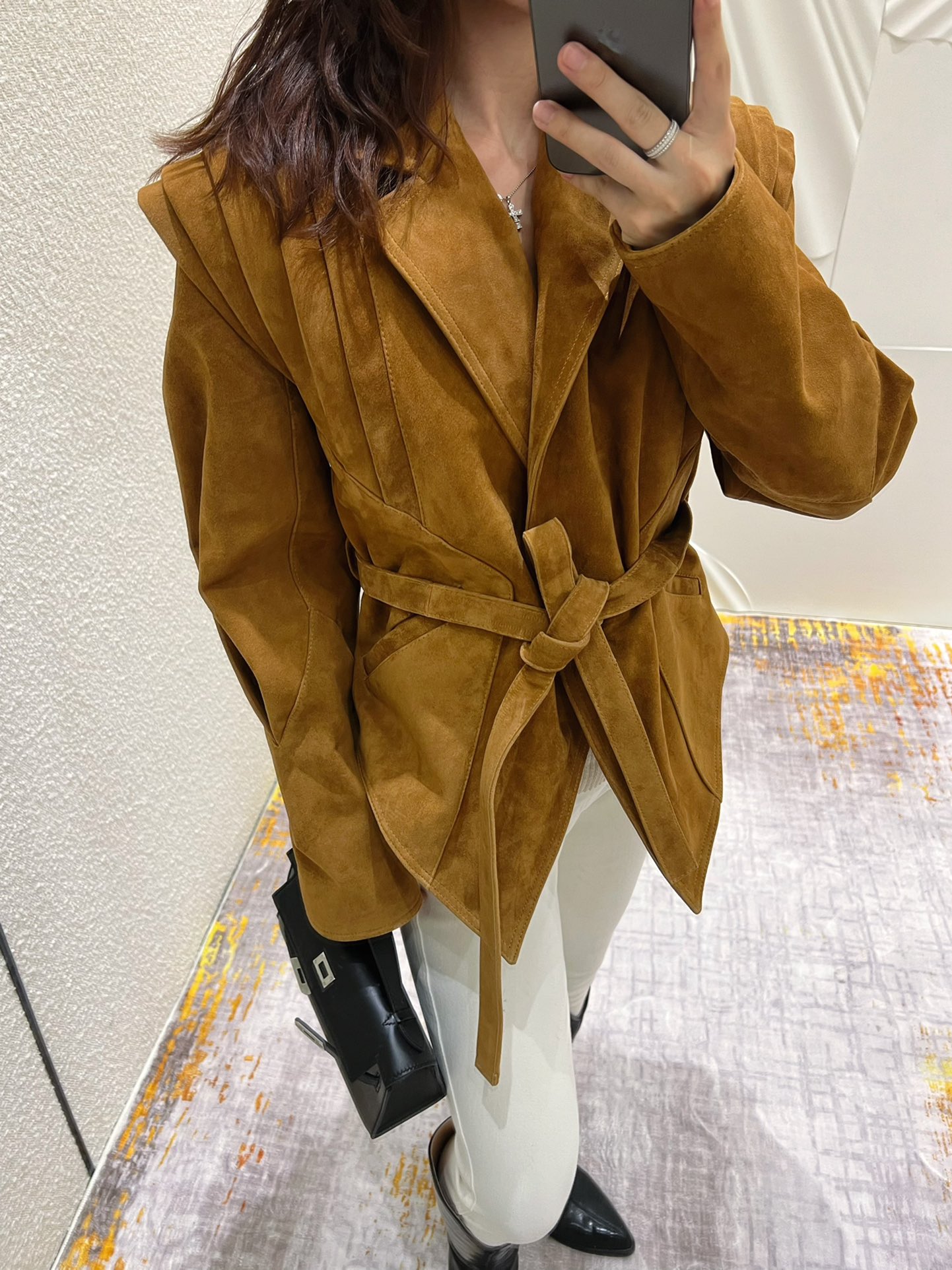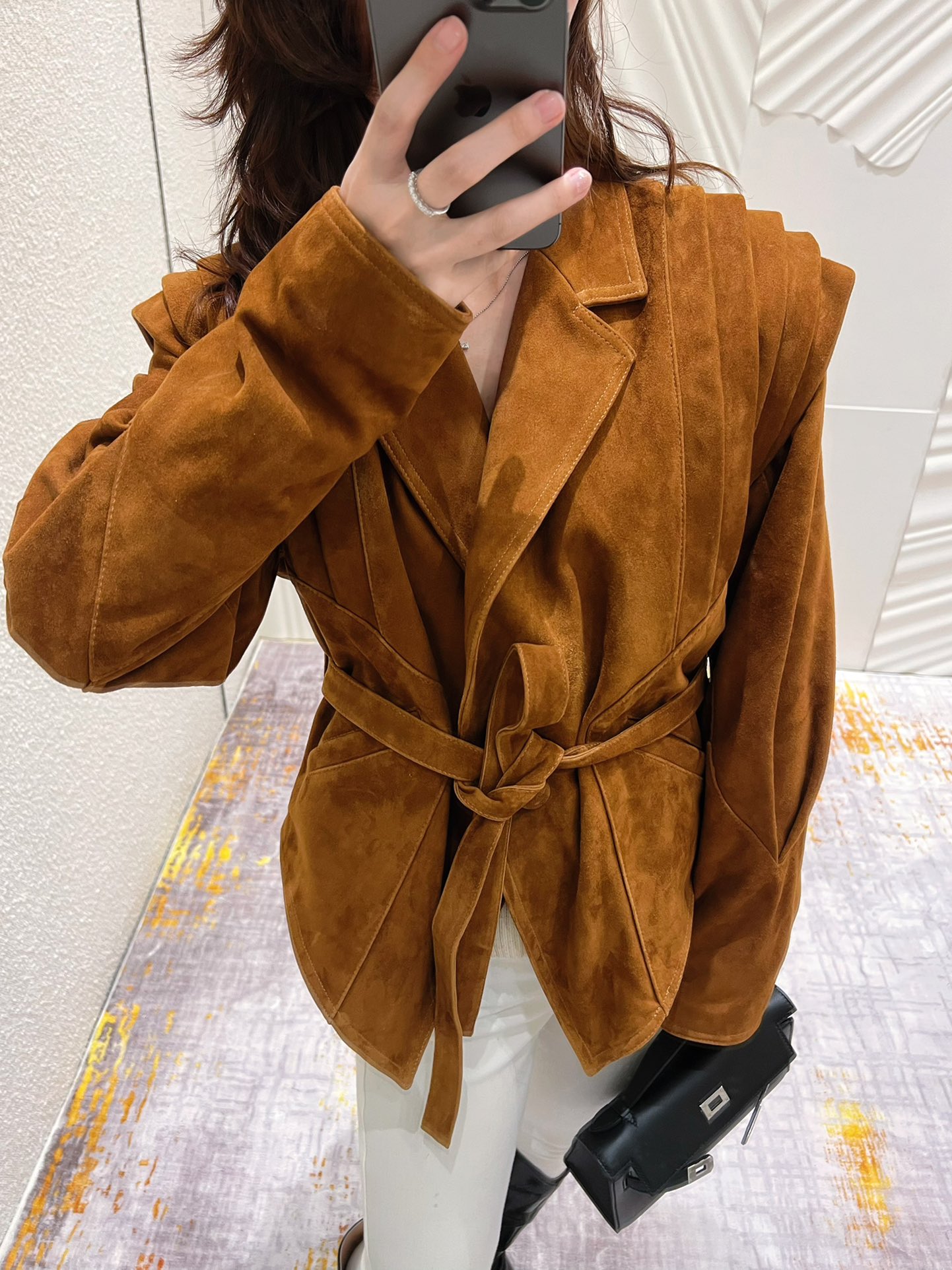 NIGO Saint Laurent Women's Autumn And Winter Solid Color Vintage Suede Long Sleeve Lace-Up Jacket Ngvp #nigo9184