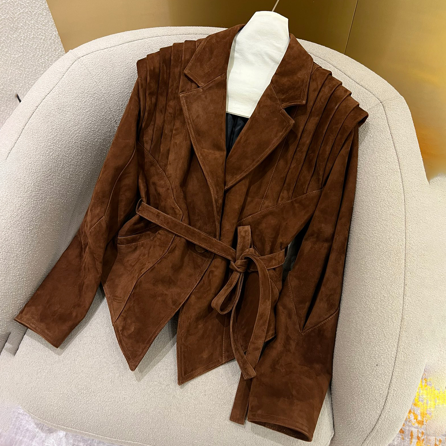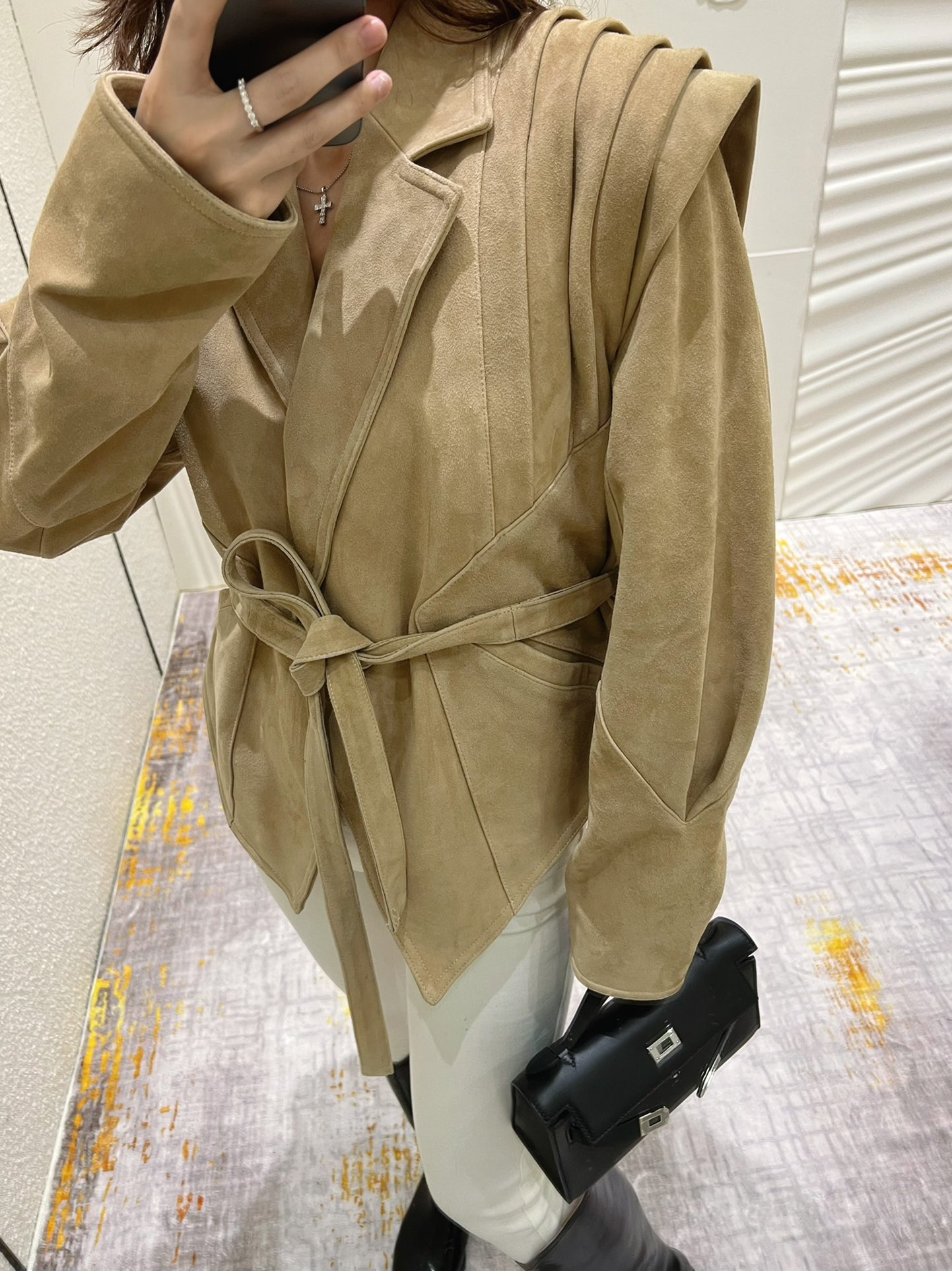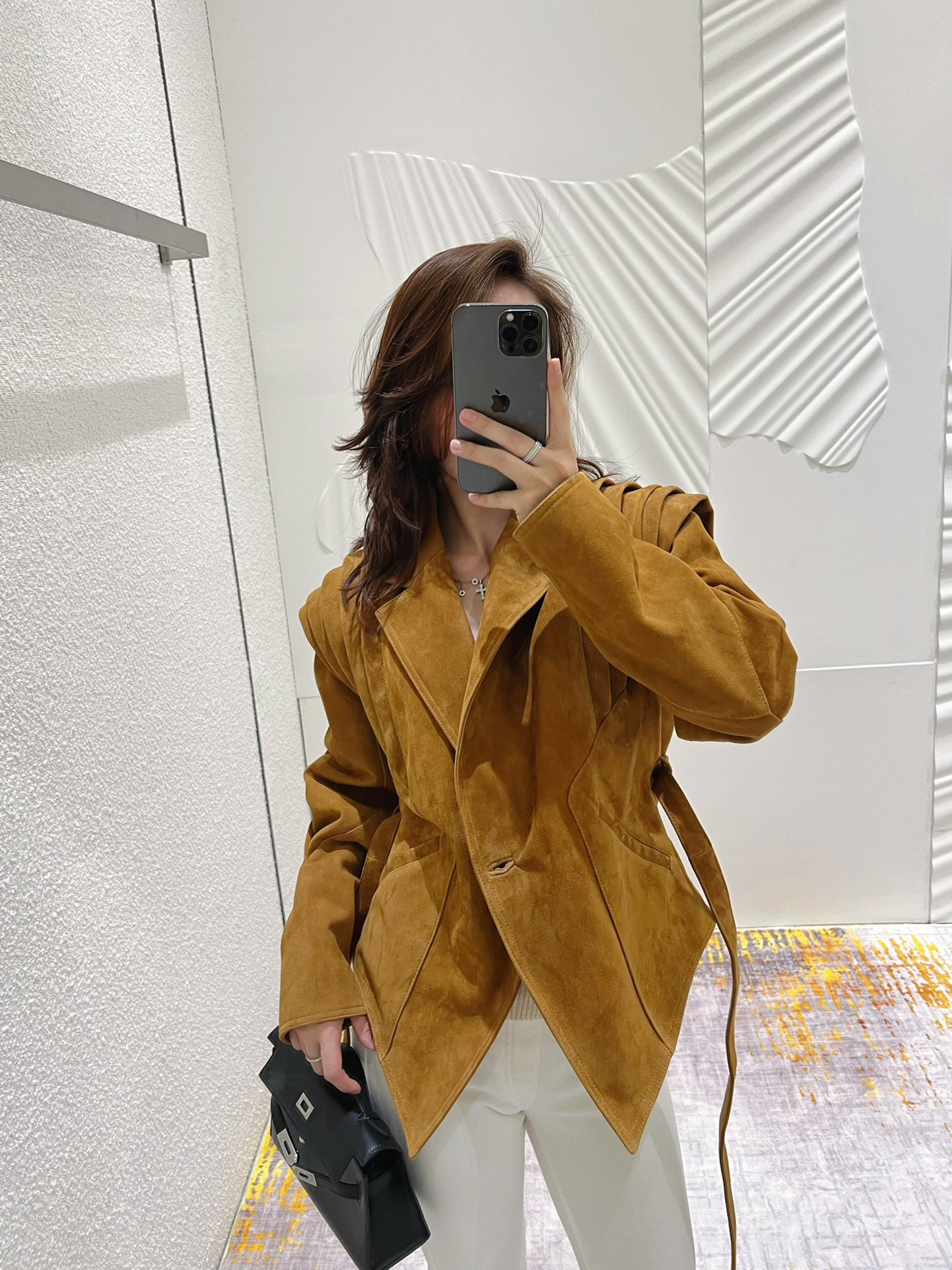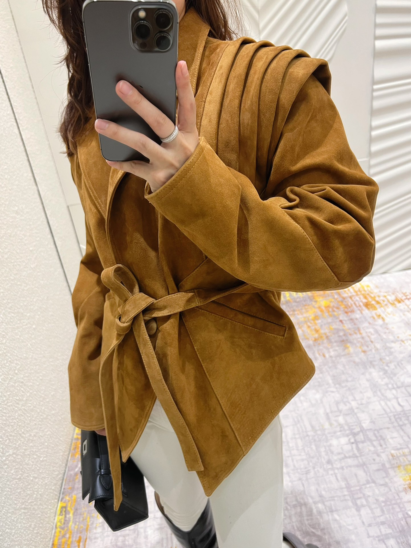 NIGO Saint Laurent Women's Autumn And Winter Solid Color Vintage Suede Long Sleeve Lace-Up Jacket Ngvp #nigo9184