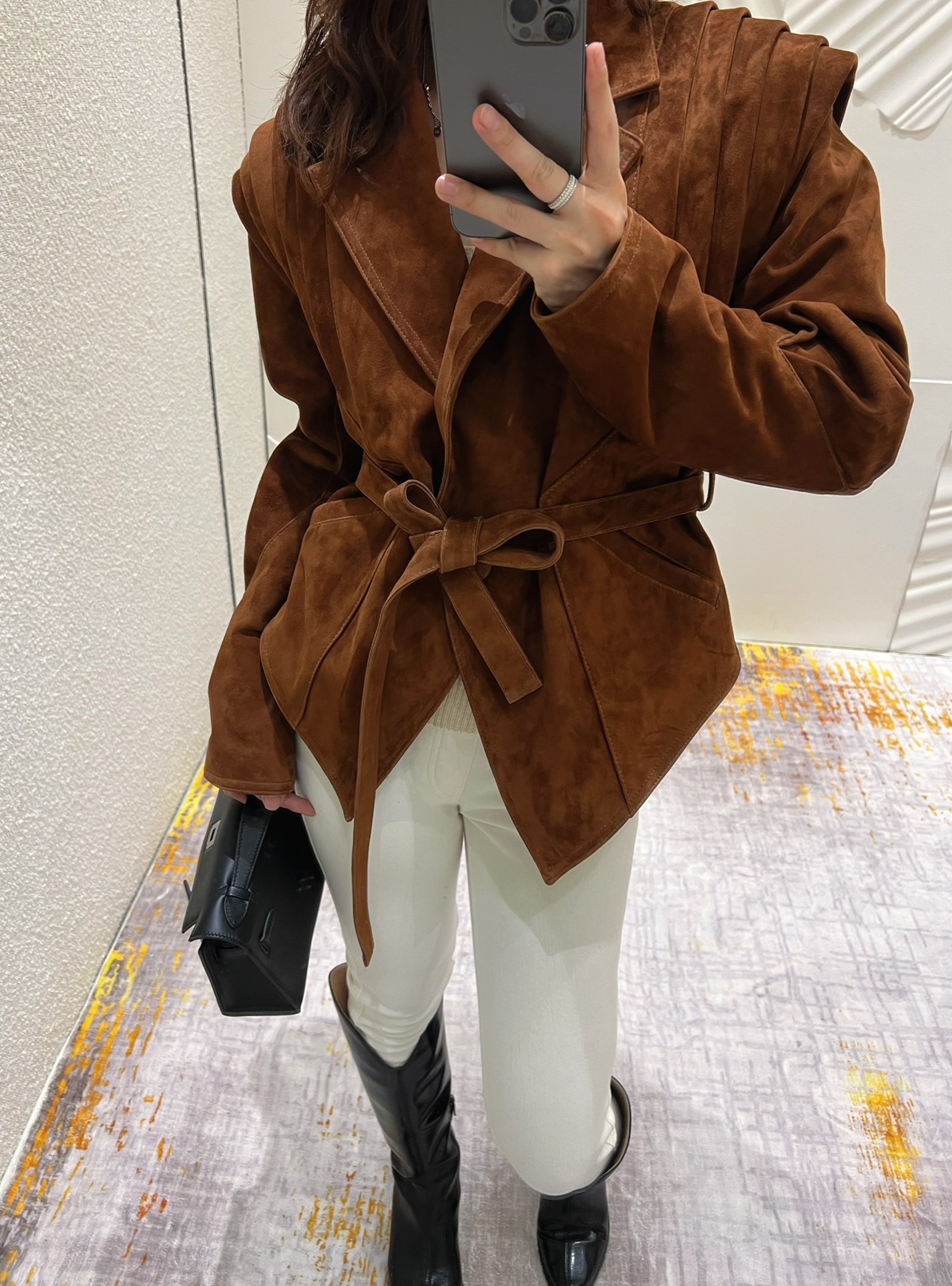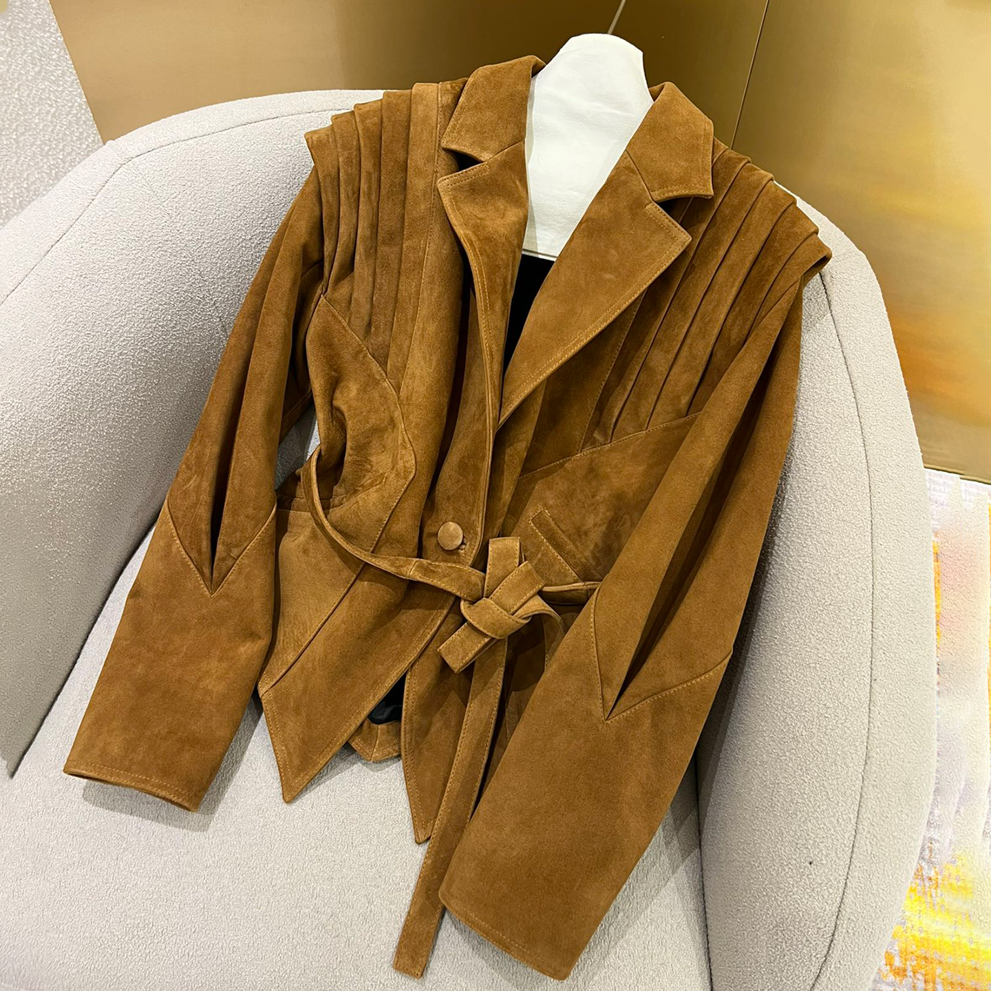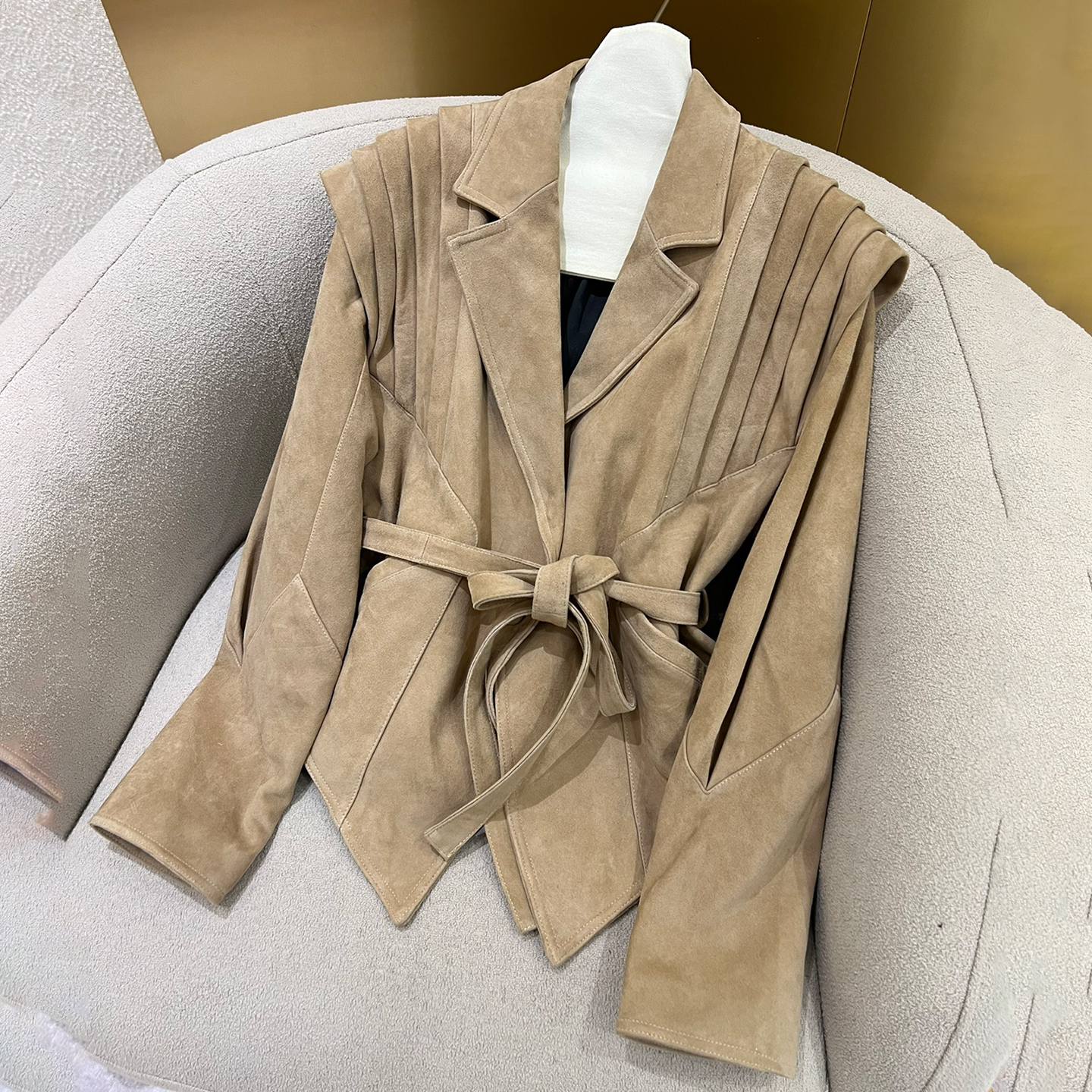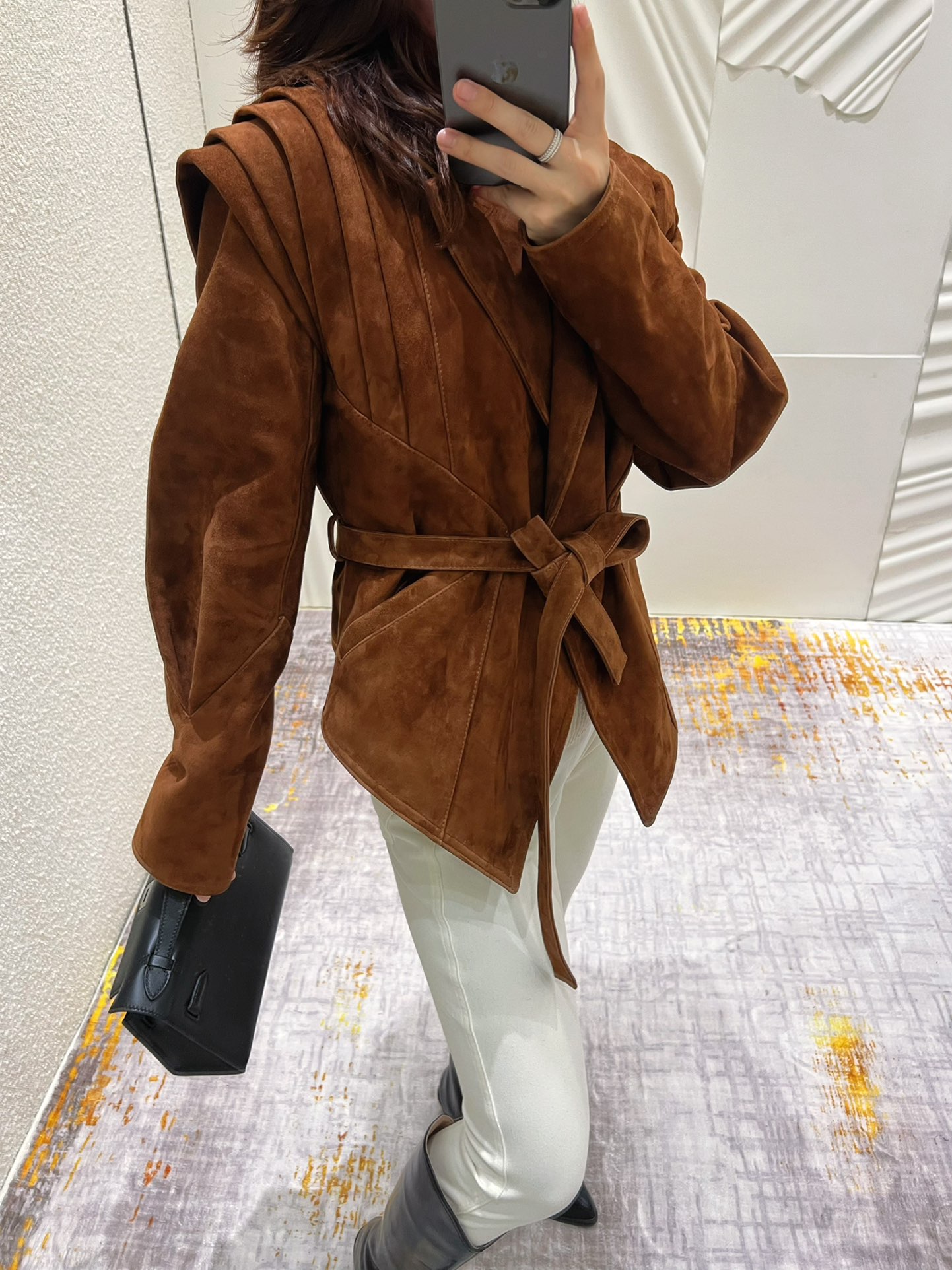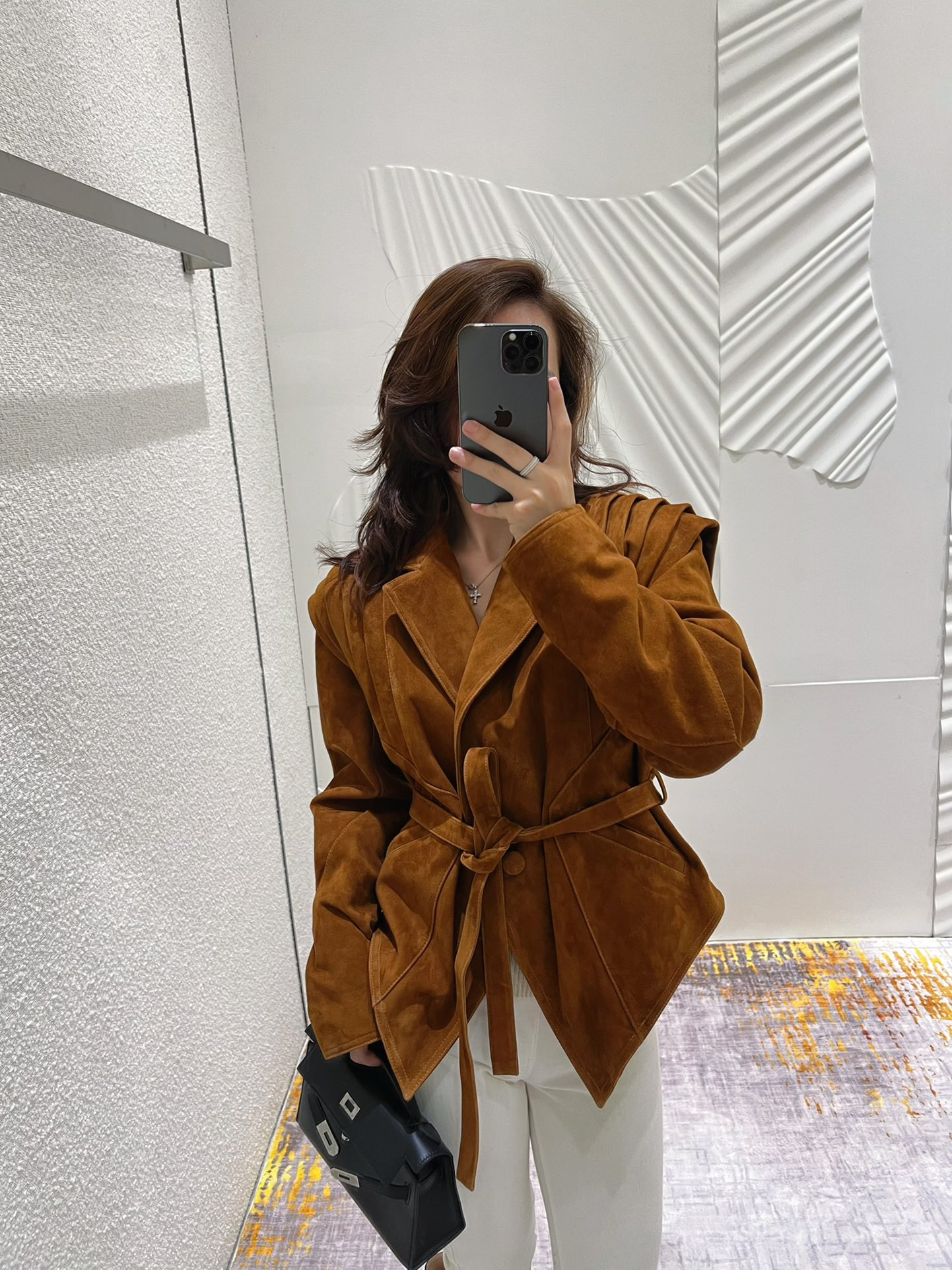 NIGO Saint Laurent Women's Autumn And Winter Solid Color Vintage Suede Long Sleeve Lace-Up Jacket Ngvp #nigo9184