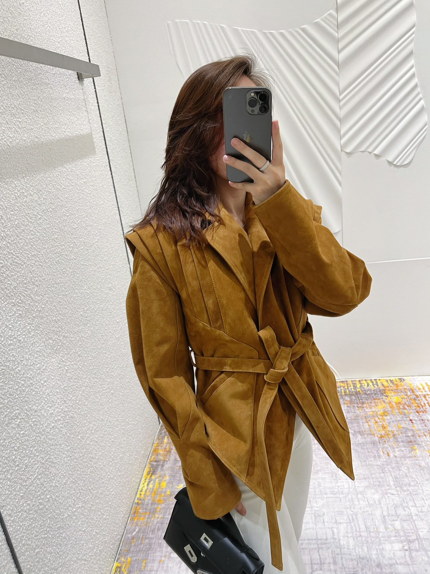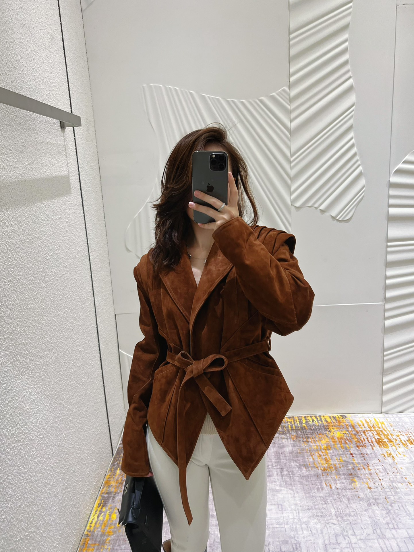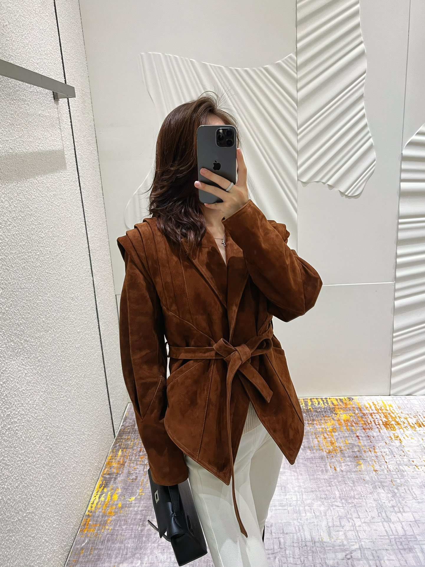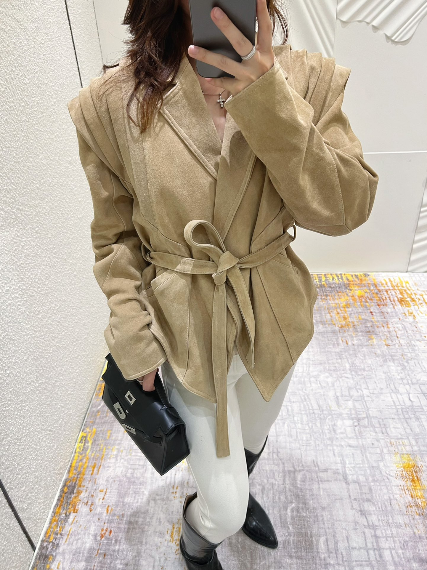 NIGO Saint Laurent Women's Autumn And Winter Solid Color Vintage Suede Long Sleeve Lace-Up Jacket Ngvp #nigo9184