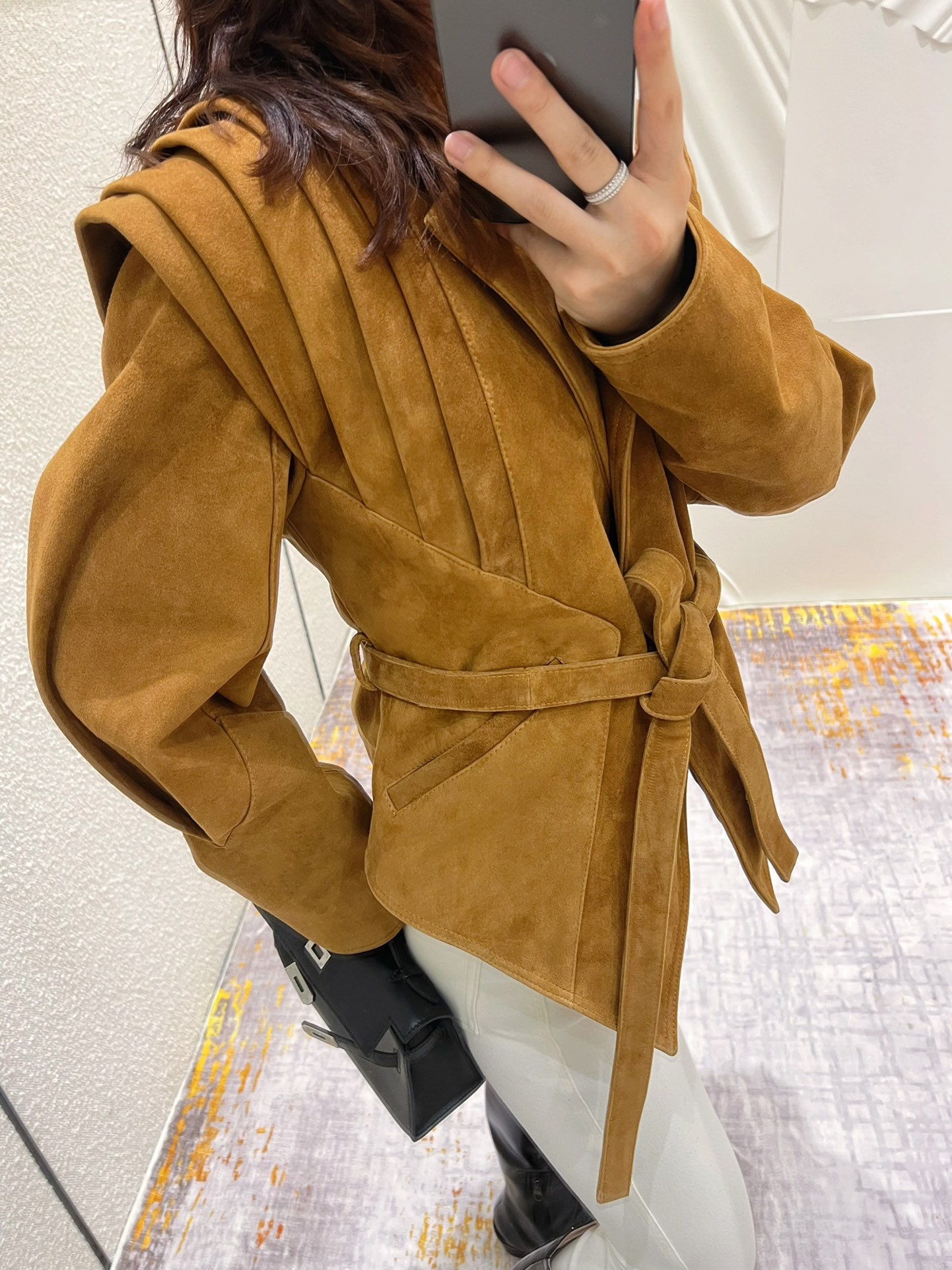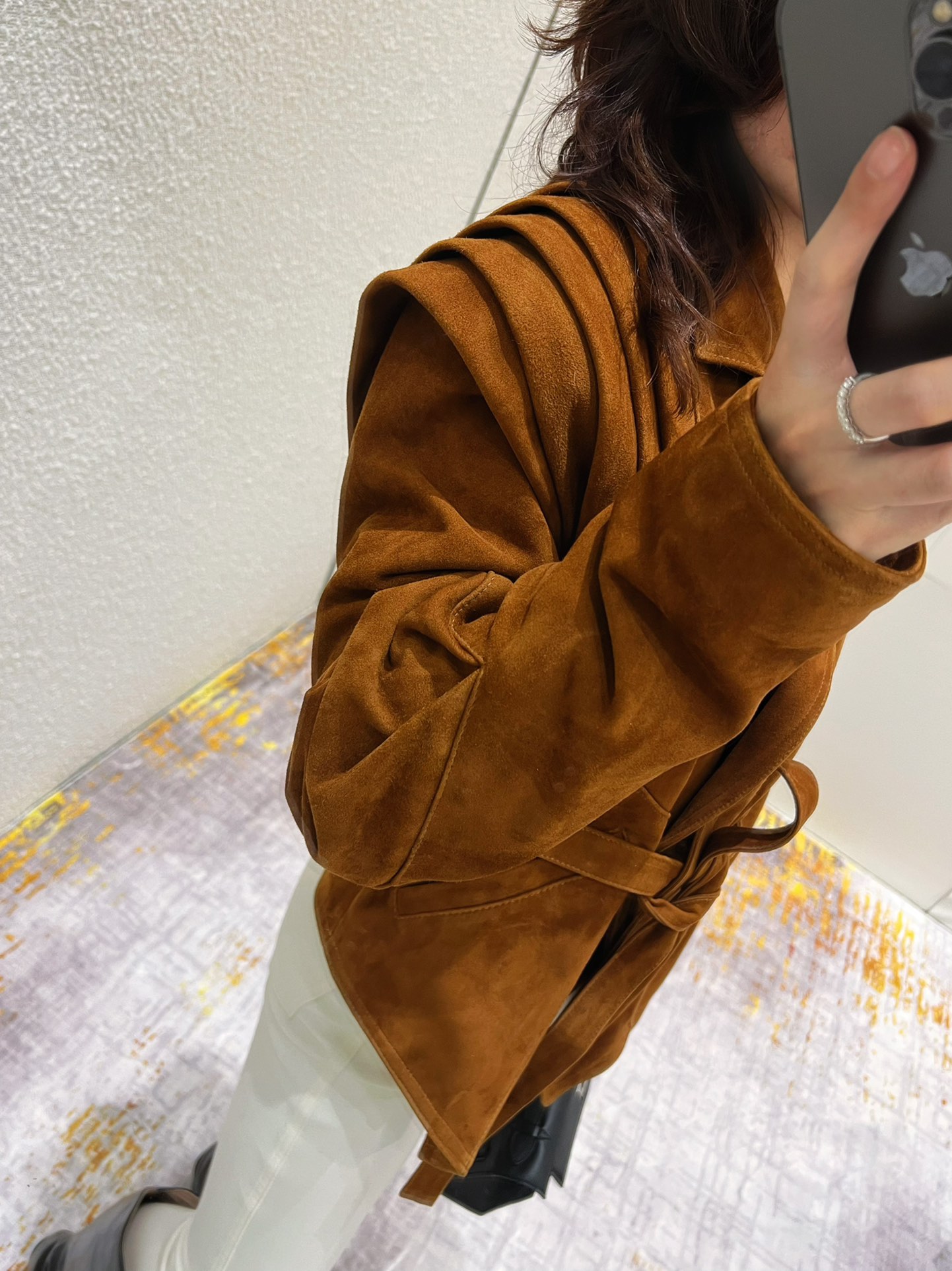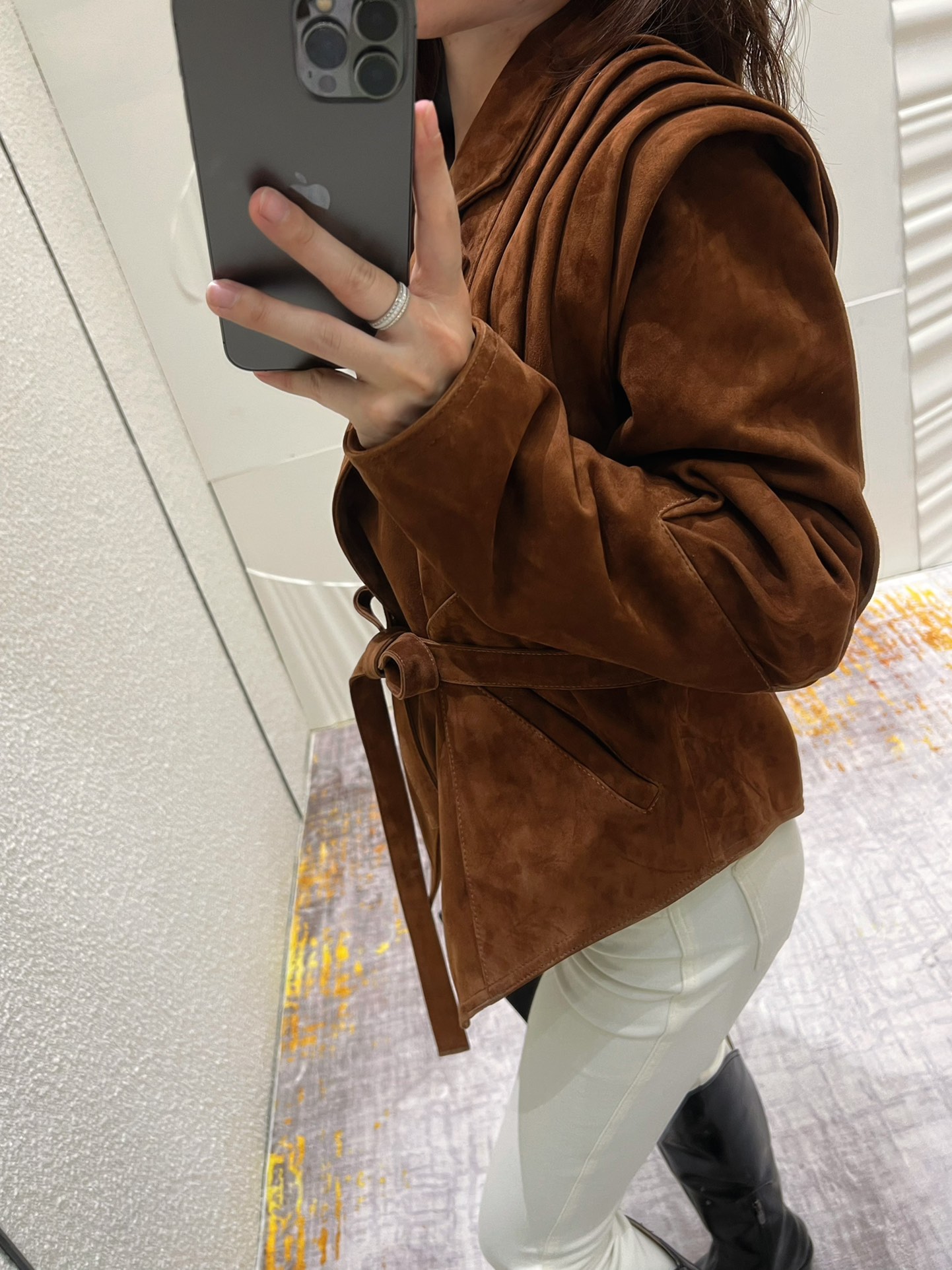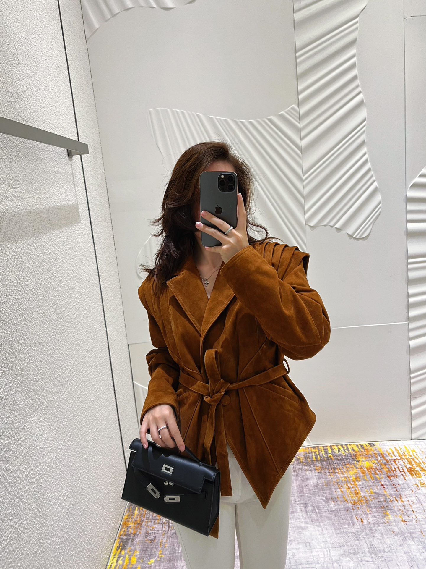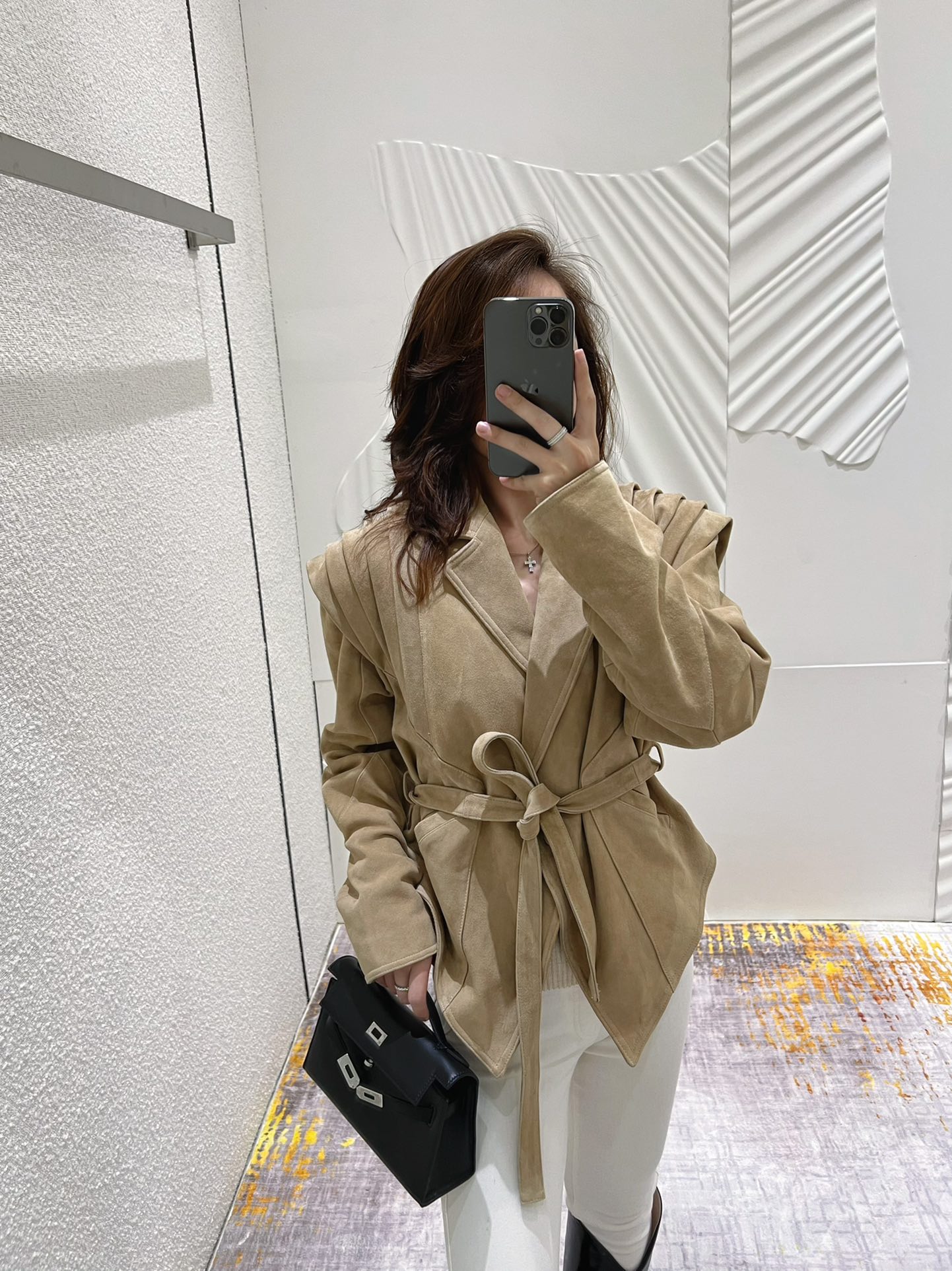 NIGO Saint Laurent Women's Autumn And Winter Solid Color Vintage Suede Long Sleeve Lace-Up Jacket Ngvp #nigo9184