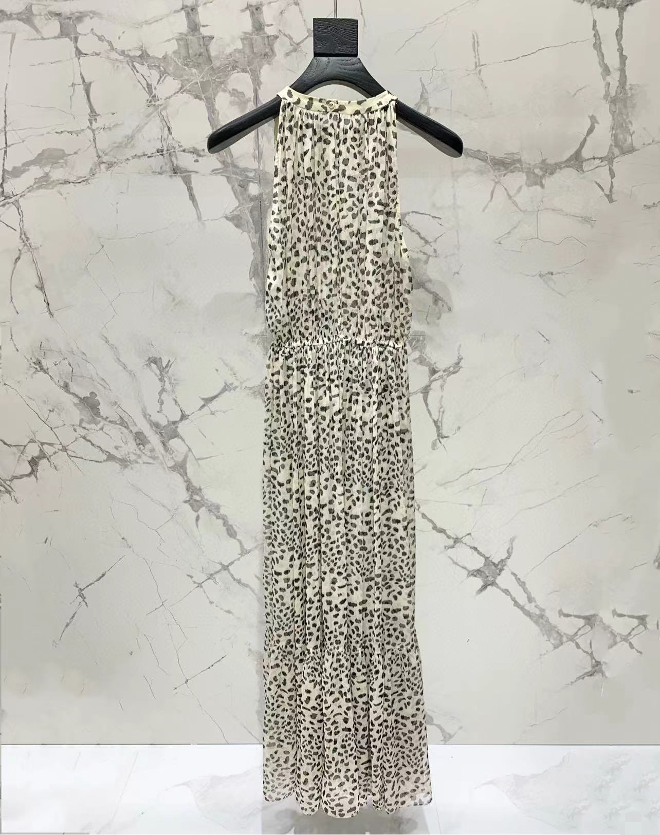 NIGO Saint Laurent Women's Summer Round Neck Pullover Silk Fit Sleeveless Leopard Print Long Dresses #nigo71631