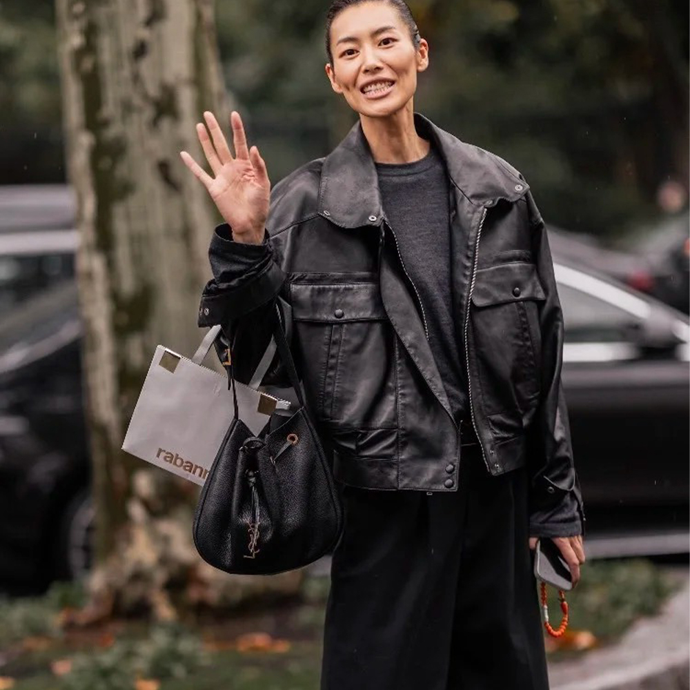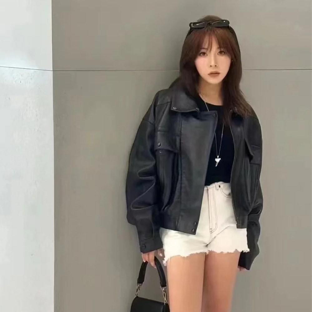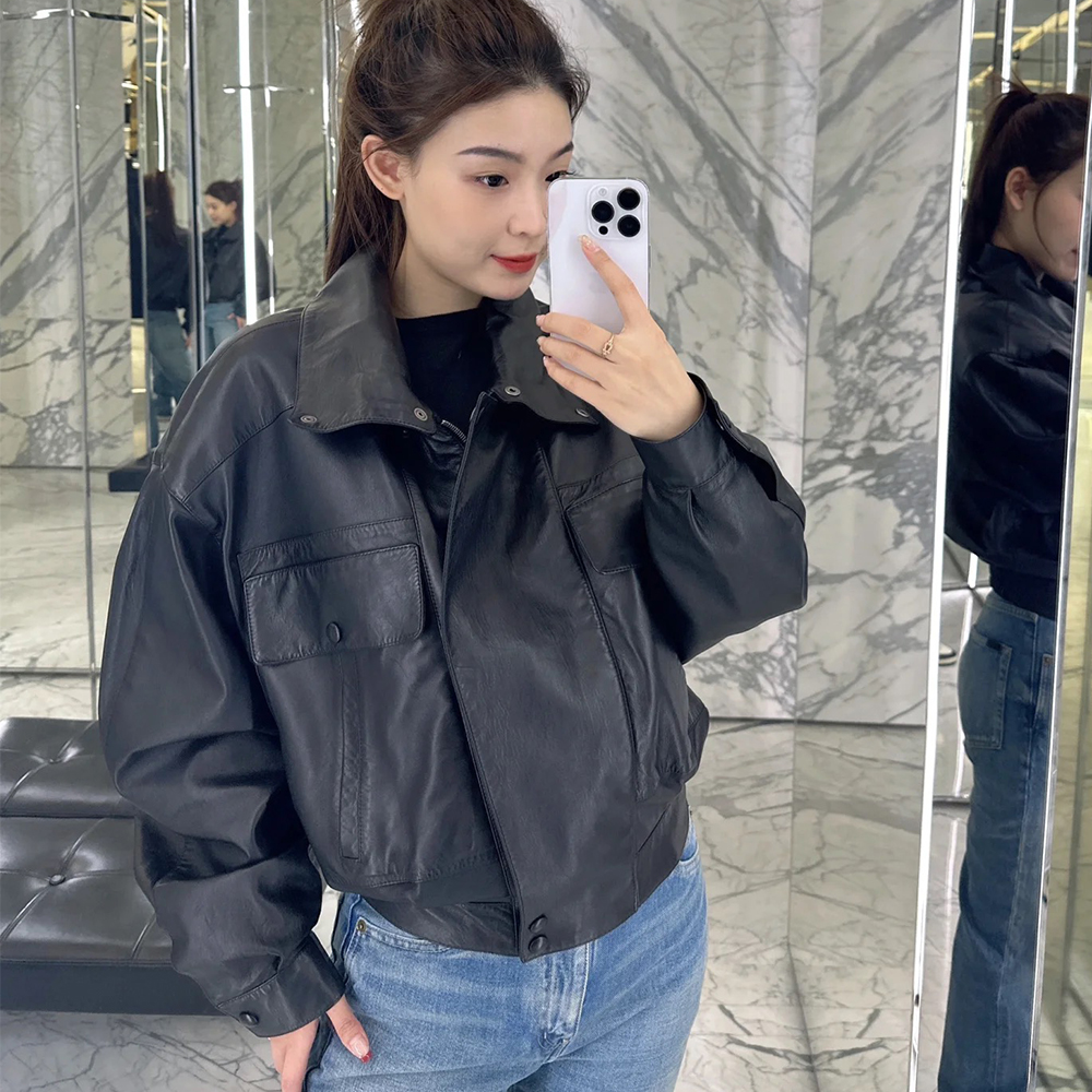 NIGO SAINT LAURENT Women's Autumn And Winter Zipper Lapel Short Black Long Sleeve Fitted Sheepskin Jacket Ngvp #nigo9425