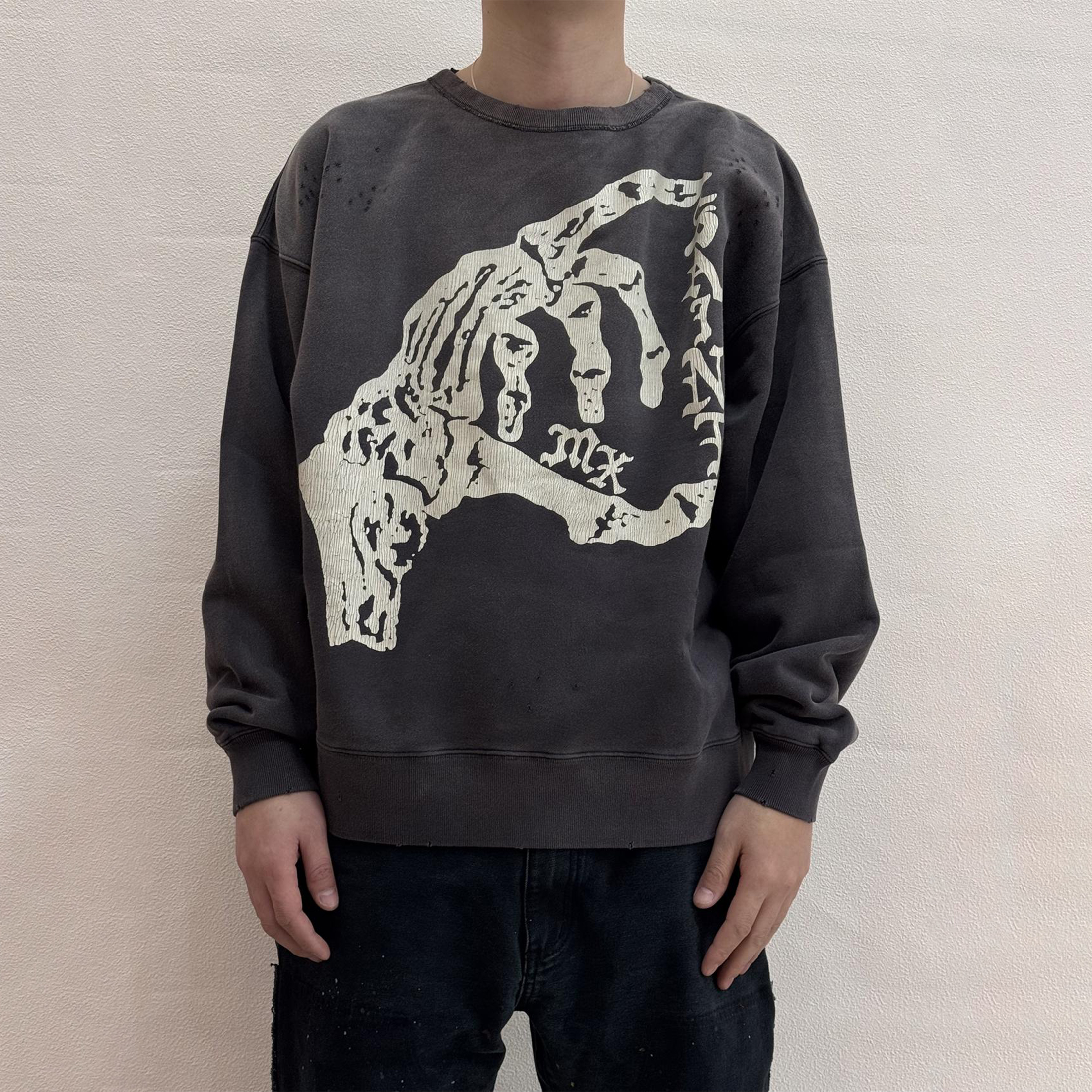 NIGO Saint Michael Men's Skull Print Retro Washed Grey Sweatshirt Fashion High Street Casual Trend Round Neck Long Sleeve Pullover Sweatshirt T-shirt Ngvp #nigo9796
