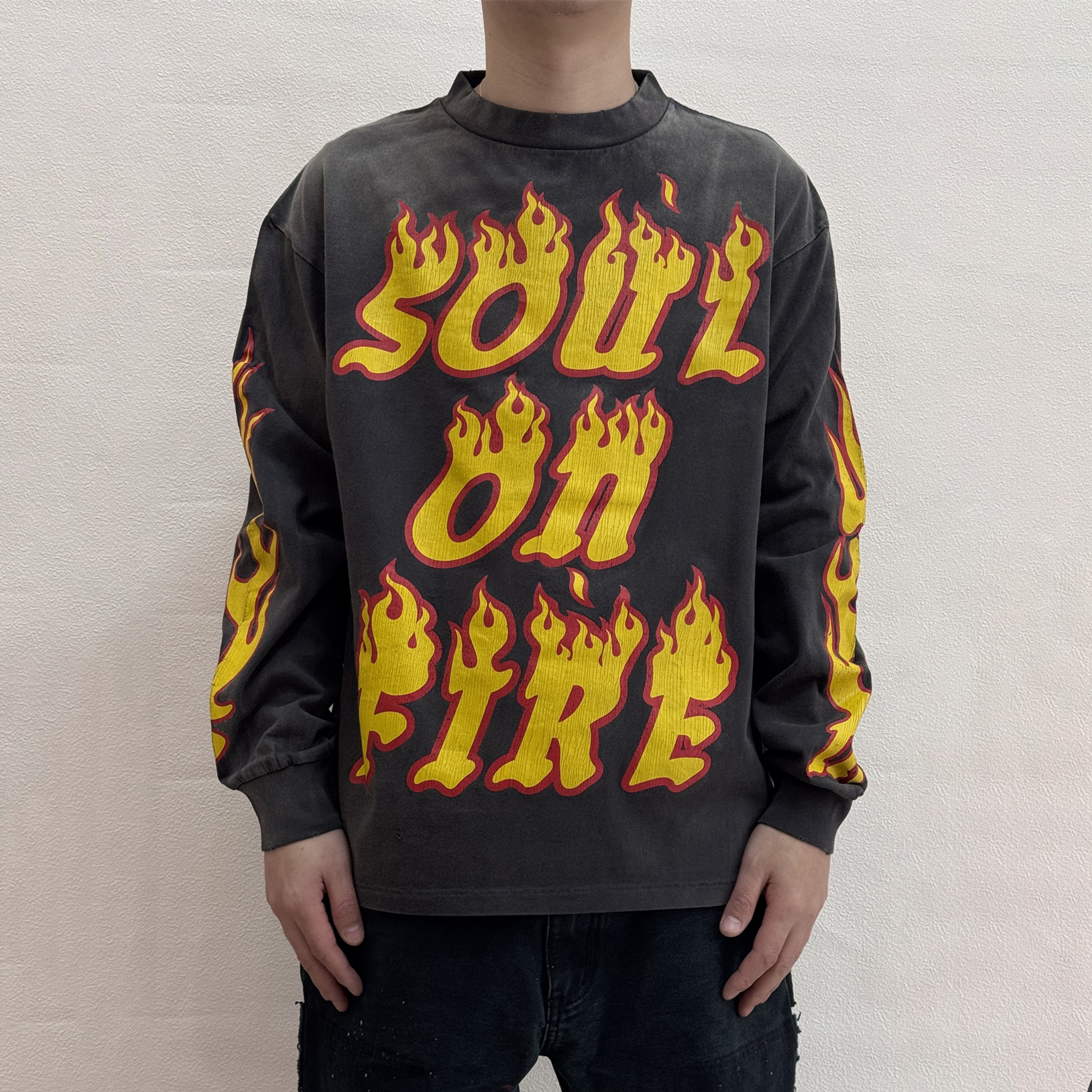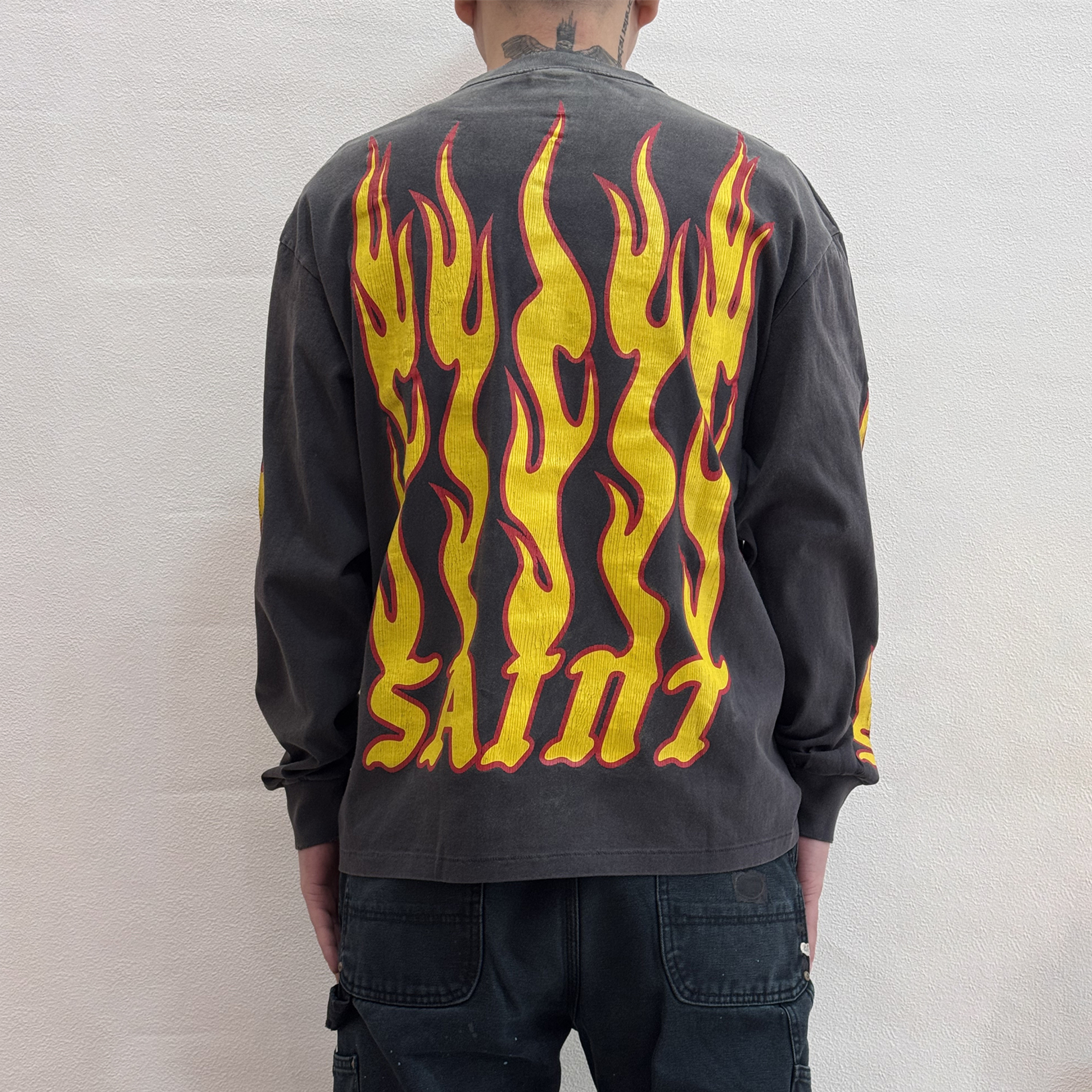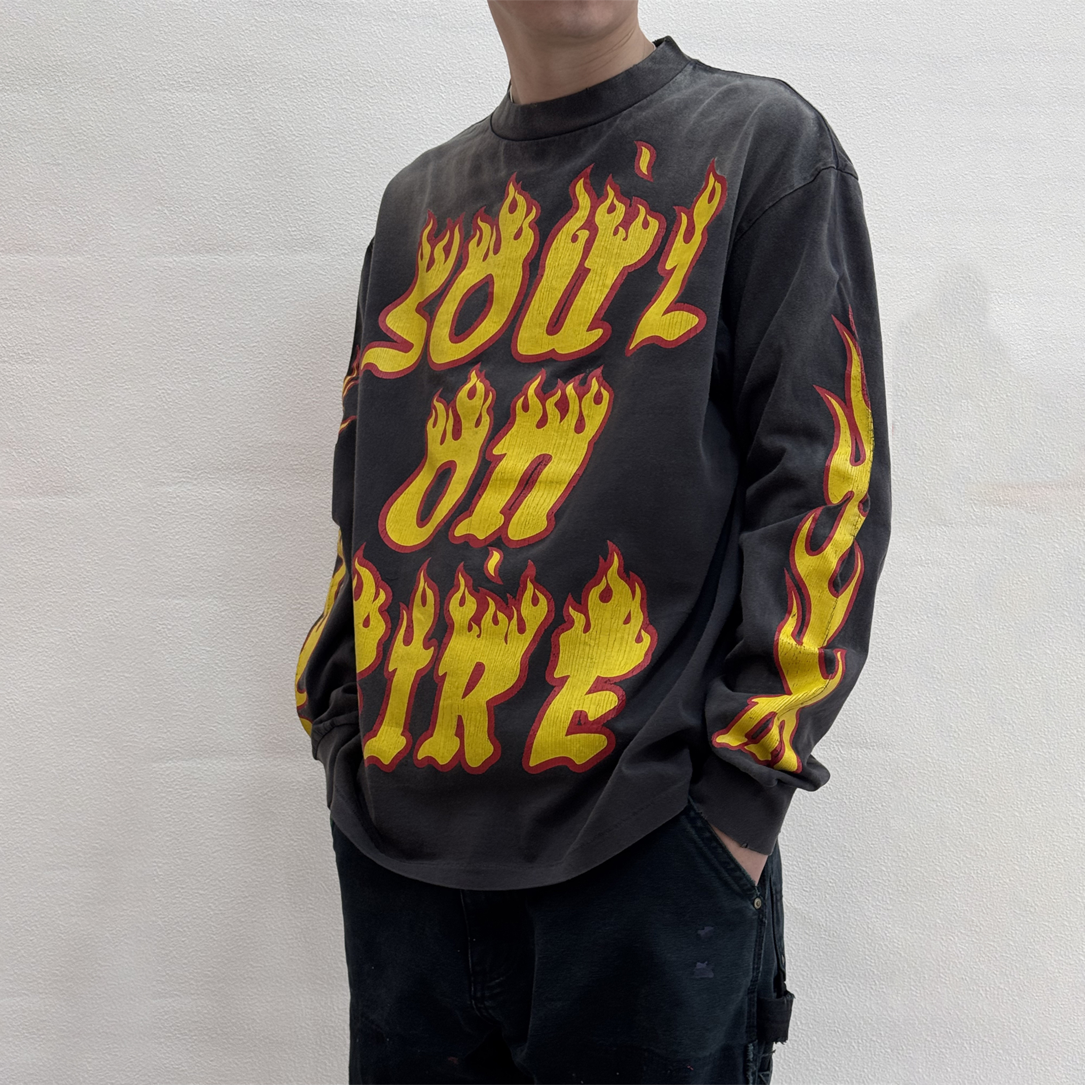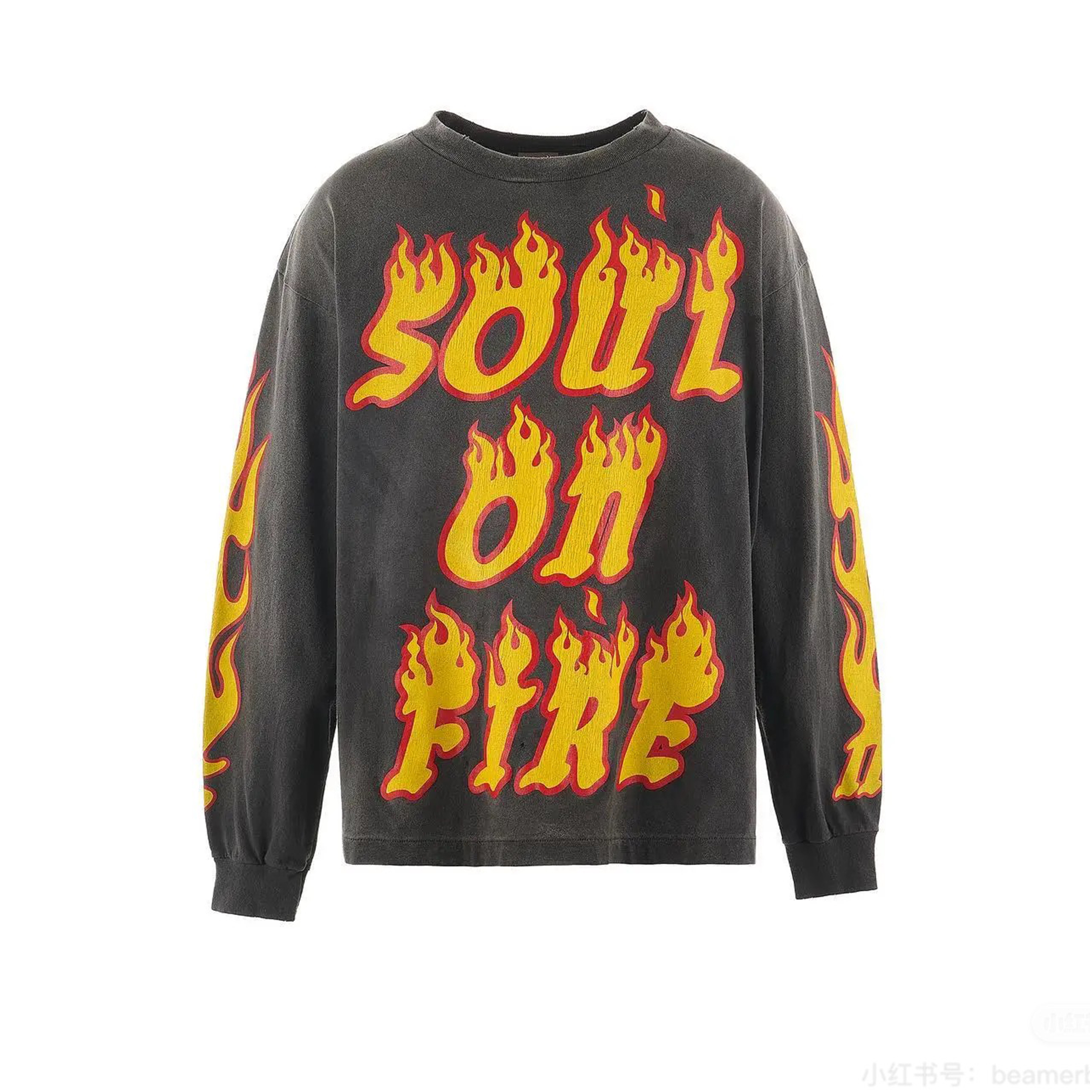 NIGO Saint Michael Men's Flame Print Retro Washed Damage Sweatshirt Spring Summer Fashion High Street Casual Trend Round Neck Long Sleeve Pullover Sweatshirt T-shirt Ngvp #nigo9795