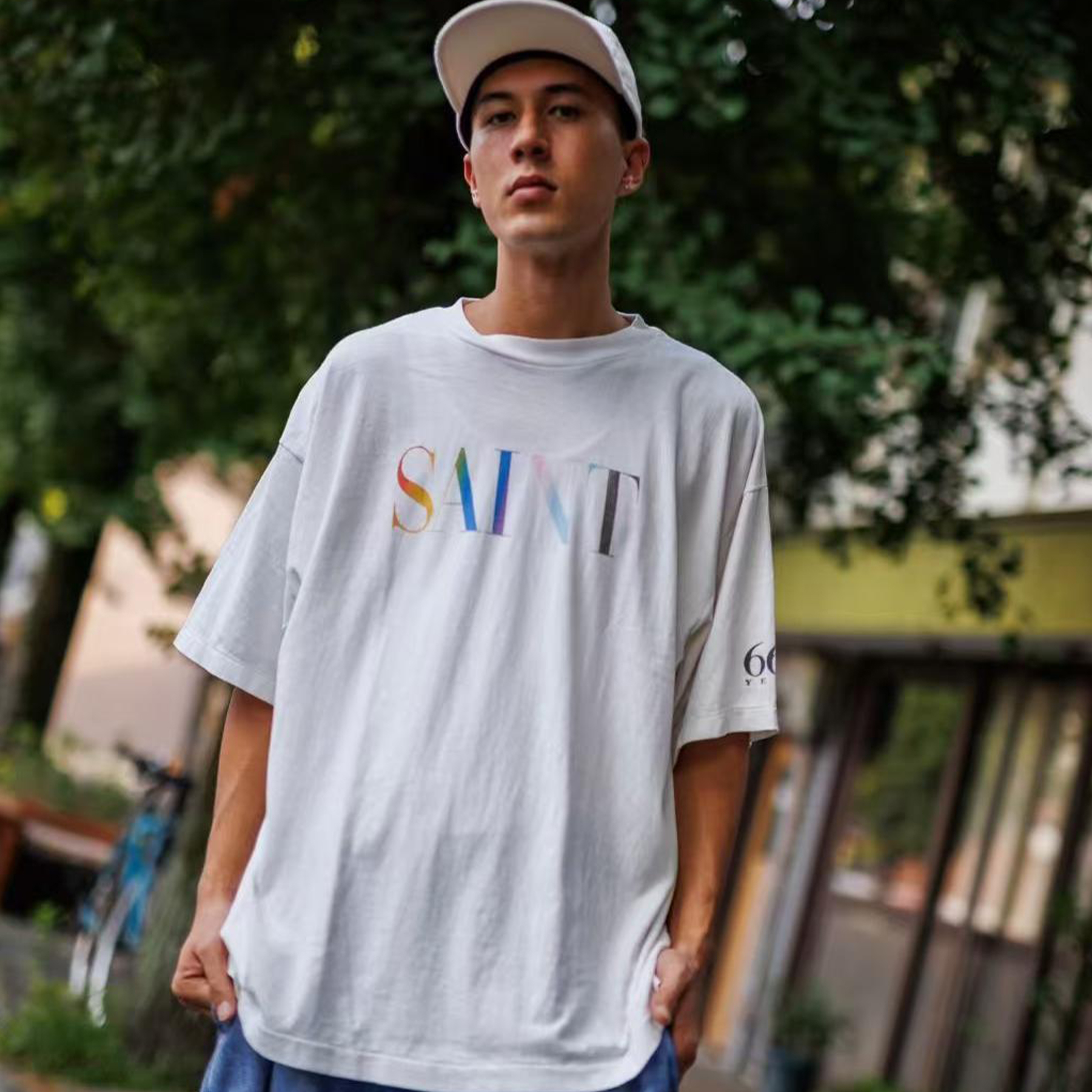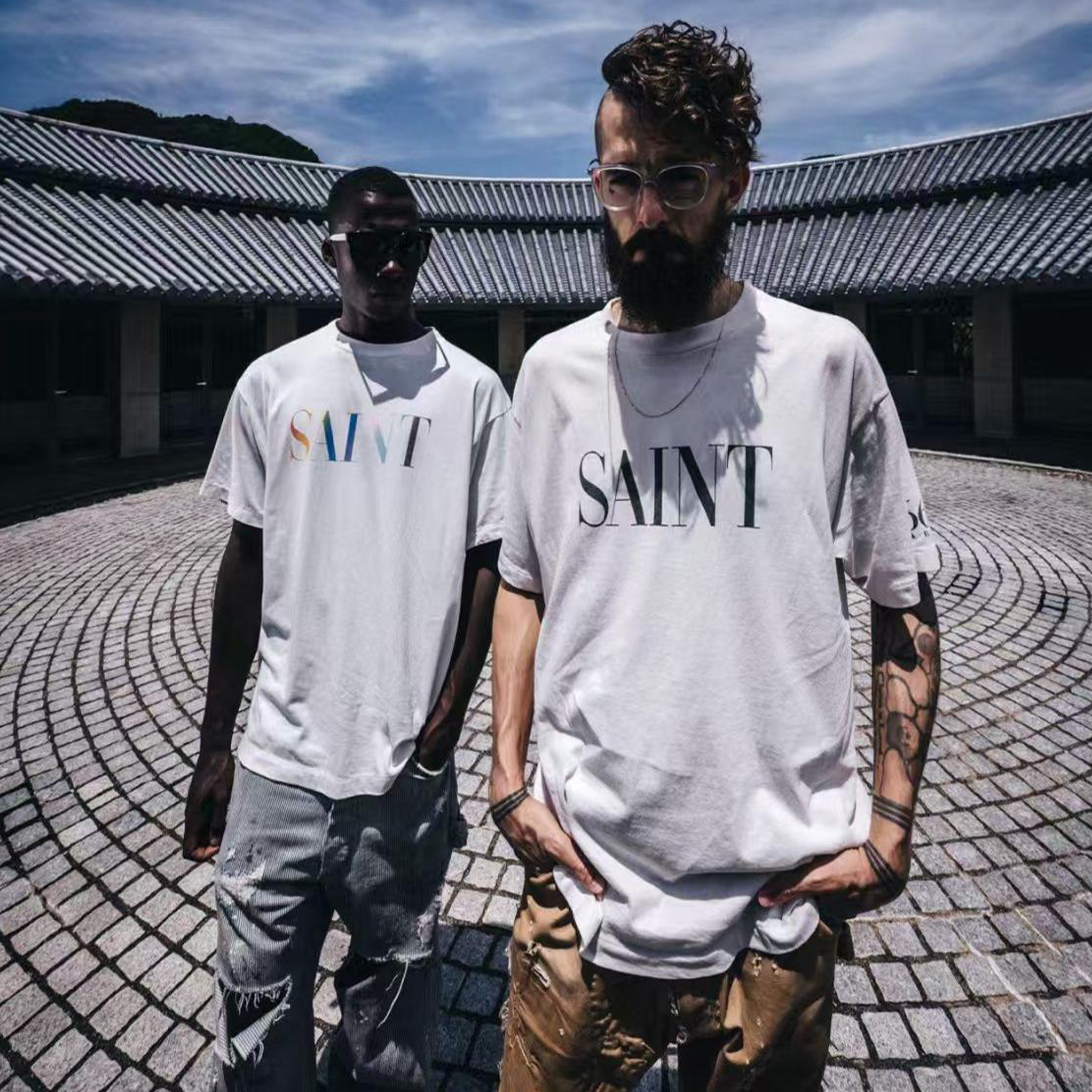 NIGO Saint Michael Men's Summer Graffiti Letter Print Casual Retro Solid Color Short Sleeve T-Shirt Ngvp #nigo1835